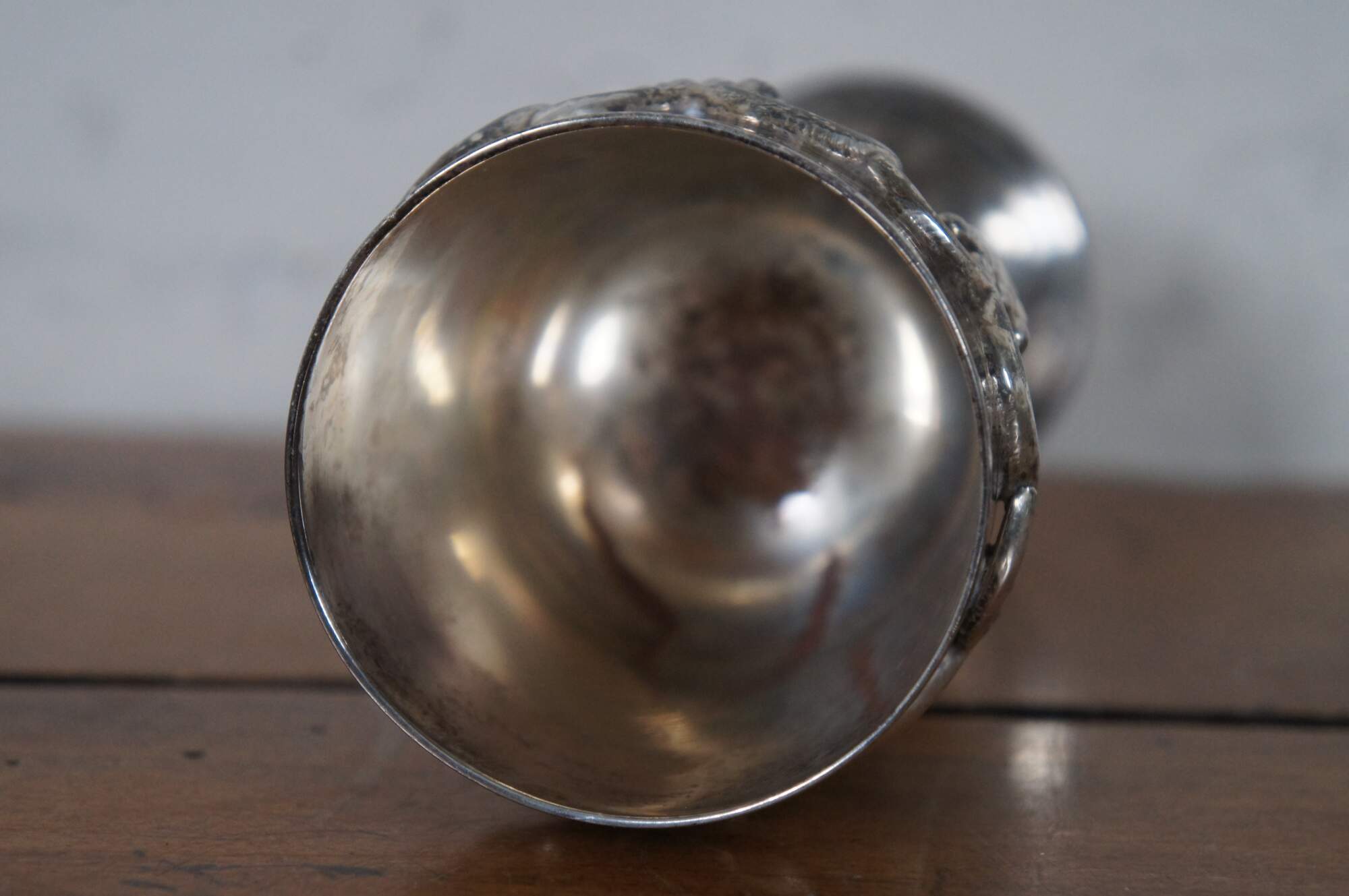 Vintage silver plated wine goblet / chalice / kiddush cup with raised relief vine and bunches of grapes, engraved at the upper edge with the Jewish year 5760. 5760 is the year circa 1999-2000.
