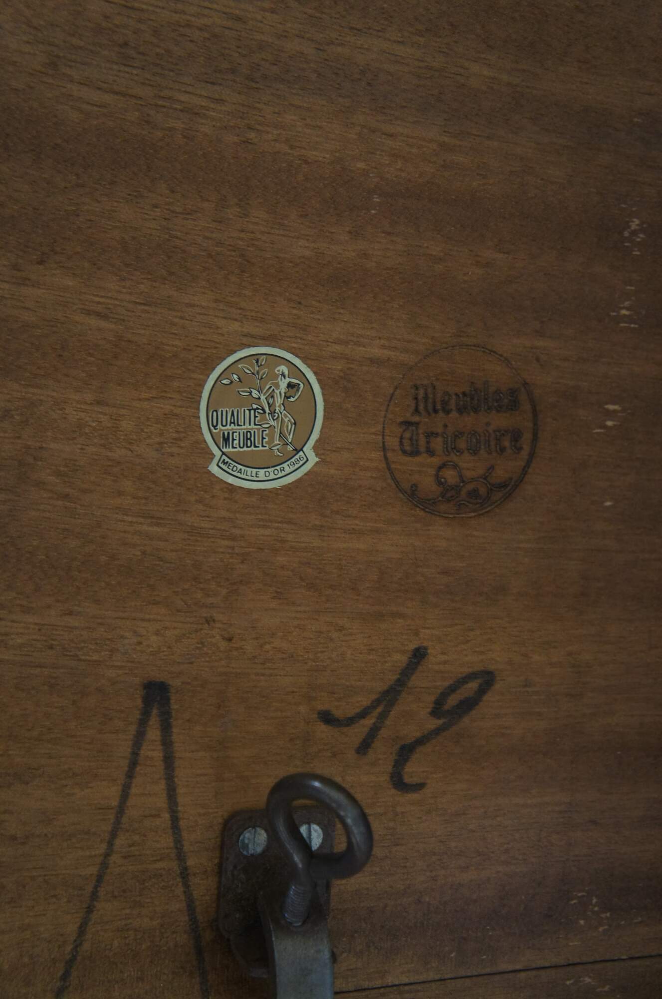 Tricoire Vintage French Country dining table, circa 1980s. Made from solid walnut with a round extendable plank top, serpentine apron and cabriole legs. Naturally distressed with two leaves for extension.