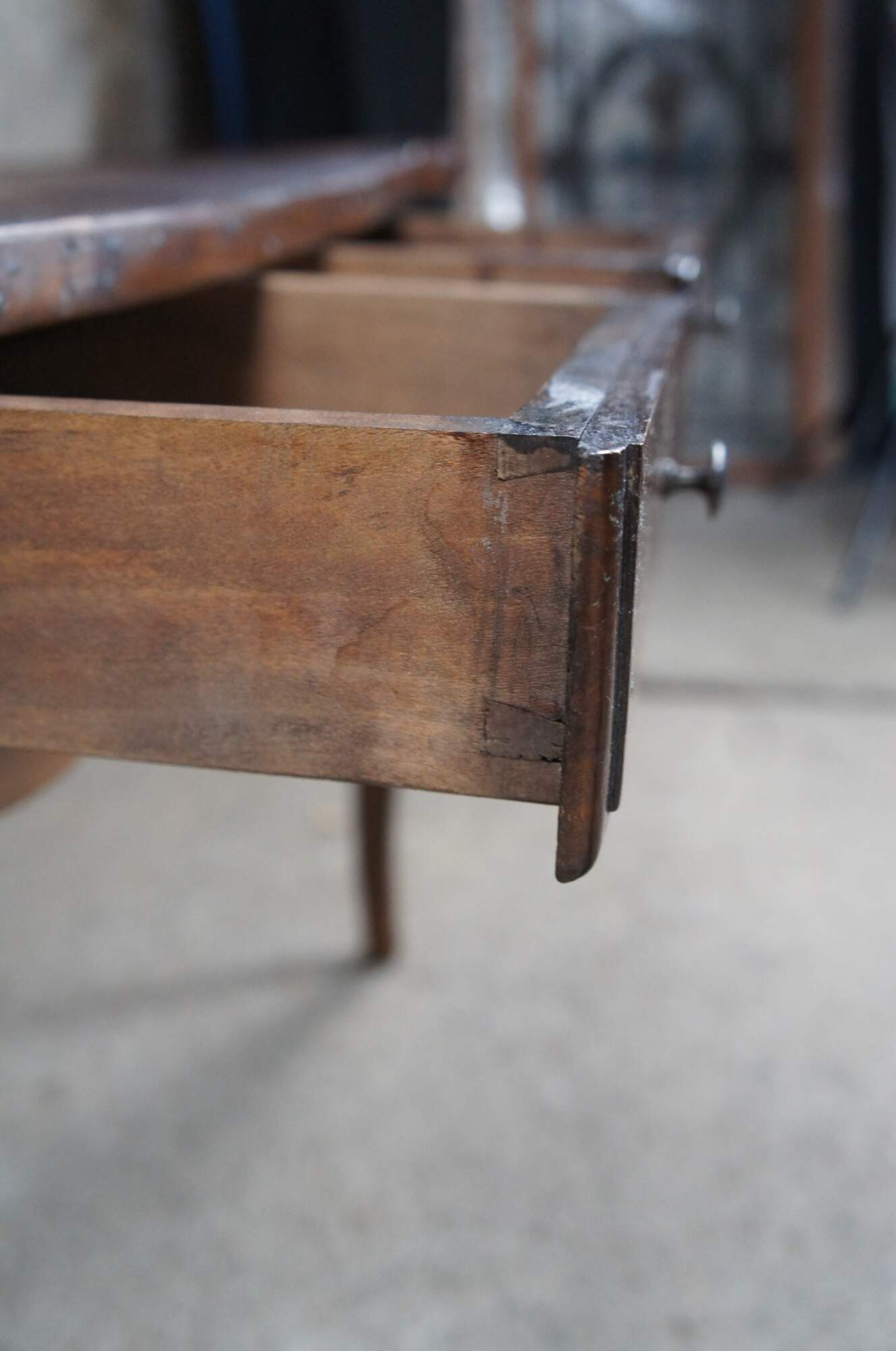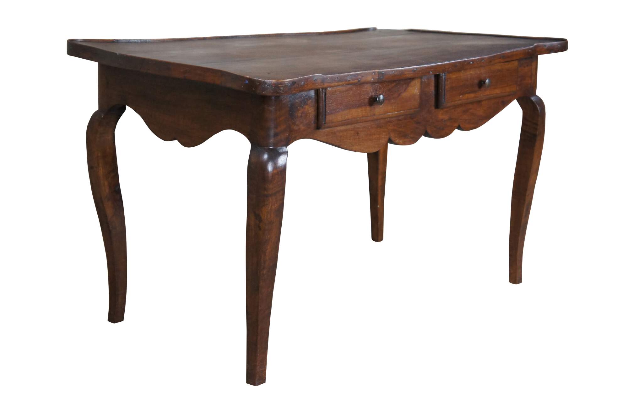 An attractive French Provincial coffee or cocktail table, circa 1870s. Three richly colored walnut boards comprise the curved top and sport a marvelous patina with a trimmed apron. There are two hand dovetailed drawers within the frieze resting over a serpentine apron. The table is supported by long cabriole legs leading to a straight foot. Marked along the underside ""Made in France.""
