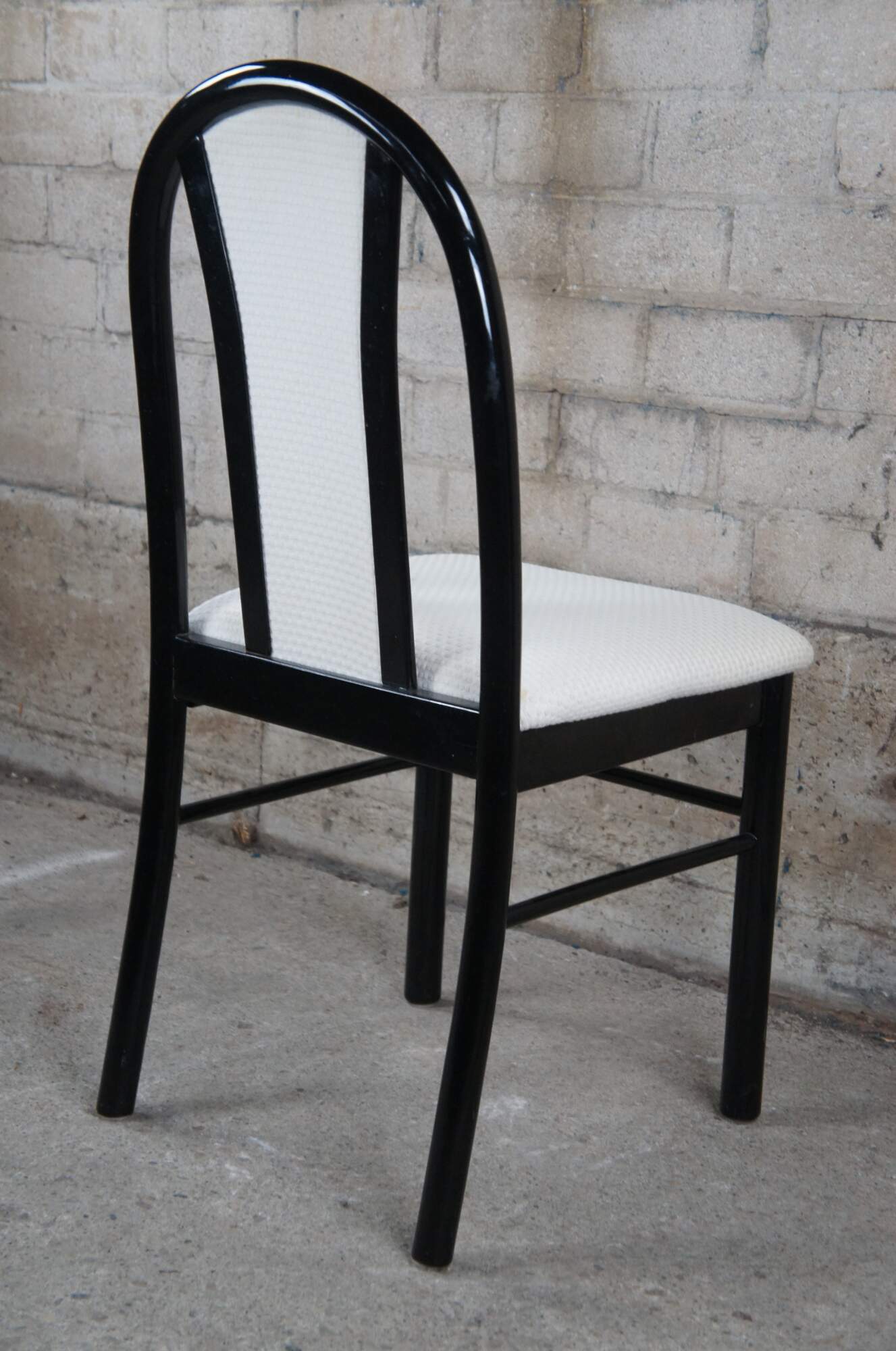 Circa 1970s black lacquer bentwood side chair. Features a split back with upholstered continuing to the seat.