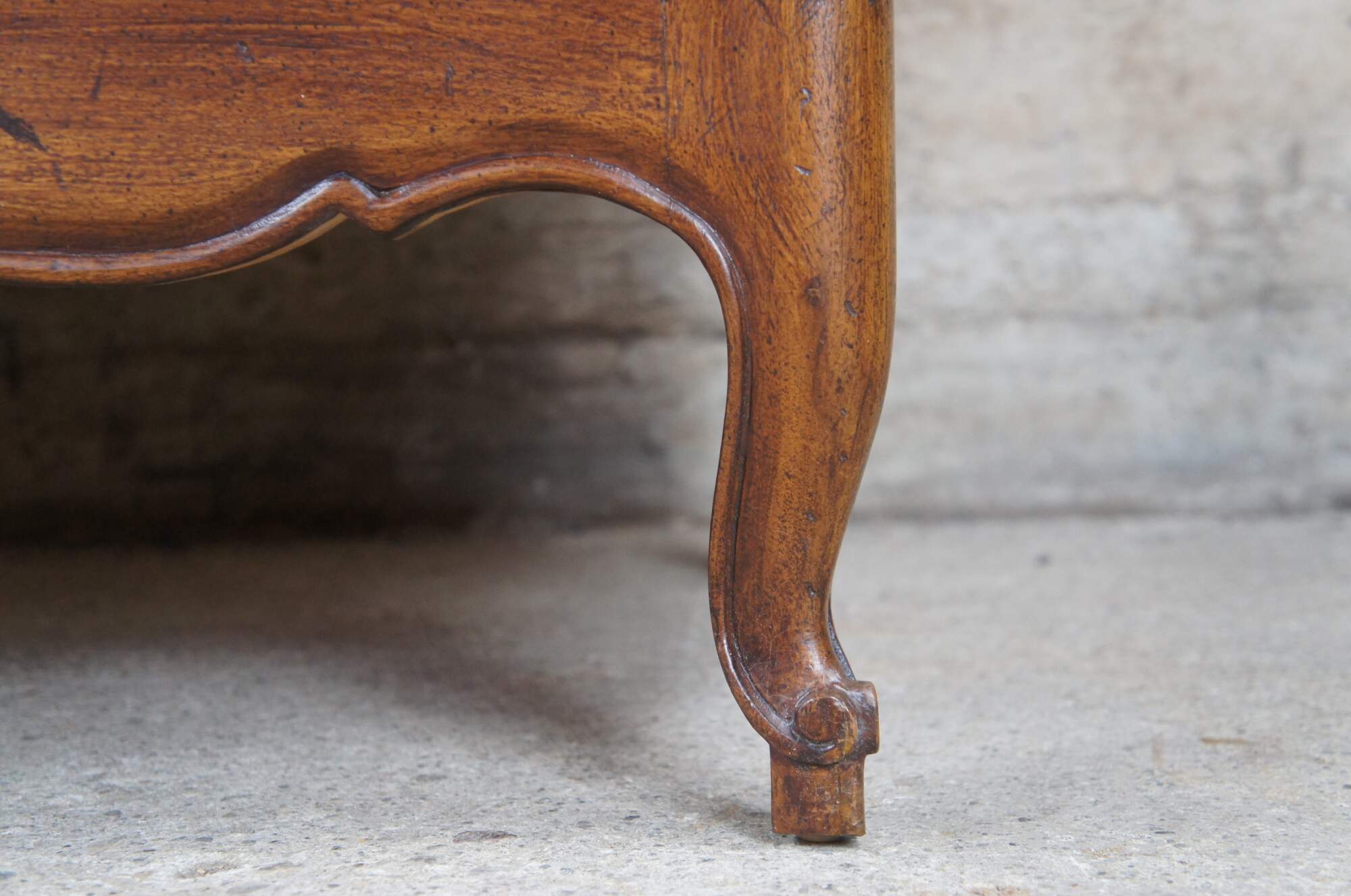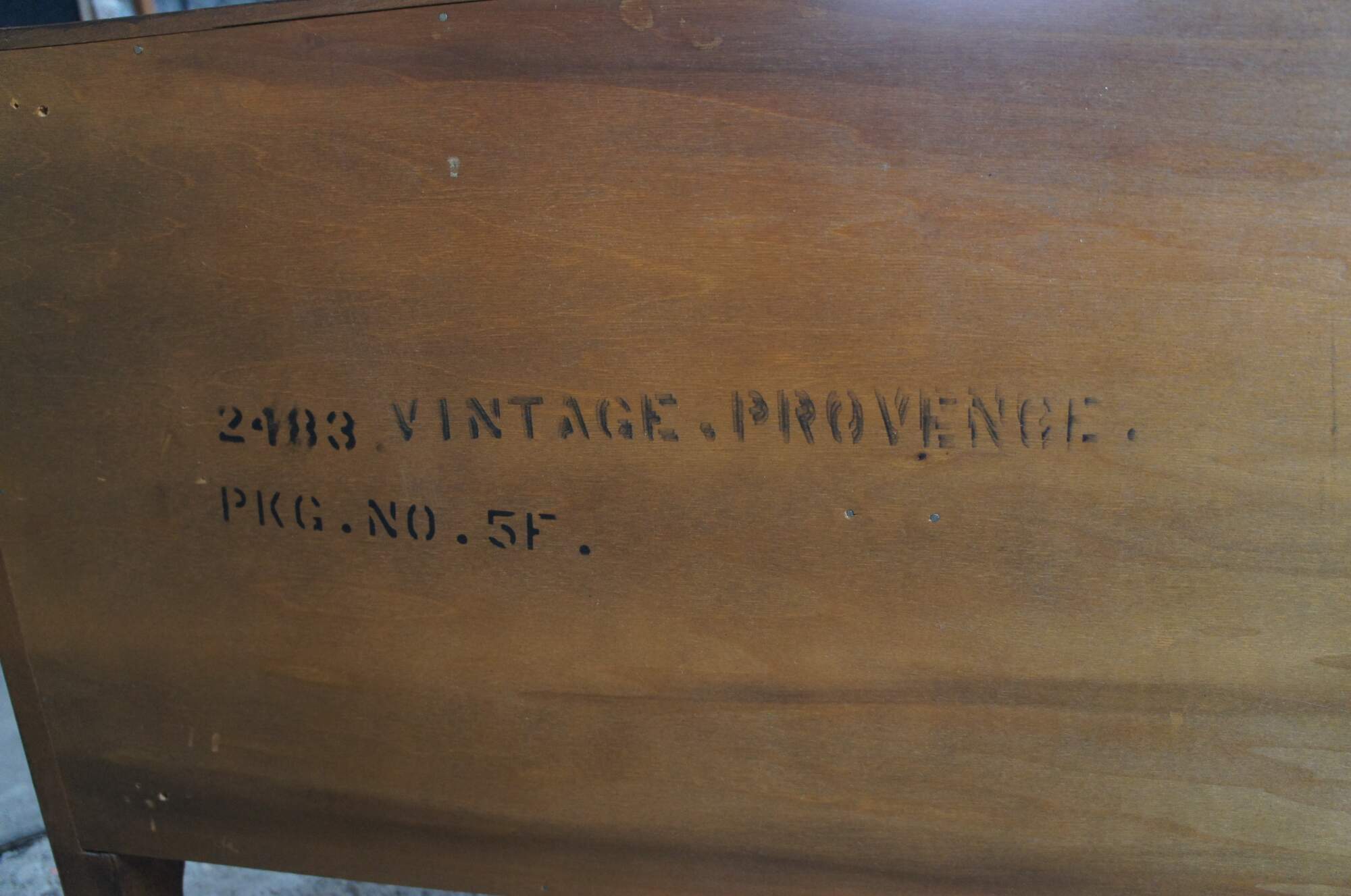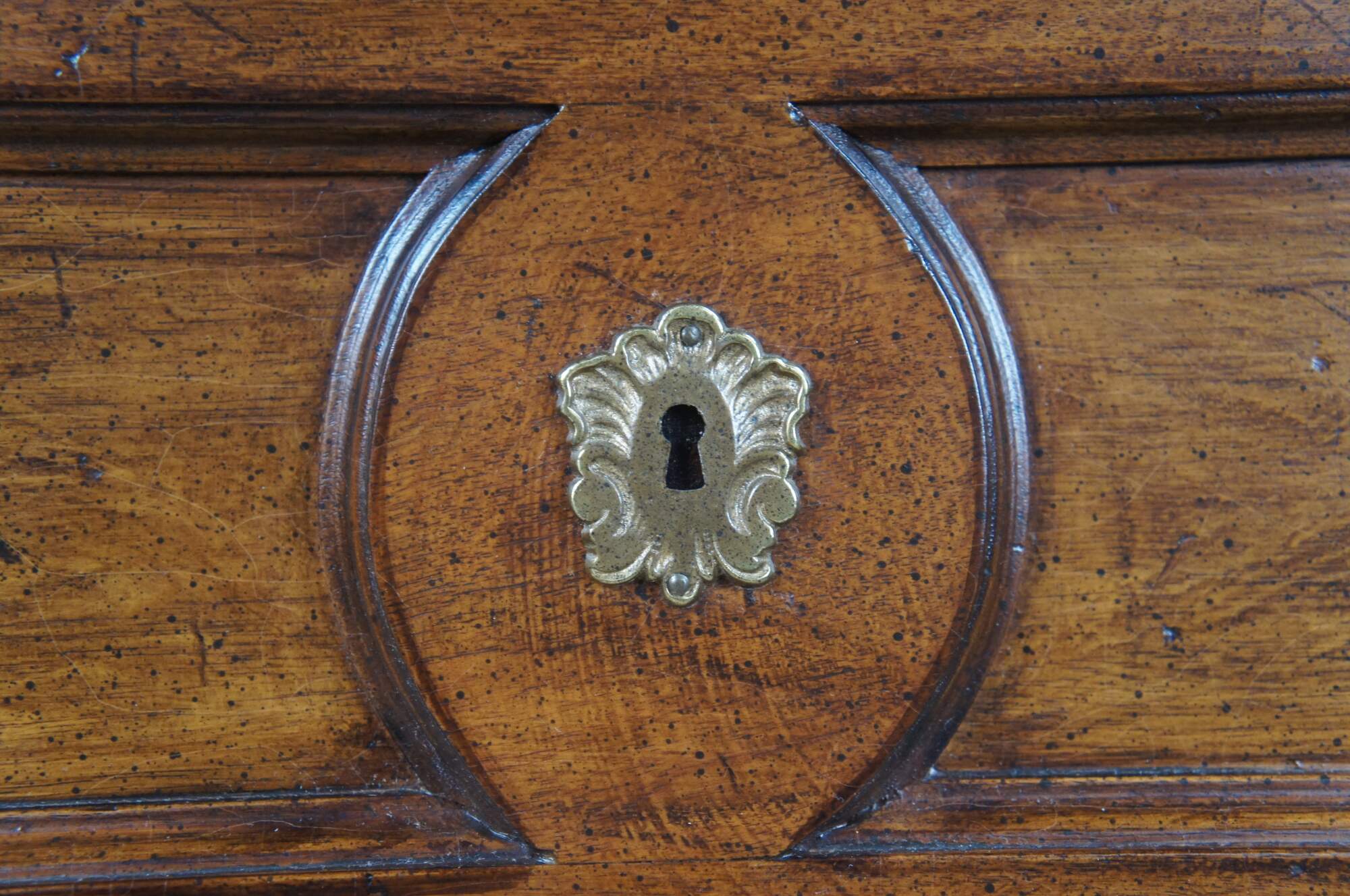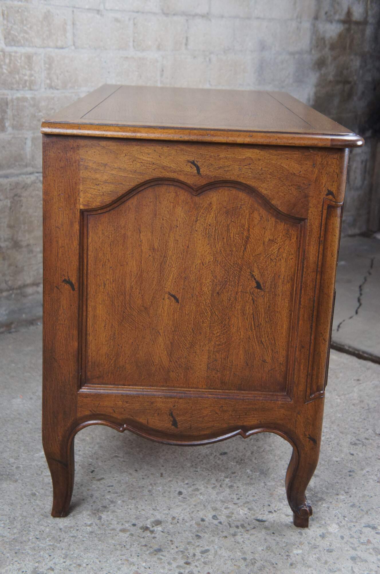 Vintage Mt. Airy walnut French Provincial / Country lowboy chest, dresser or stand featuring rectangular serpentine form with two drawers, brass hardware and cabriole legs. 2483.