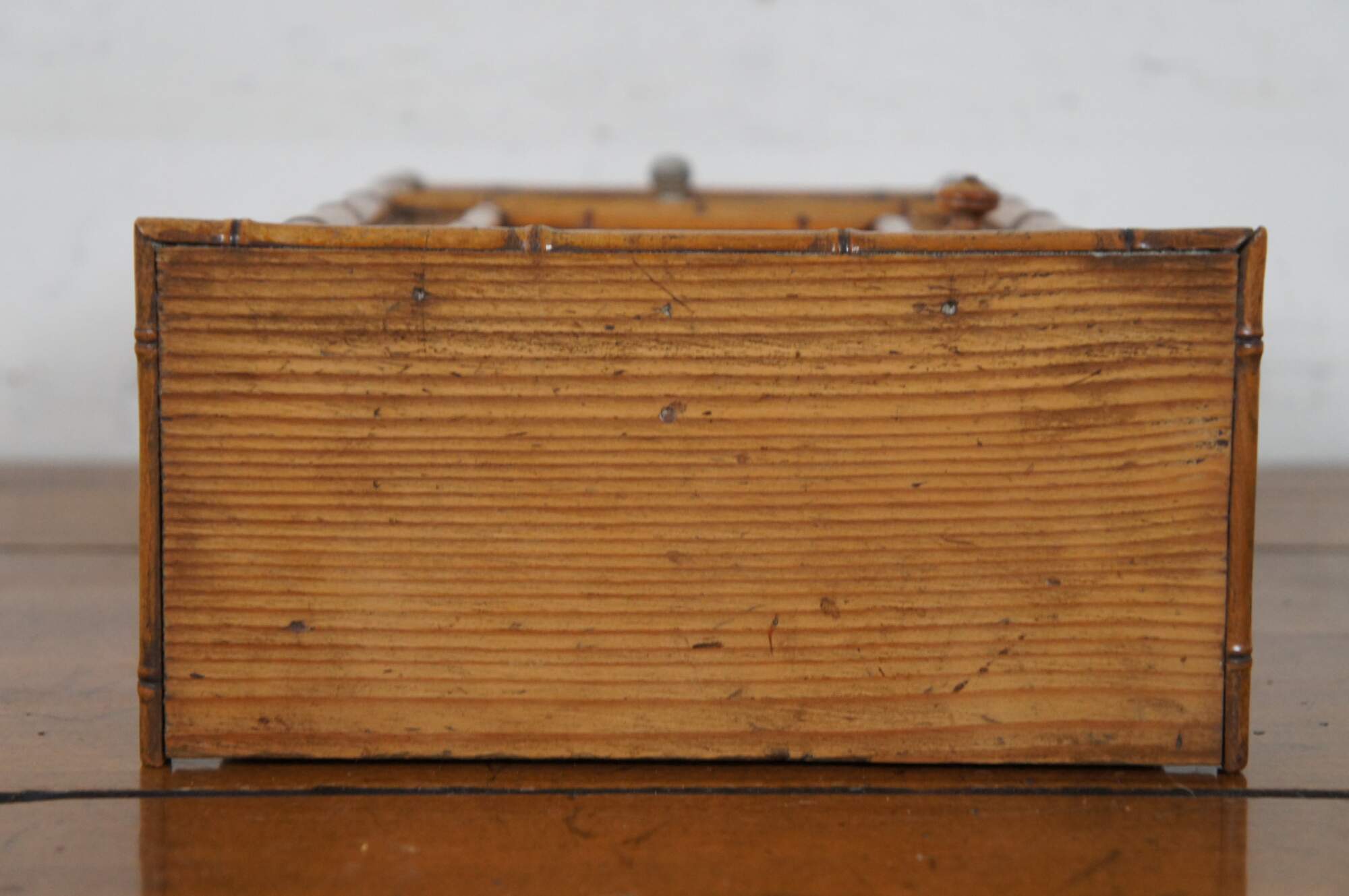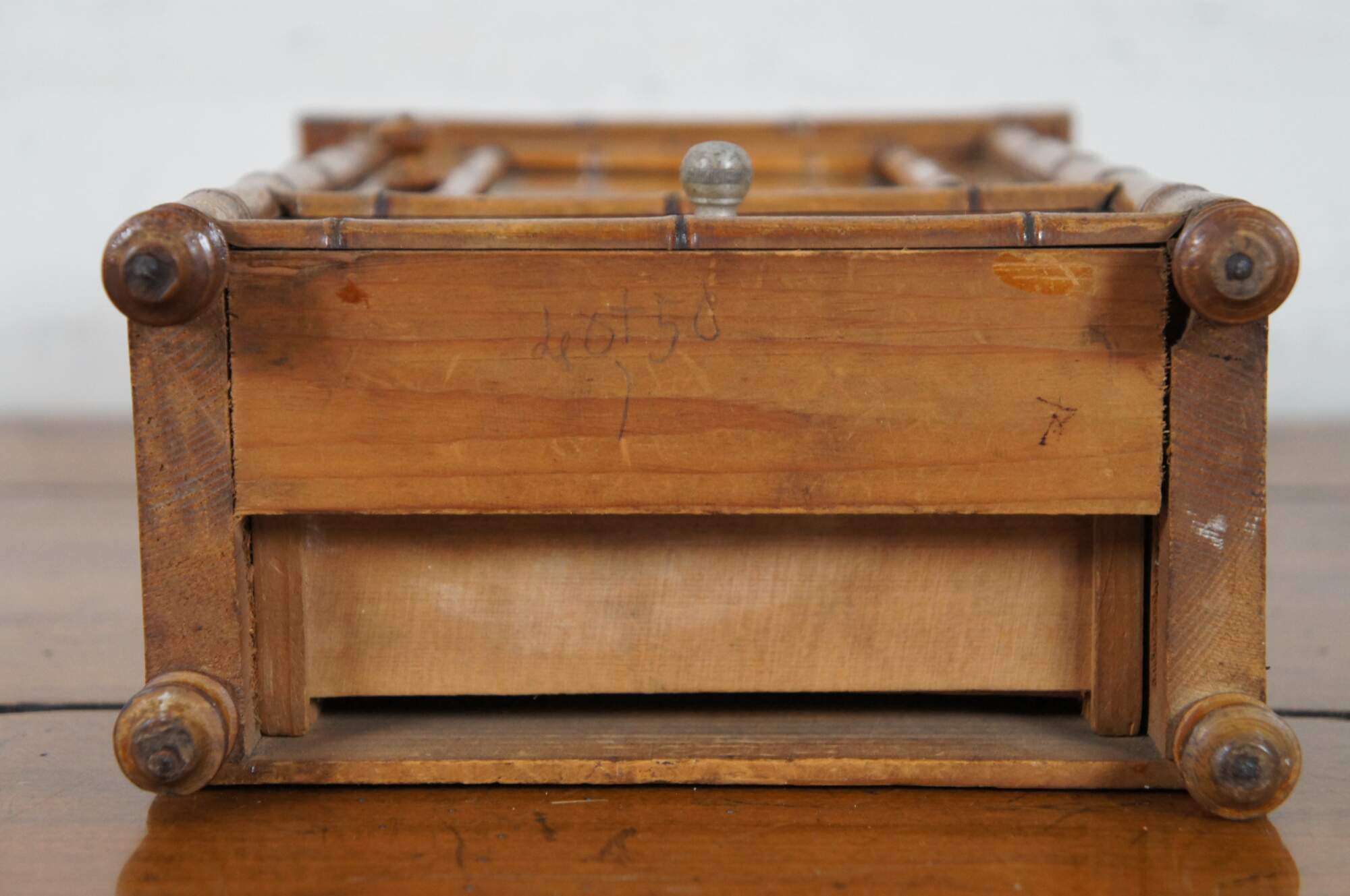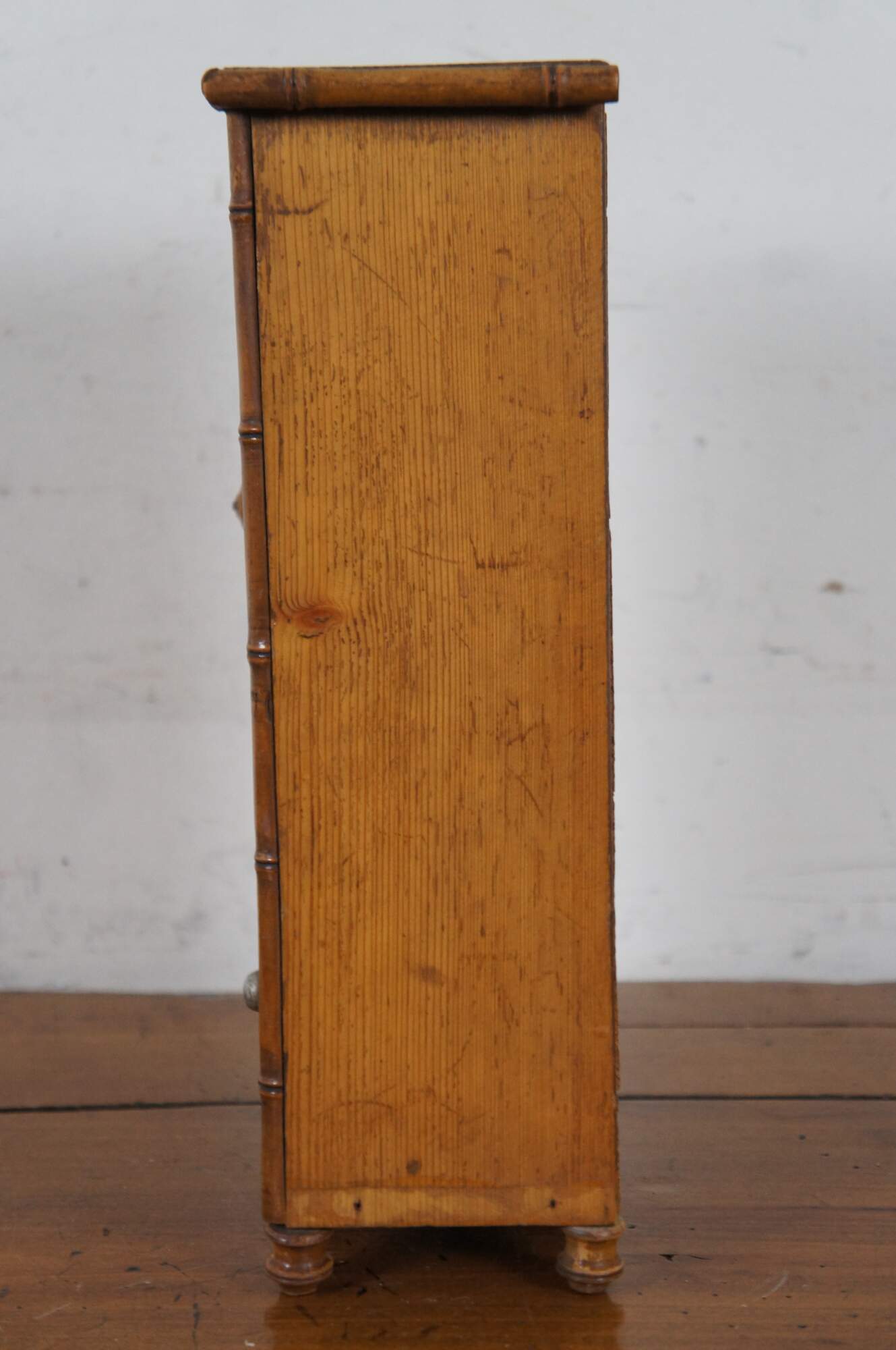 Early 20th century doll furniture miniature wardrobe featuring a bamboo frame, mirrored door and lower drawer for accessories.