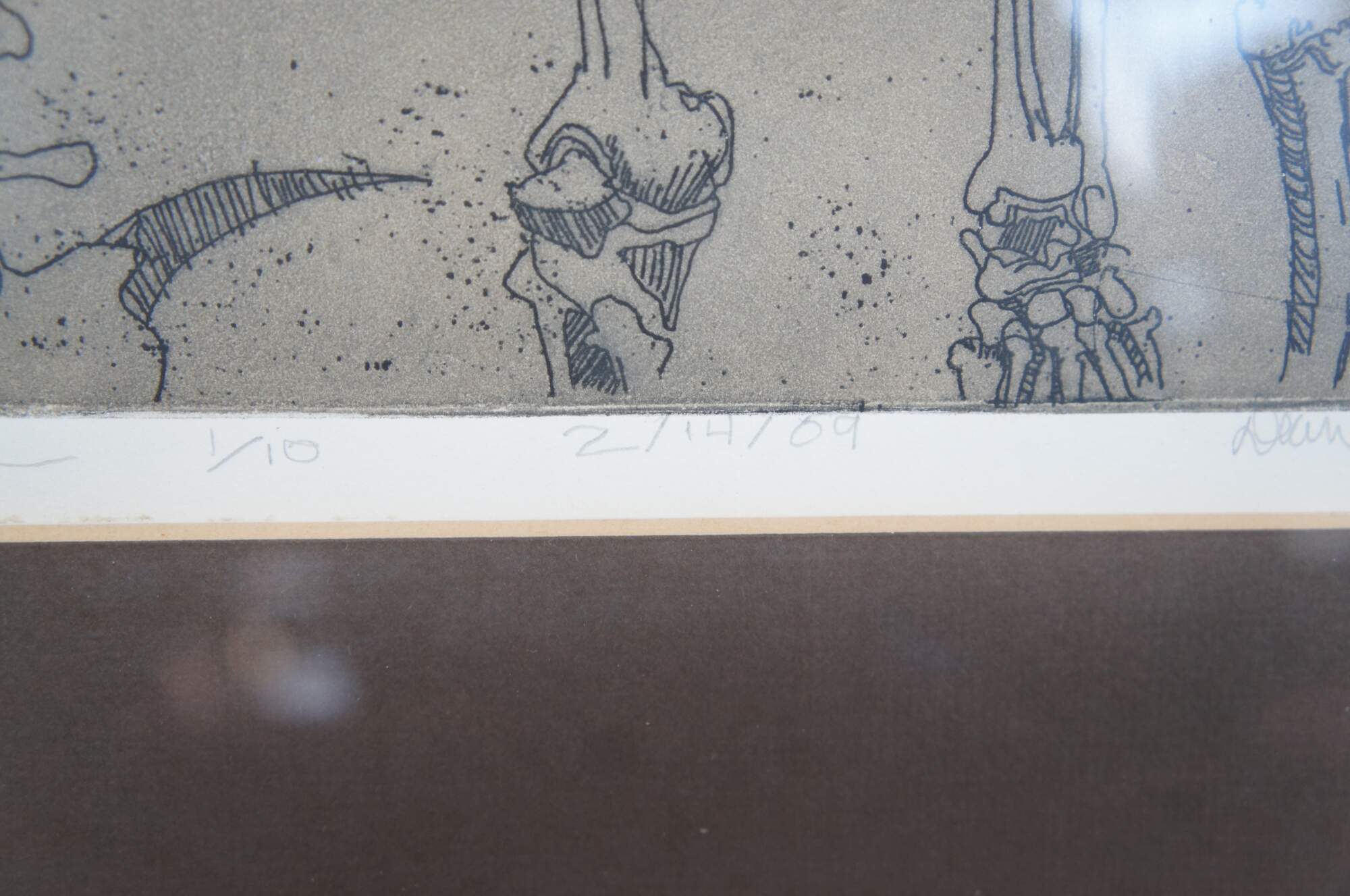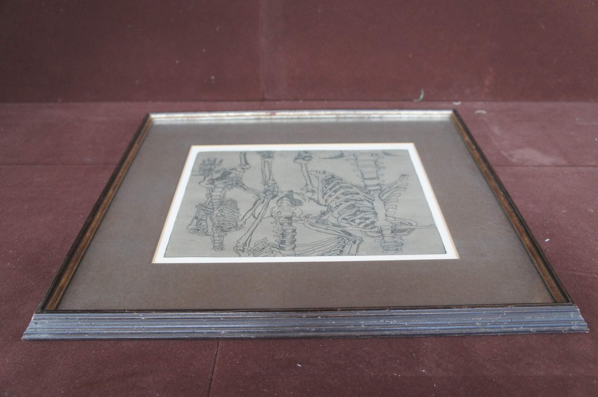 Vintage Dean Pingray Brown Bones skeleton etching. This piece was made on valentines day in 2009, Edition 1 of 10.