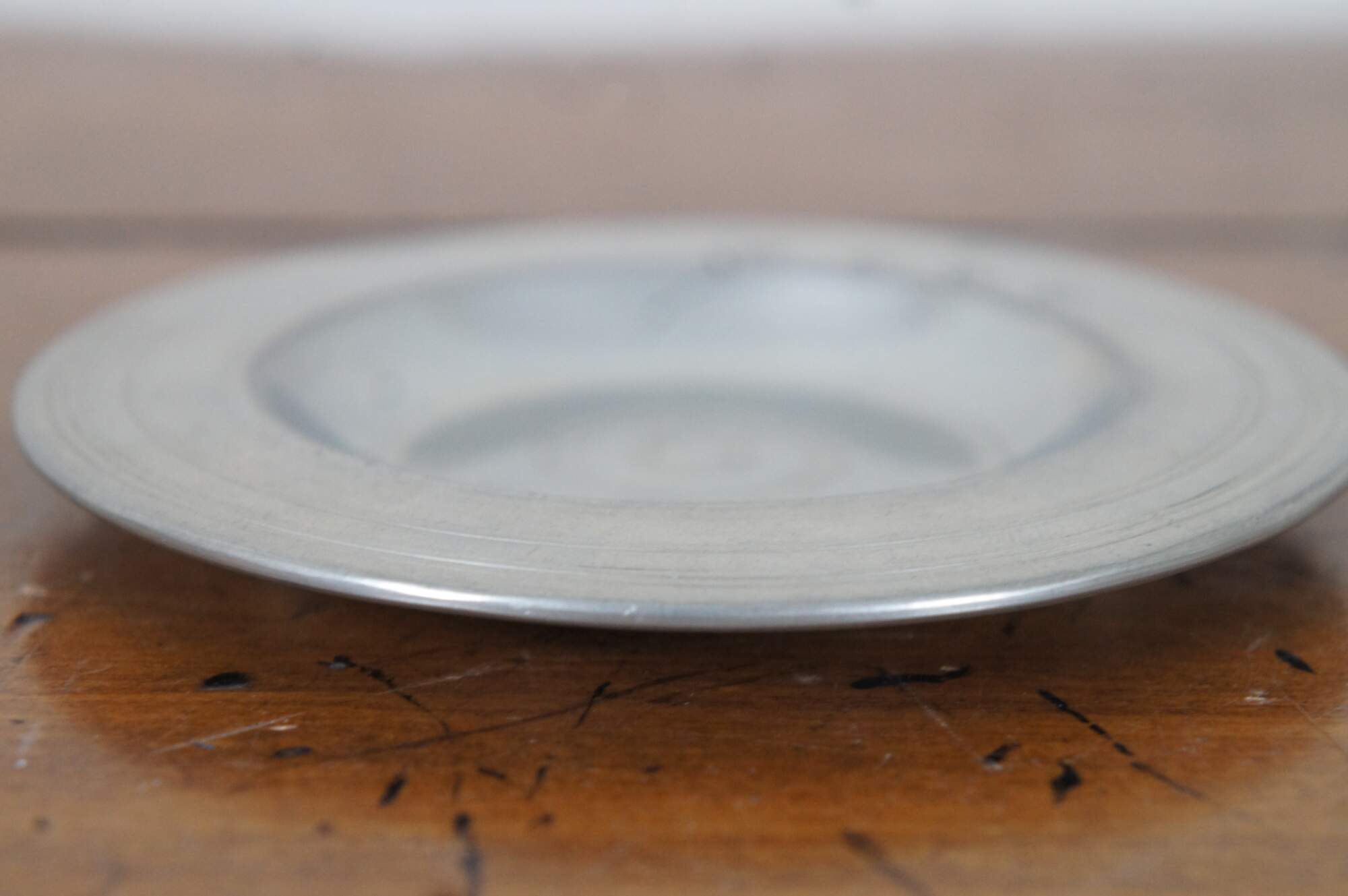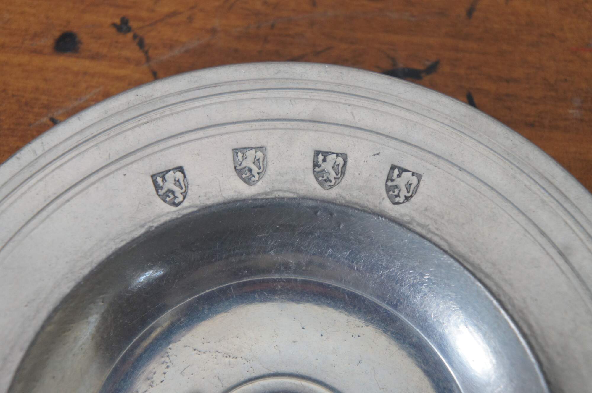 Round pewter nut or bon bon dish, marked on the front edge with four heraldic lion Passants in shields and on the reverse with the name of the George Inn and London flanked by a pair of crowned X pewter quality marks.