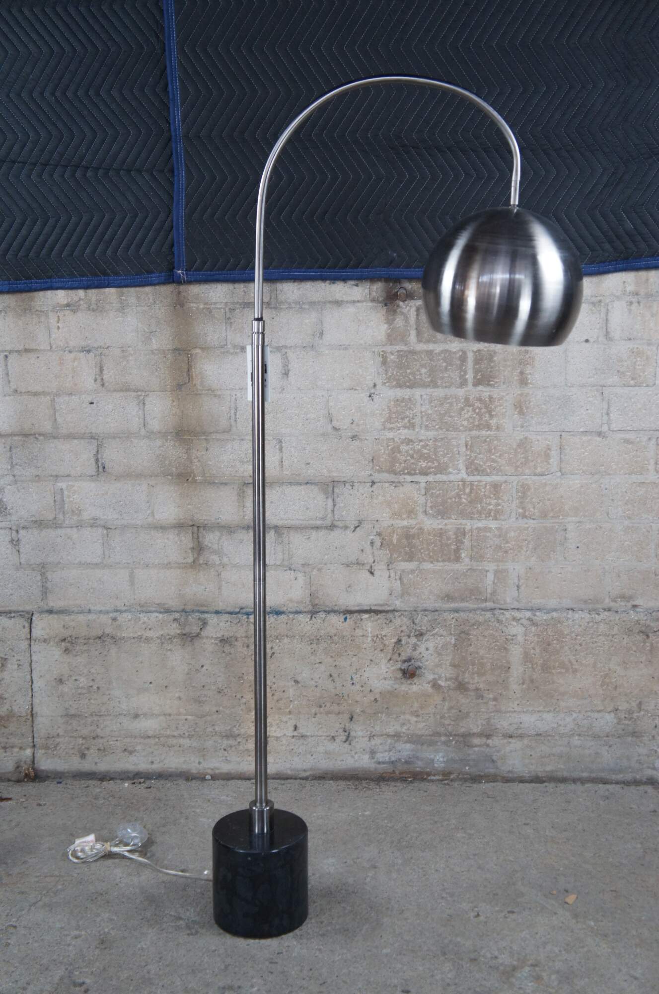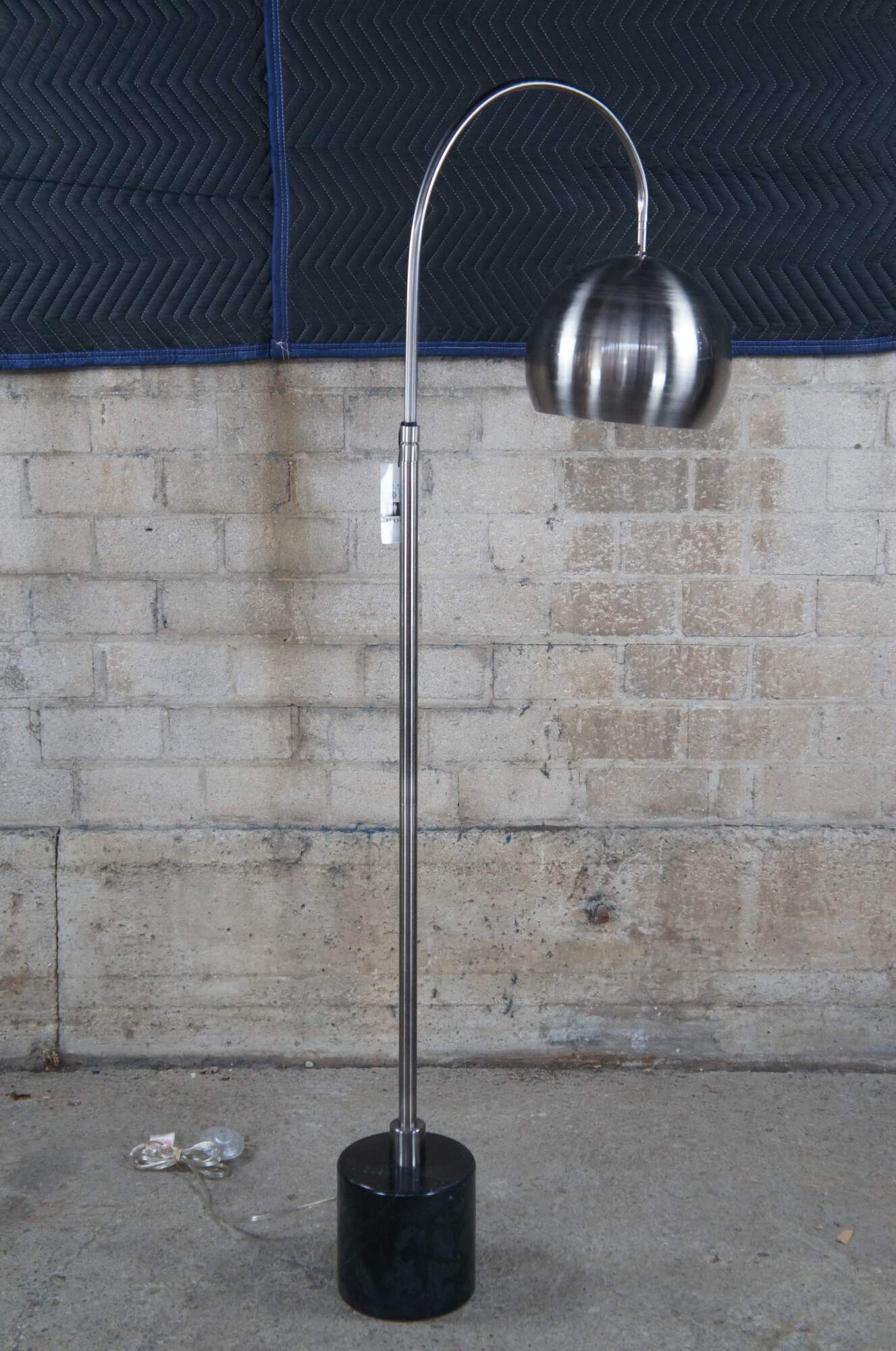Vintage Max Studio Home modern arched floor lamp. Made of steel featuring the symbolic mid century / retro arc with heavy cylindrical marble base.
