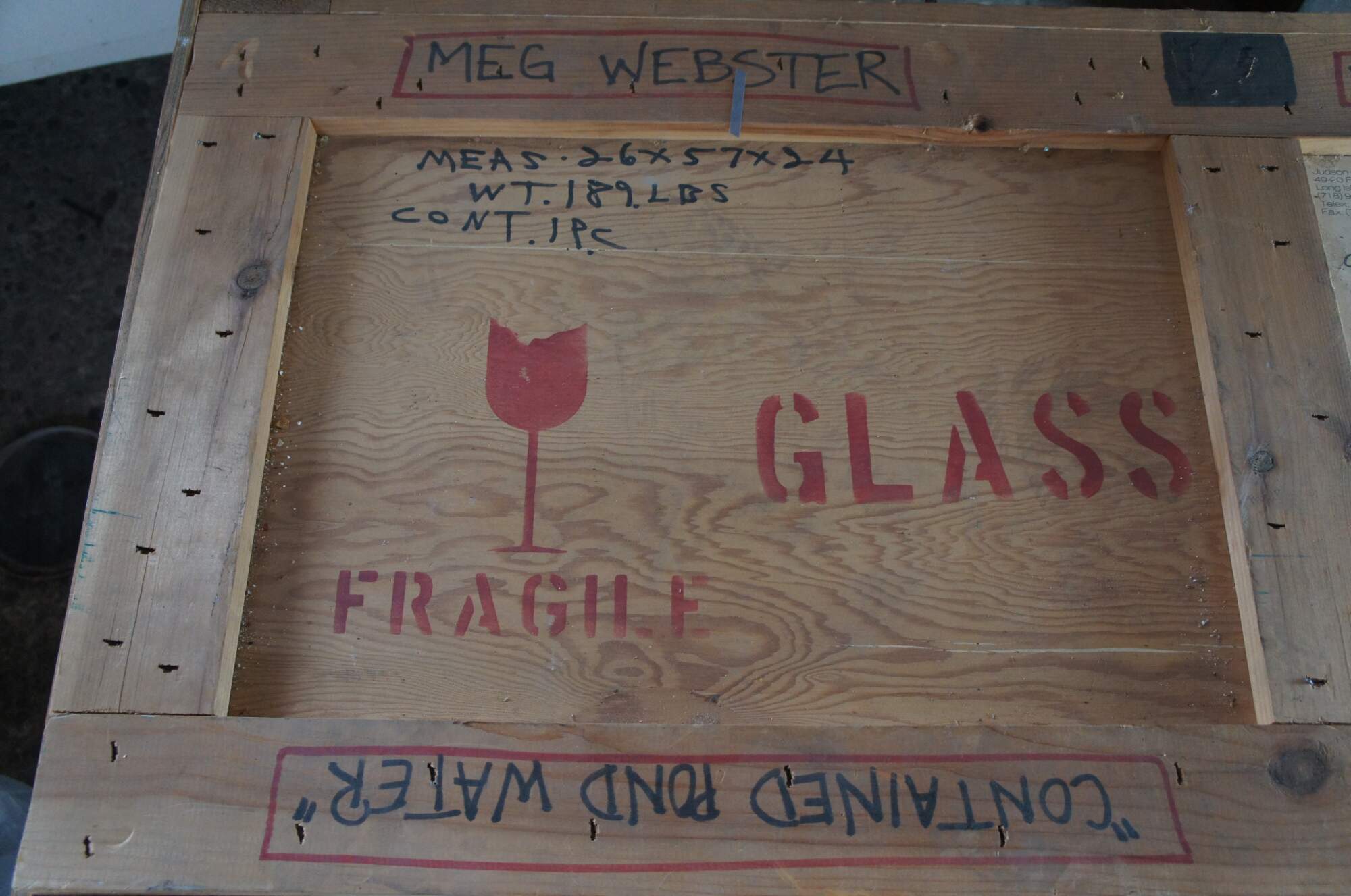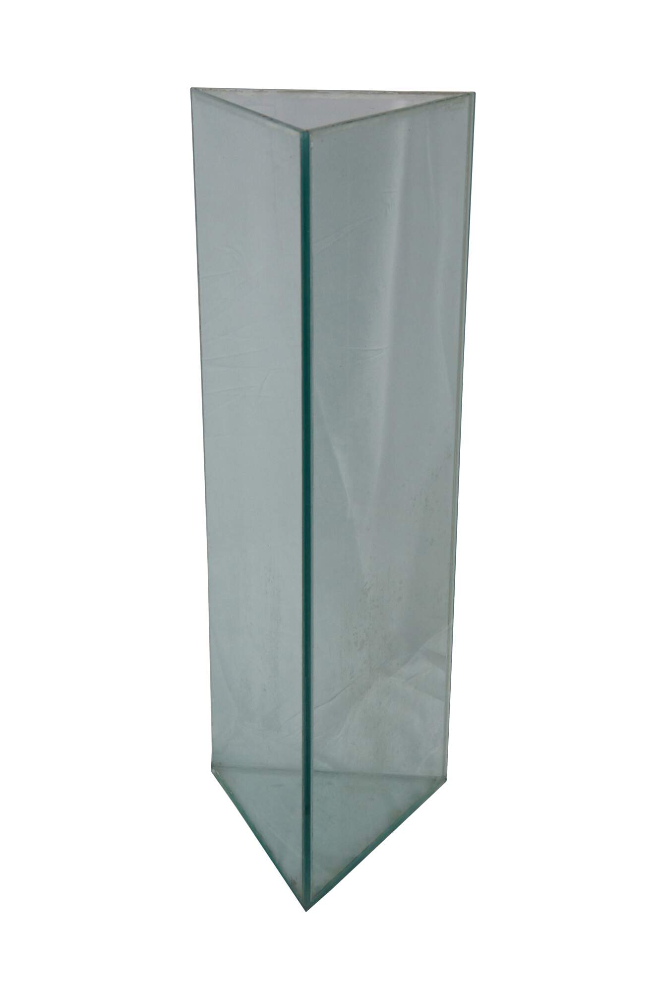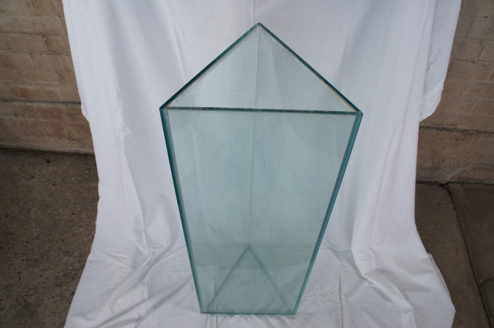 Vintage 1987 Meg Webster Contained Pond Water art pedestal sculpture. Made of thick glass in the form of a triangle or prism, intended to contain pond water. Crate included. Water and algae not. This work is from an edition of three.