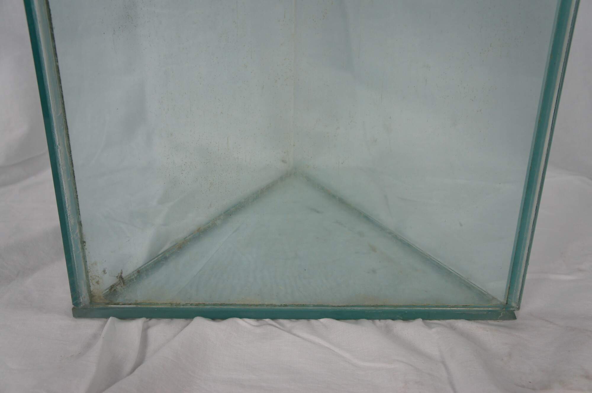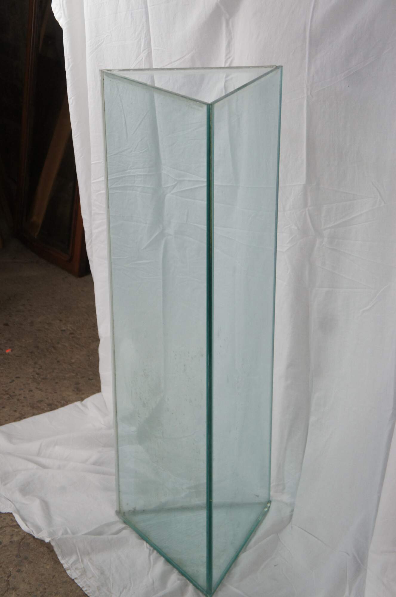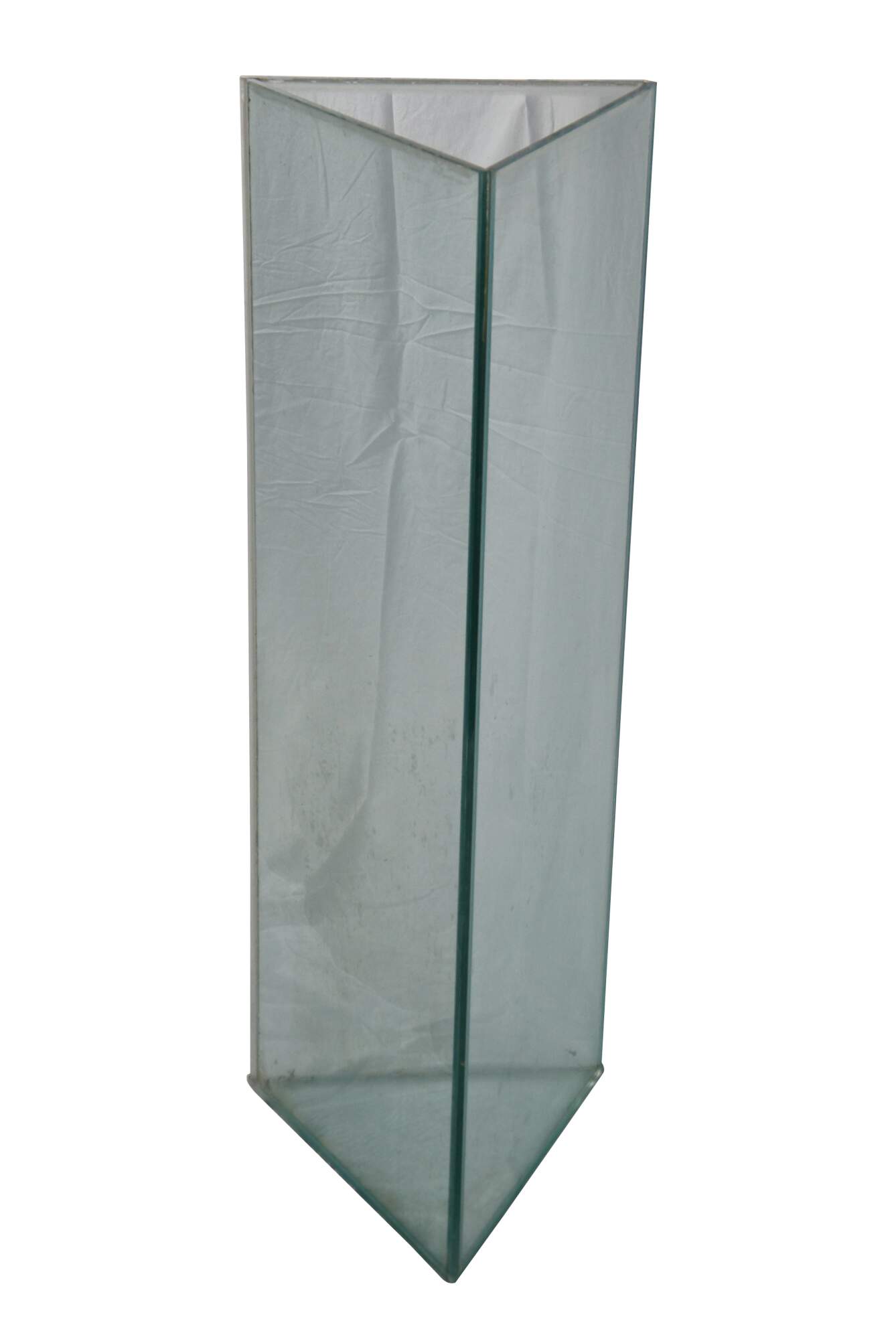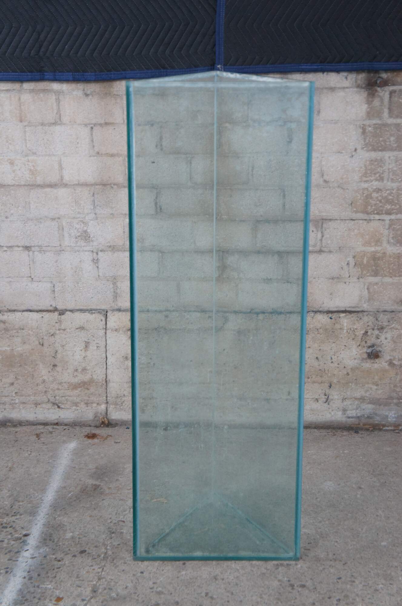 Vintage 1987 Meg Webster Contained Pond Water art pedestal sculpture. Made of thick glass in the form of a triangle or prism, intended to contain pond water. Crate included. Water and algae not. This work is from an edition of three.