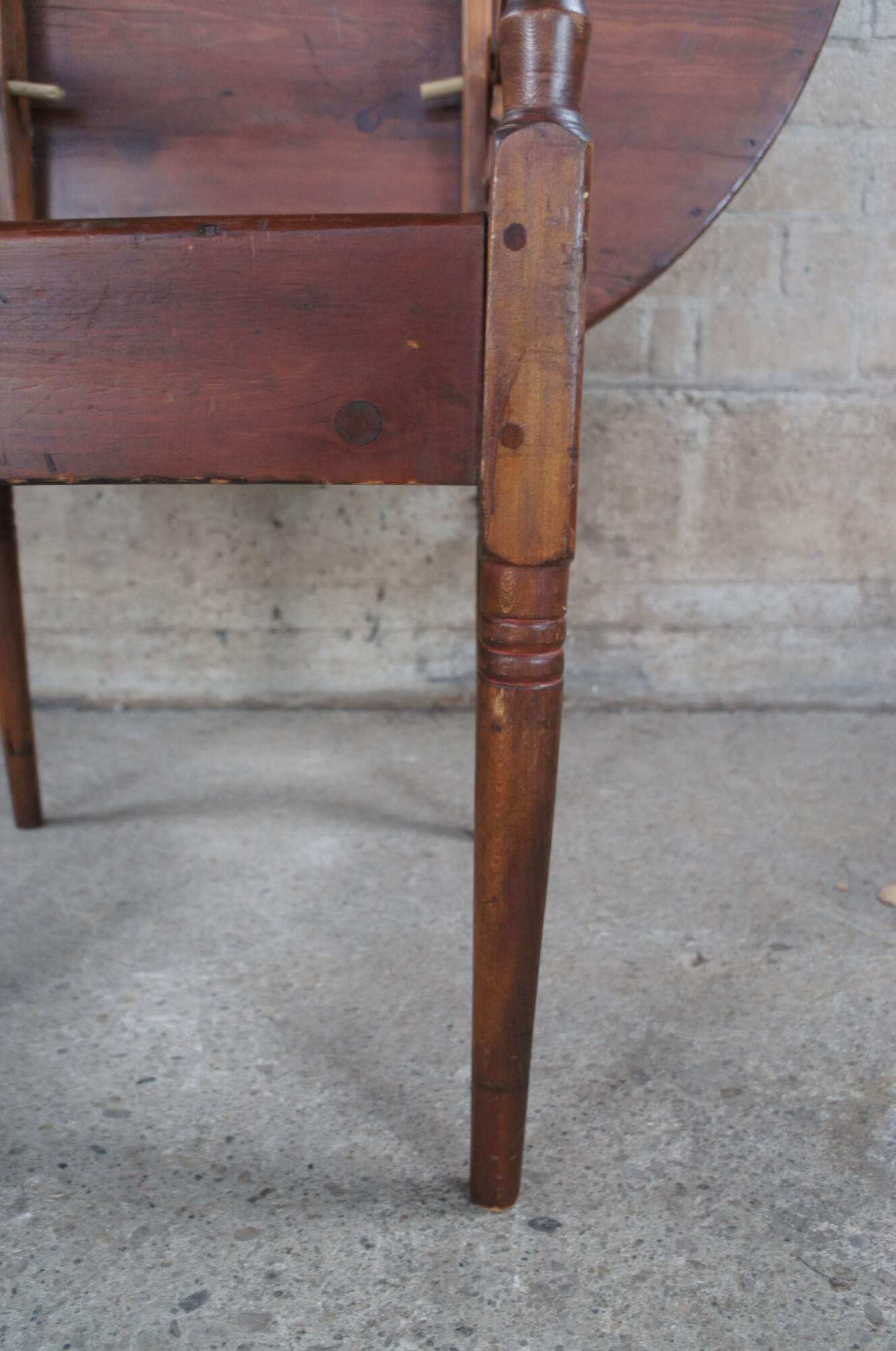 Antique Early American Colonial Pine Round Tilt Top Tavern Table Chair Bench 57"