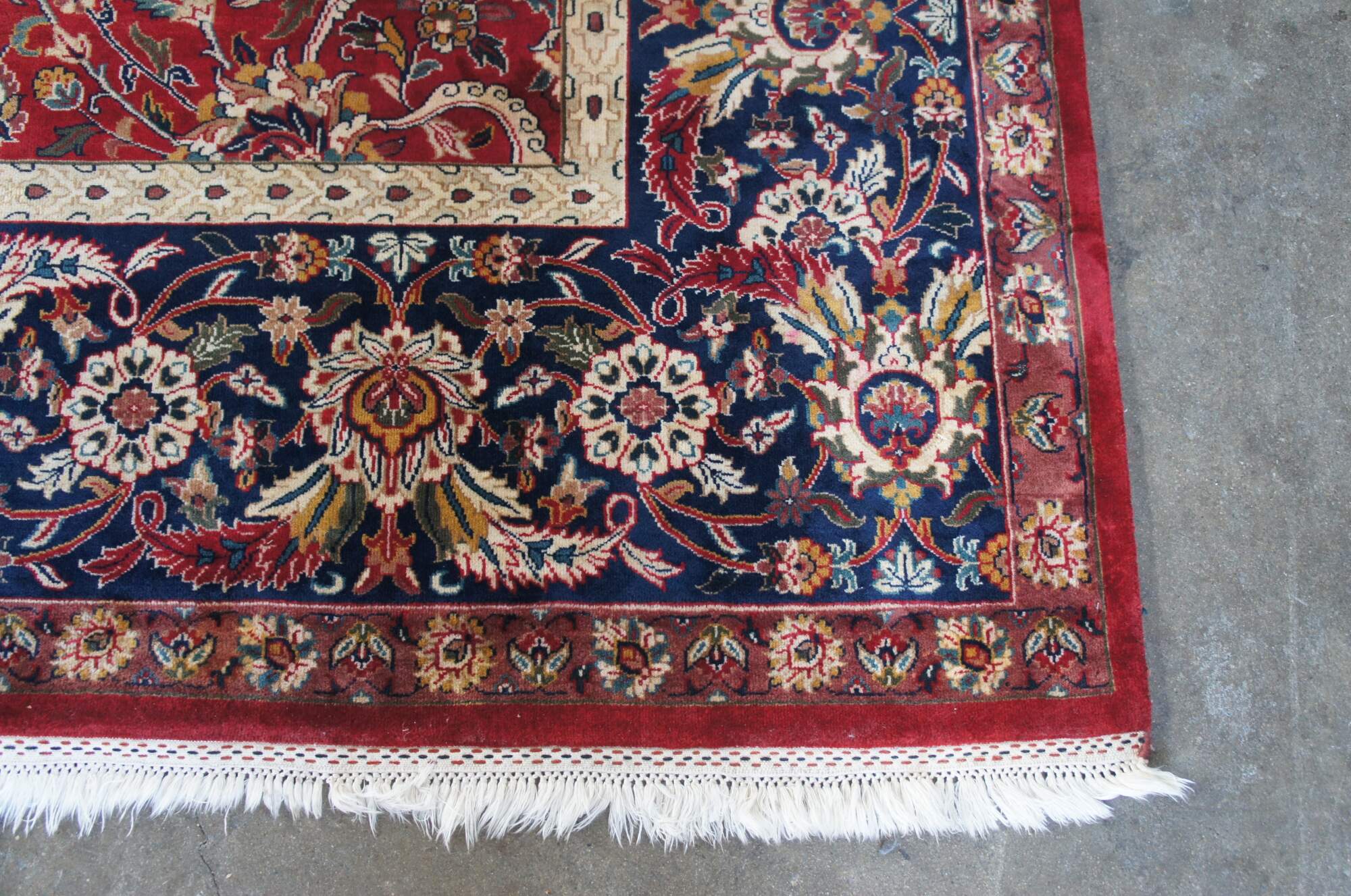 Genuine Hand woven Indian Agra Jaipur design area rug. Made from 100% wool with a field of red and blue. MSRP $9480
