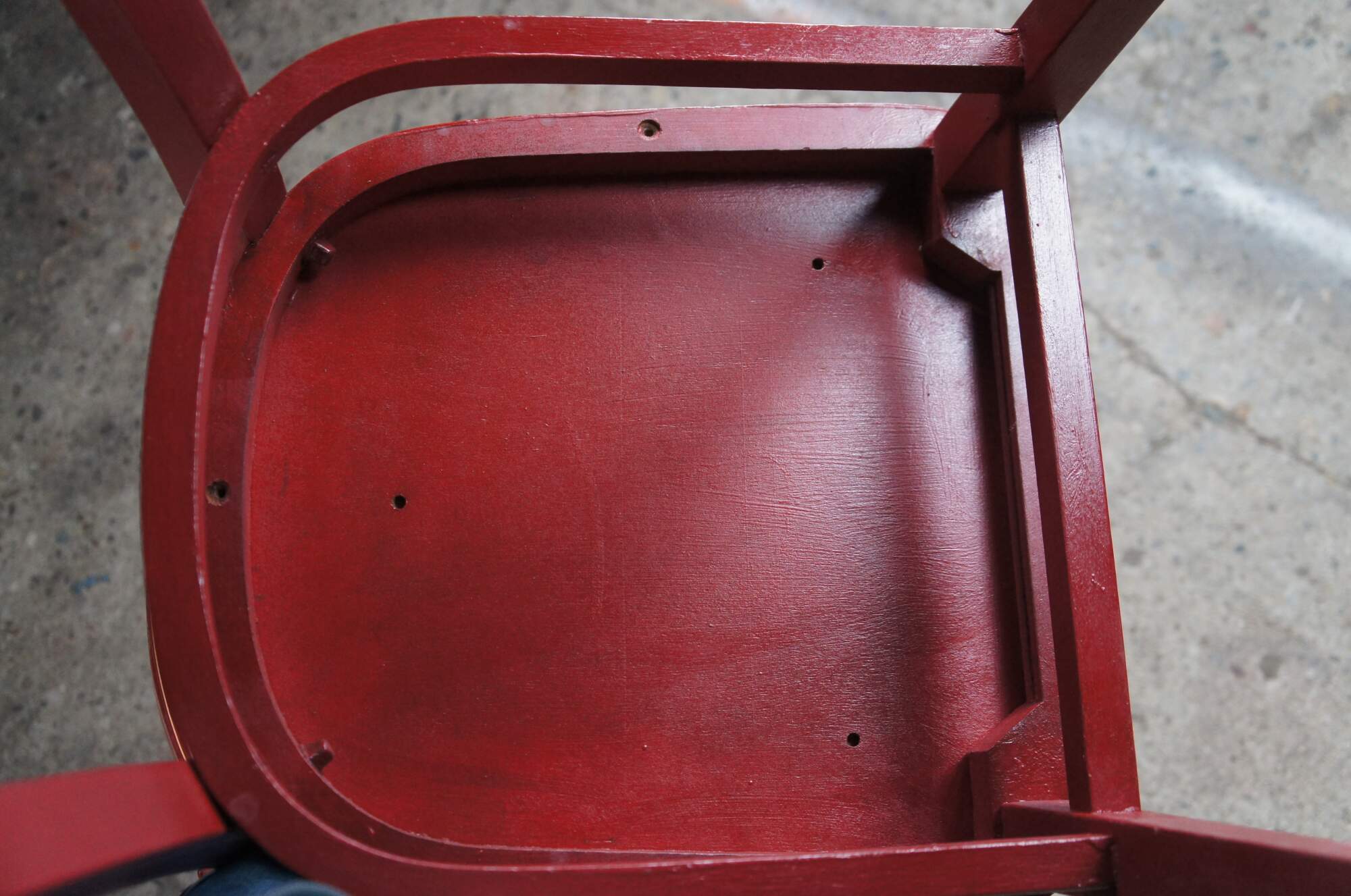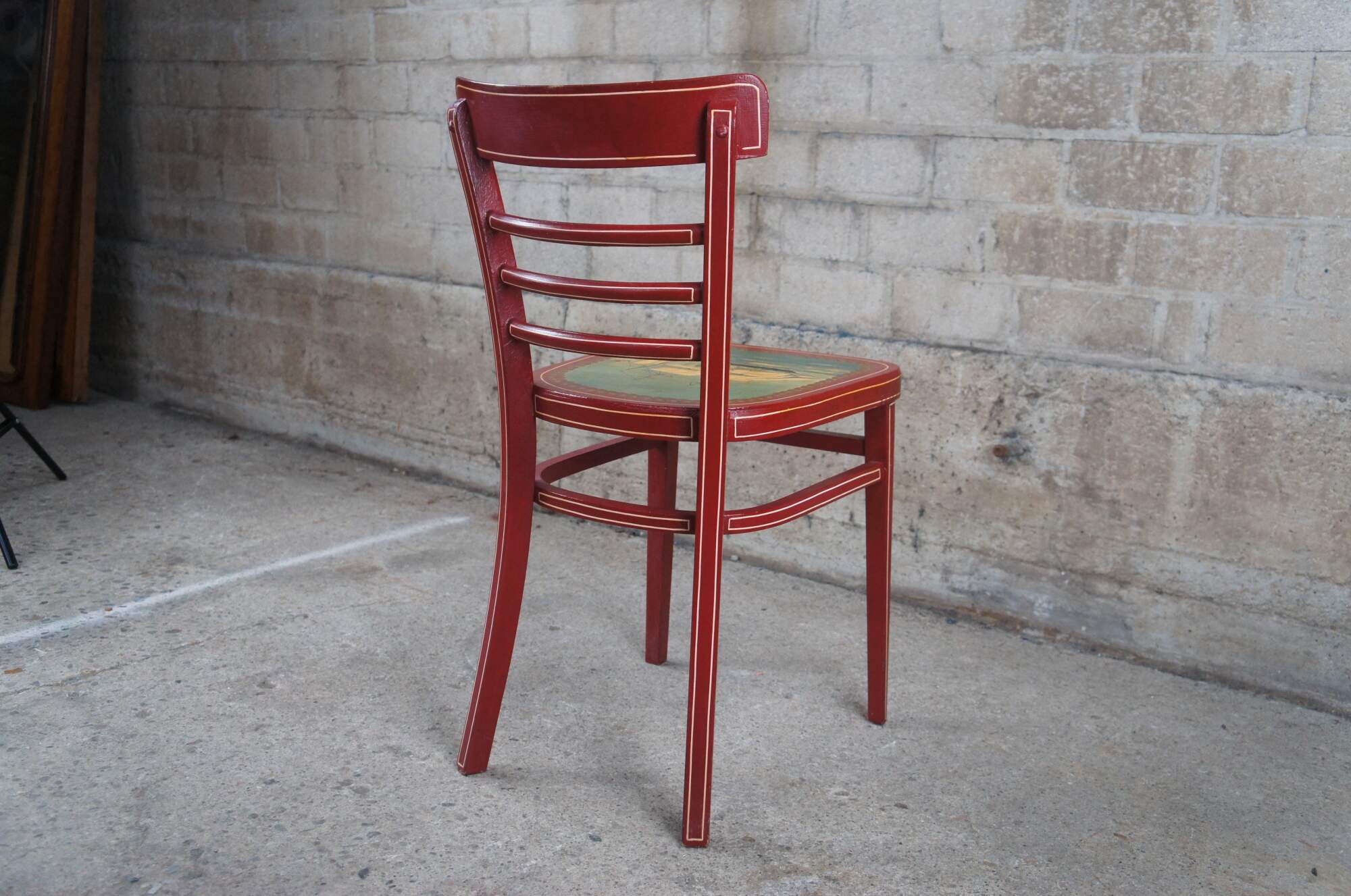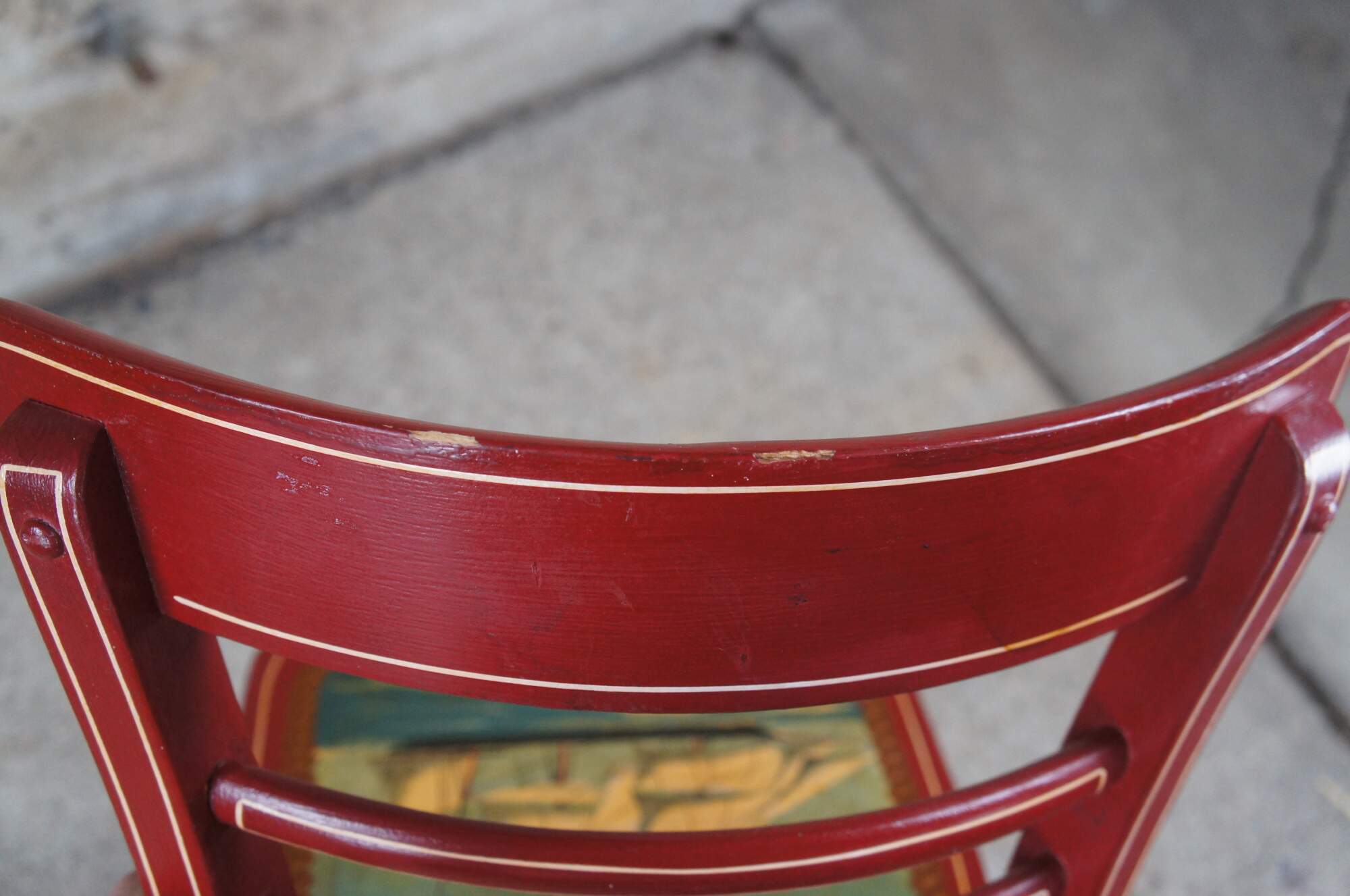 Vintage folk art nautical maritime design side chair featuring a hand painted Viking Clipper ship with rope twist border sailing the ocean with a red ensign or ""Red Duster"" flag, which is the civil ensign of the United Kingdom of Great Britain and Northern Ireland. Marked Viking 1857.