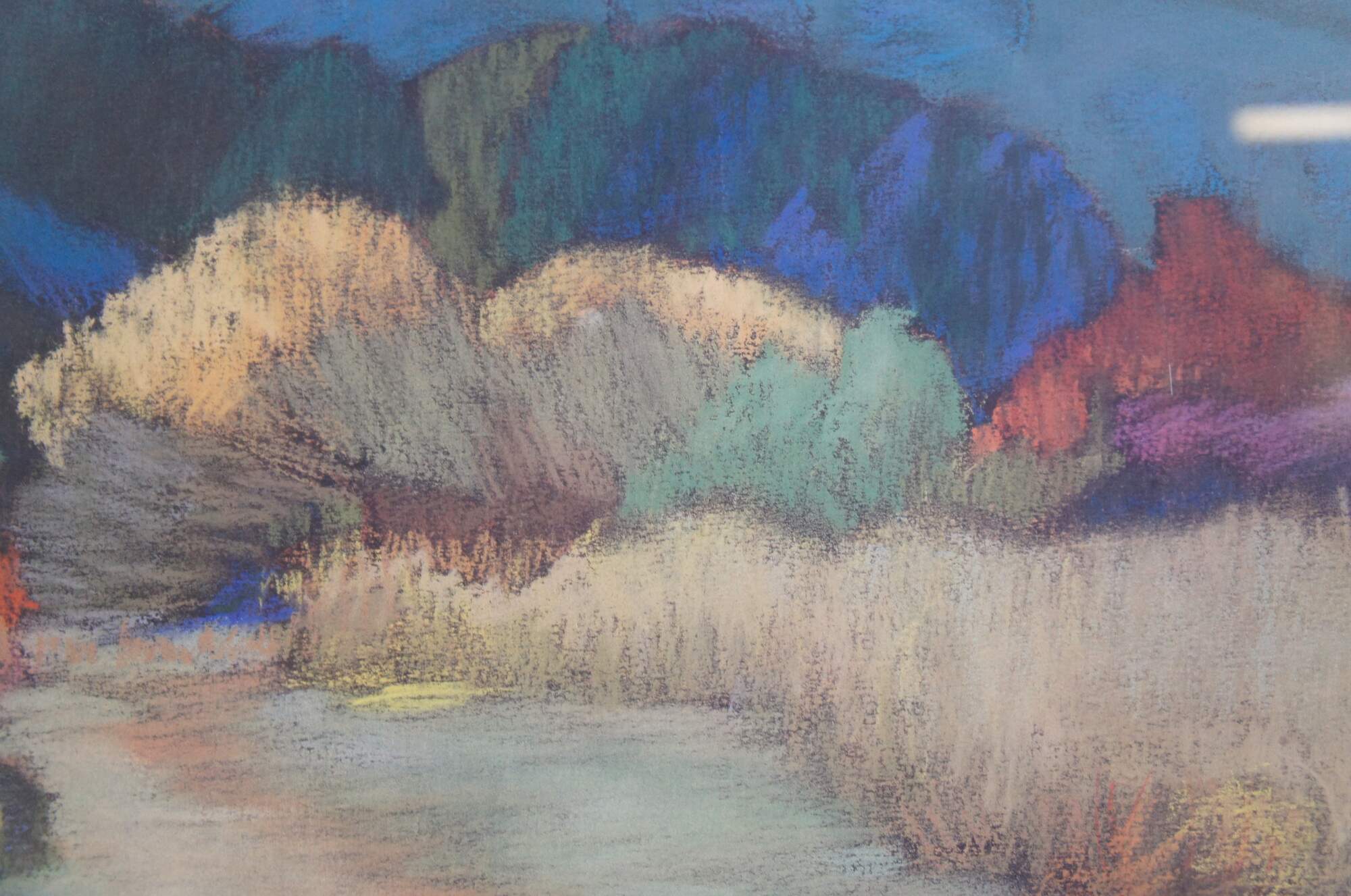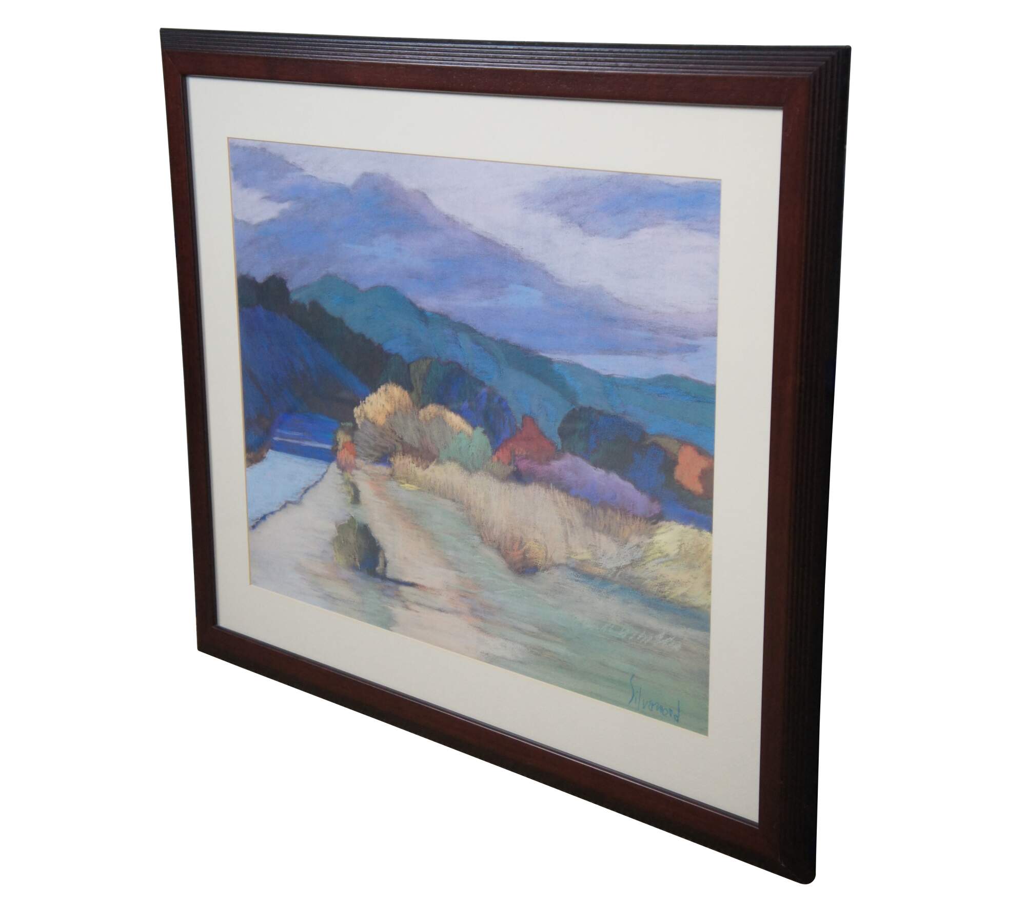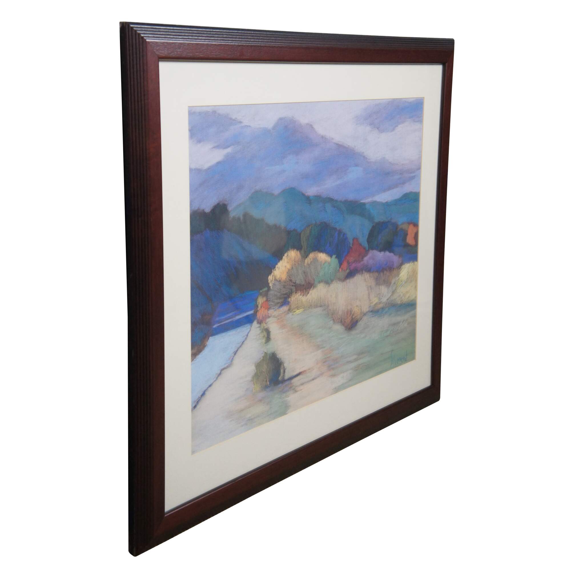 Mary is known for her pastel paintings of the southwest. Her color pallete is very earthy and eye catching and will bring warm to any room. The print is framed behind glass with a mahogany finished frame.