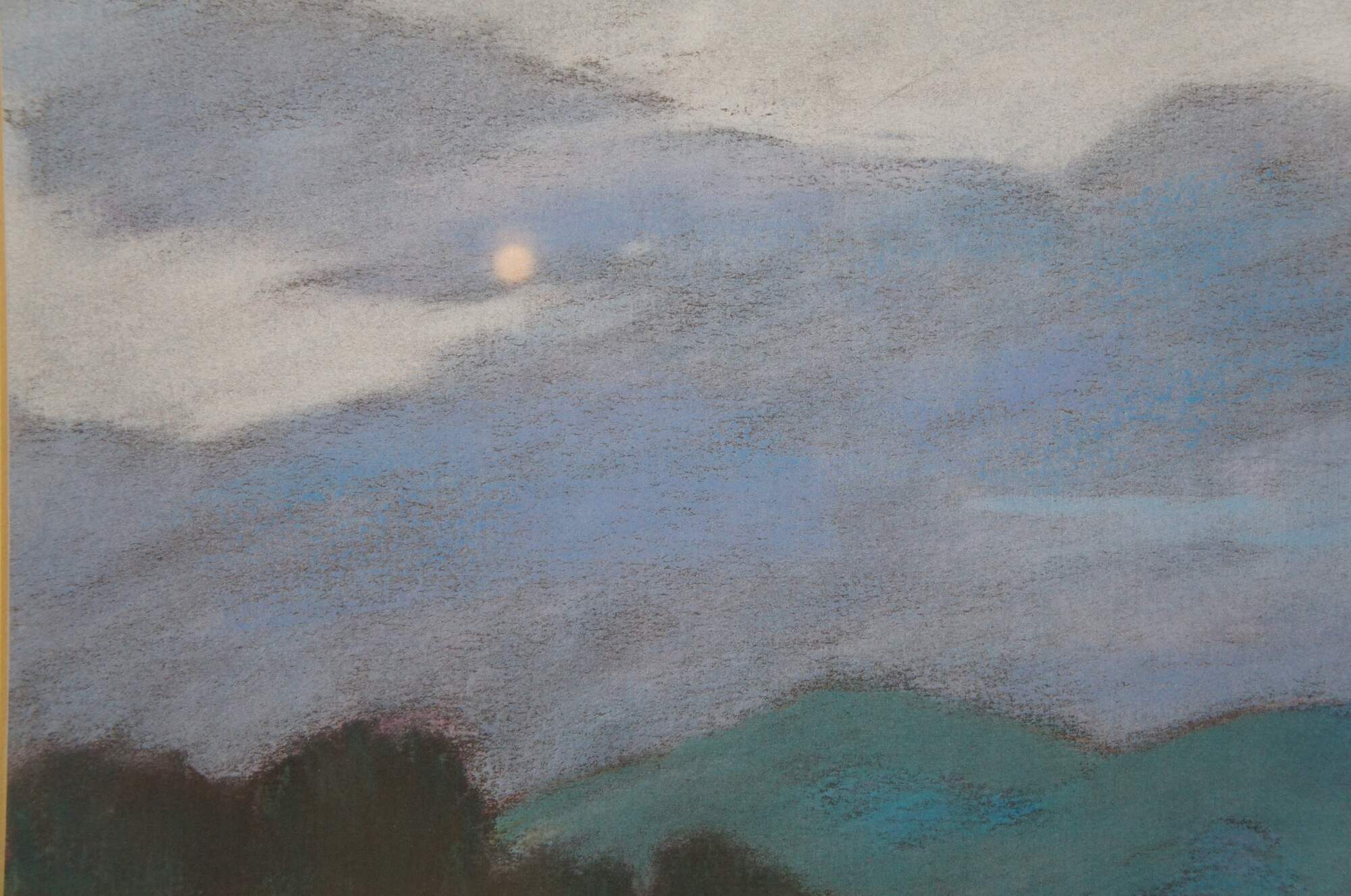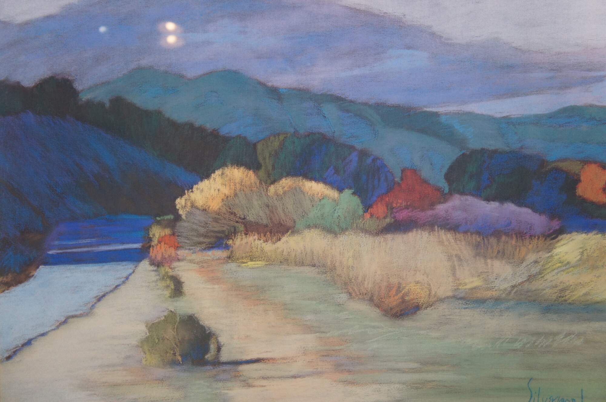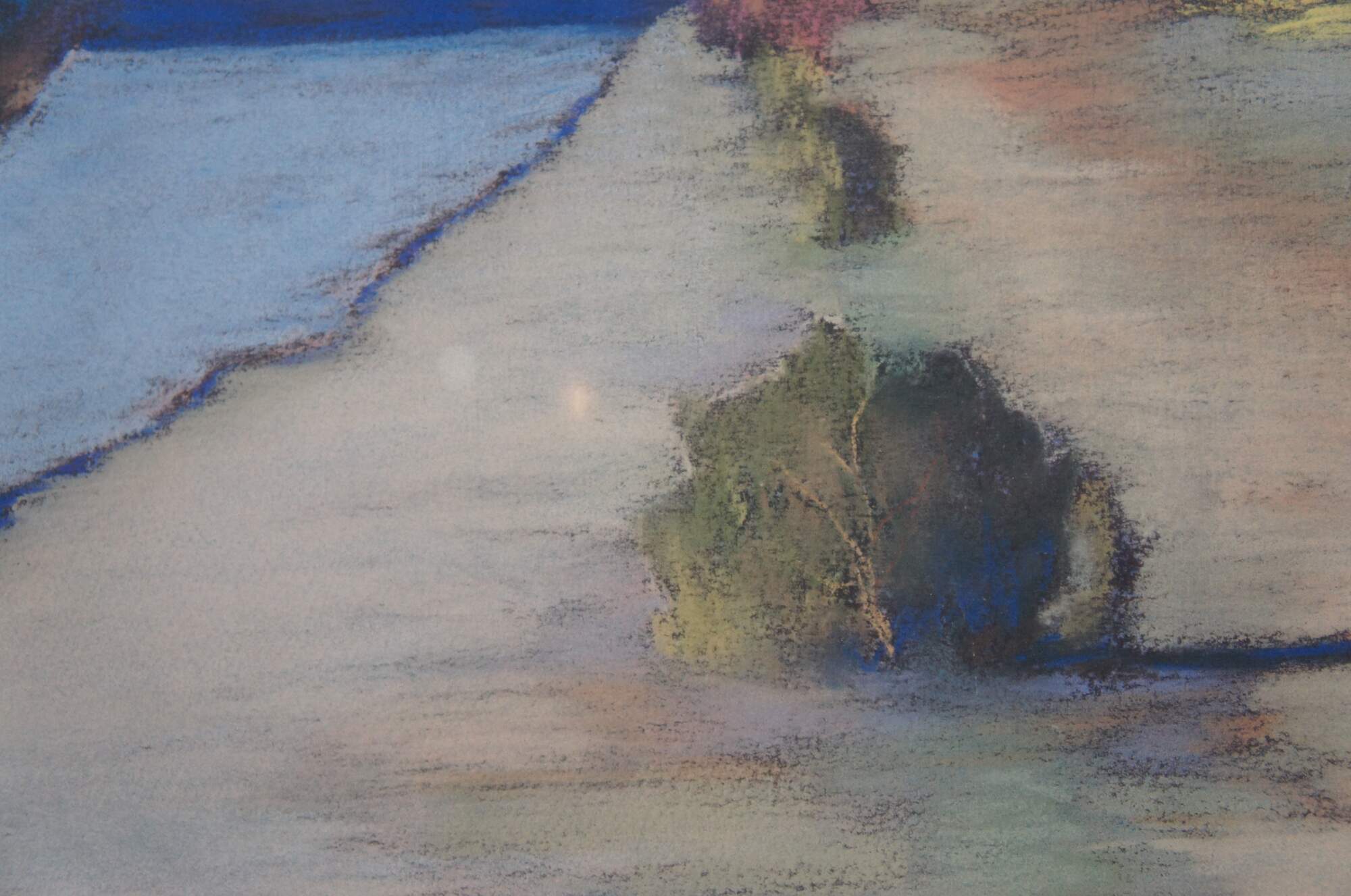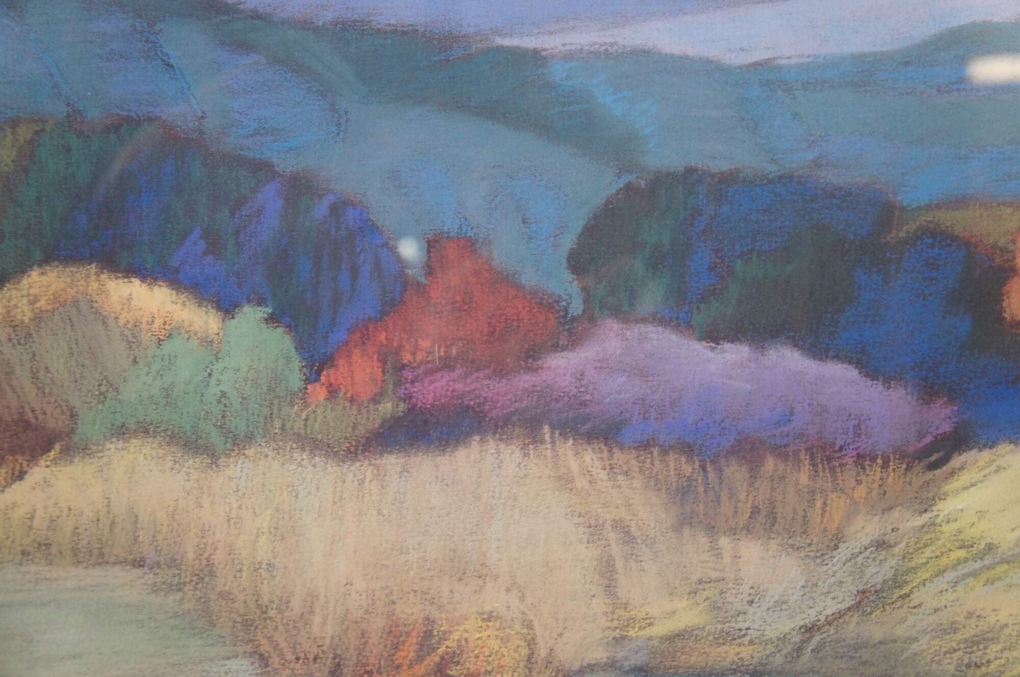 Mary is known for her pastel paintings of the southwest. Her color pallete is very earthy and eye catching and will bring warm to any room. The print is framed behind glass with a mahogany finished frame.