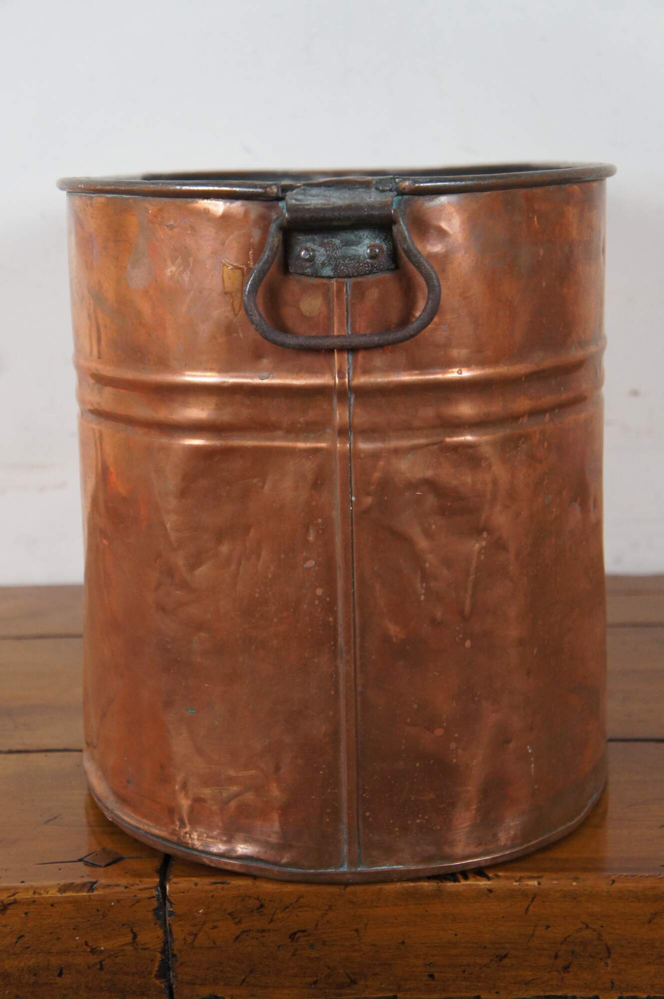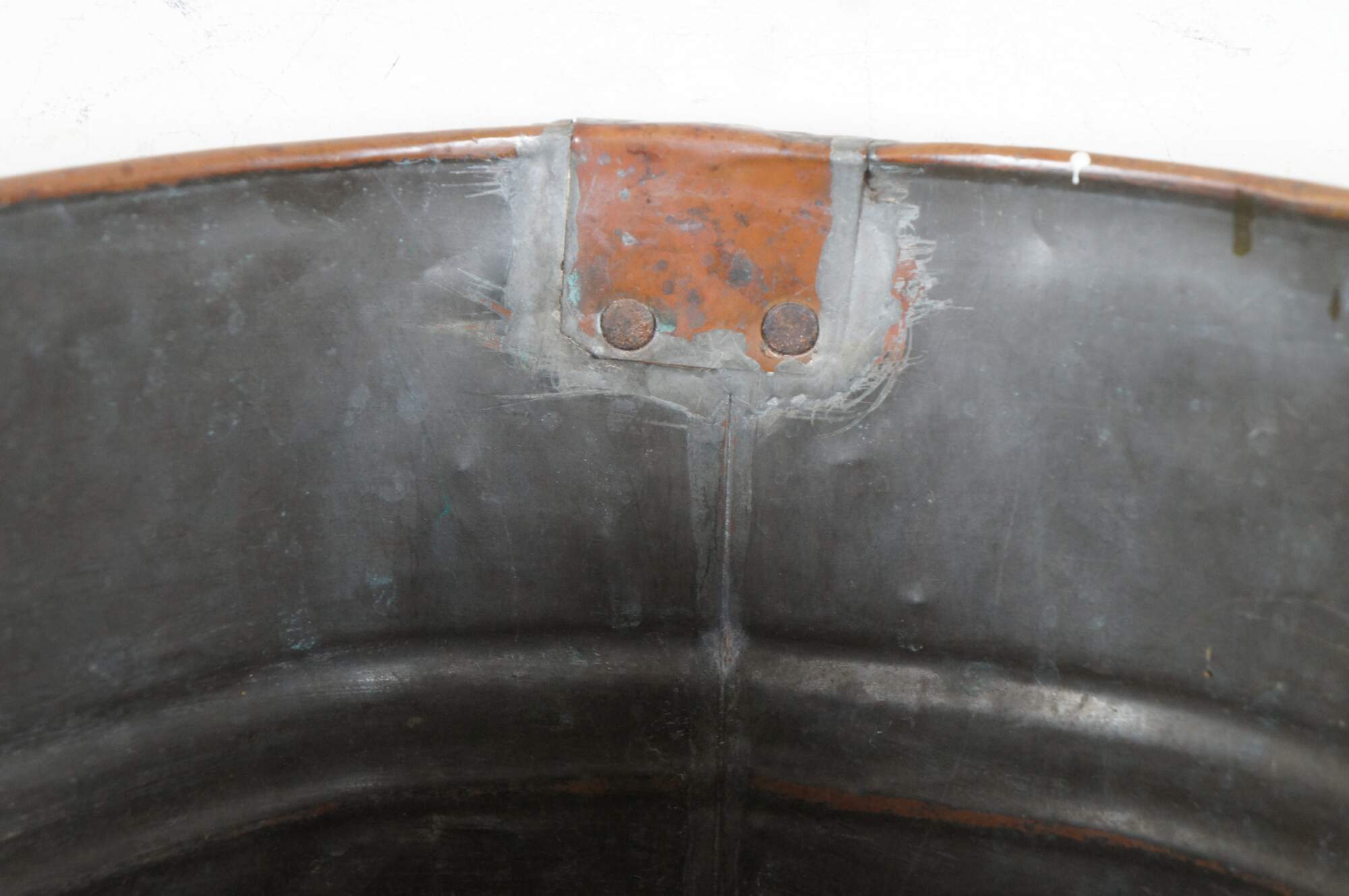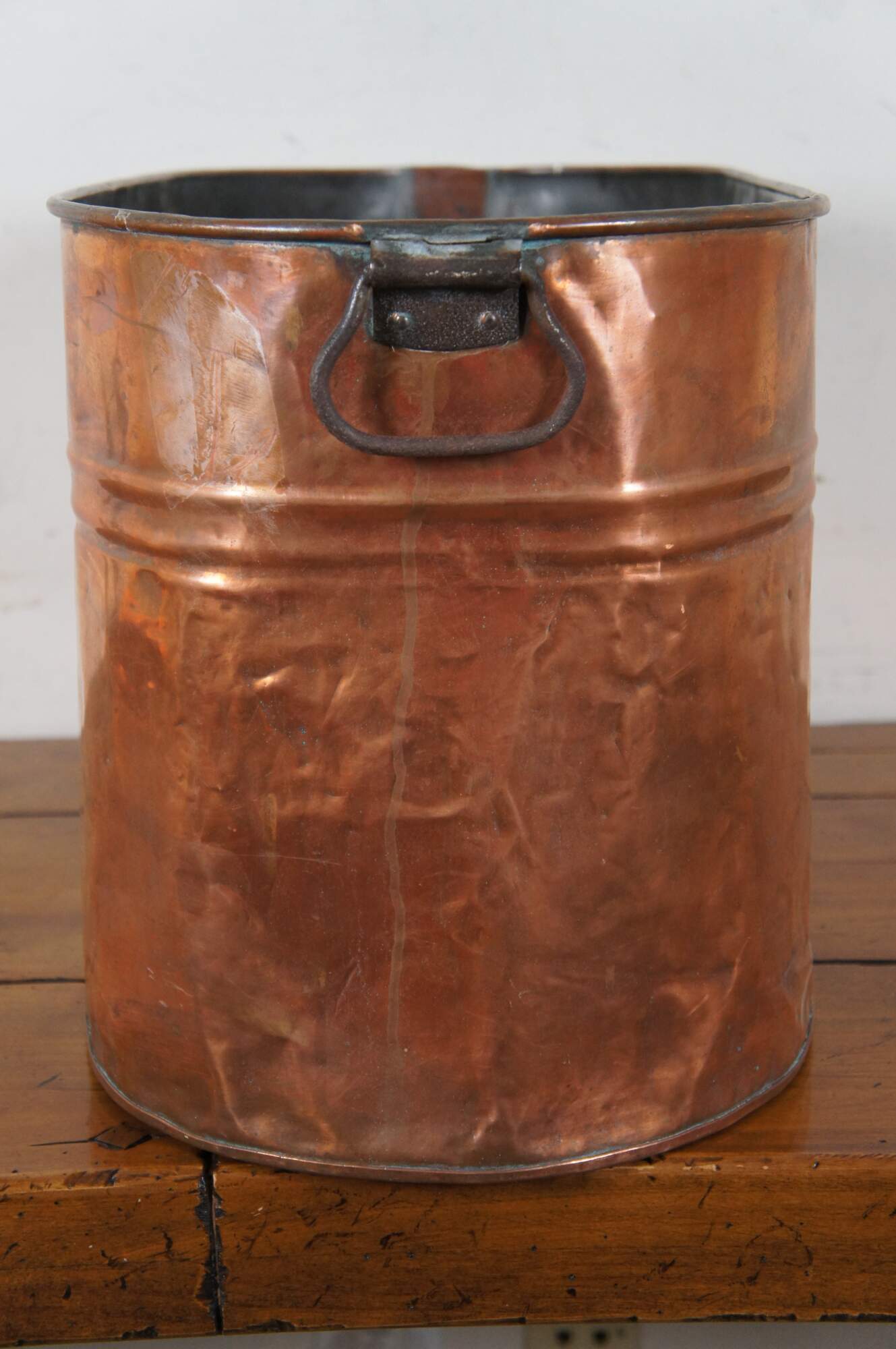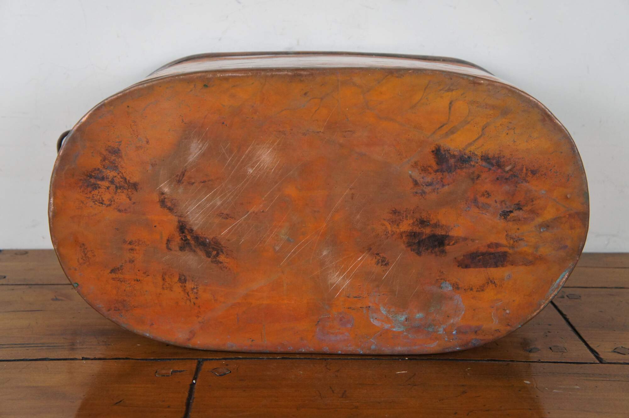Antique early 20th century copper boiler / wash tub, oval shaped with iron handles.