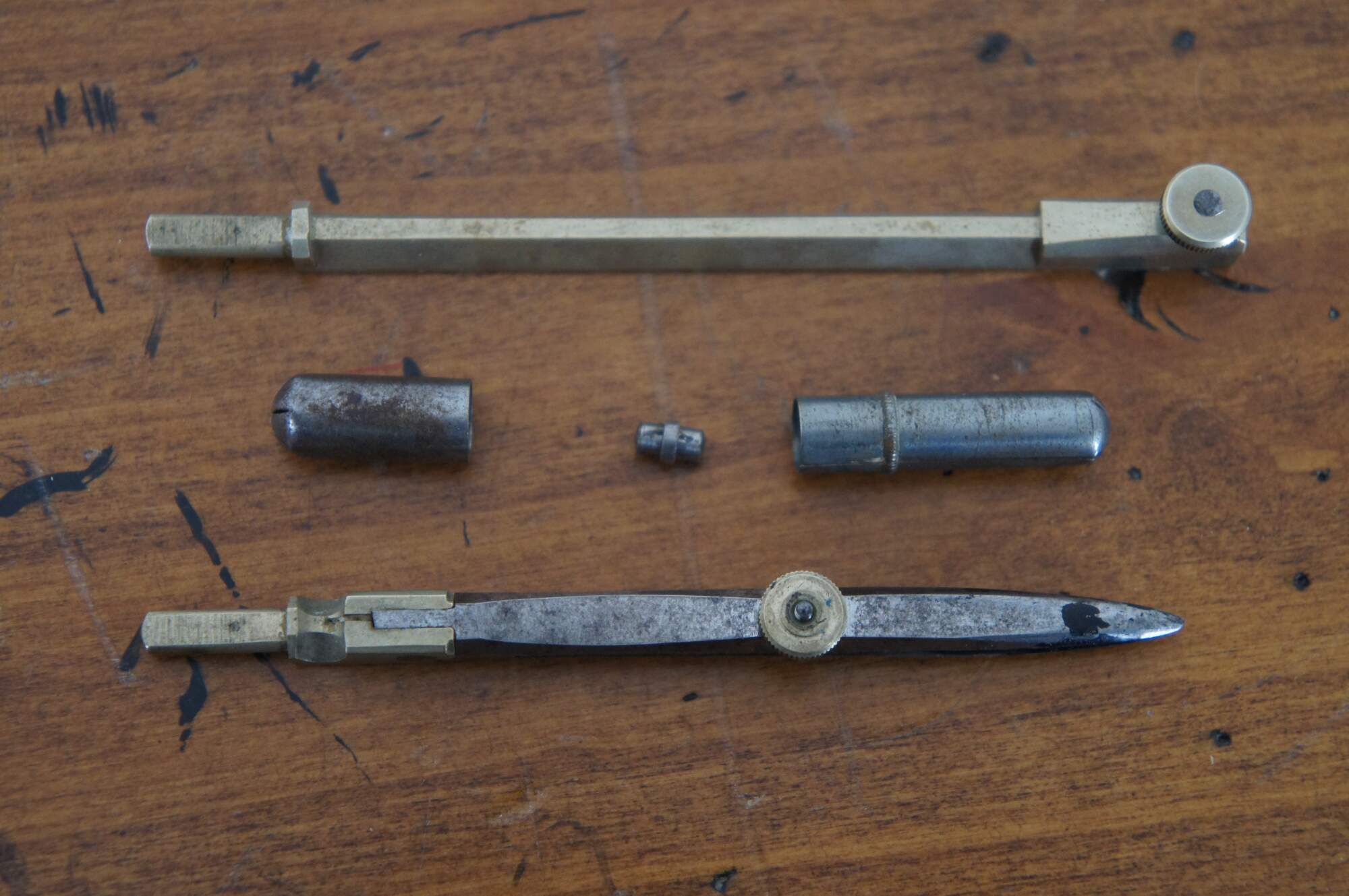 Good Overall - Heavy wear to case exterior; tarnish to metal; one missing tool