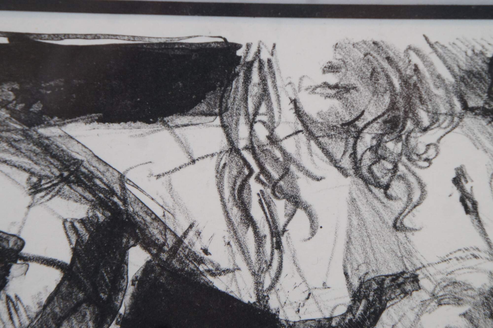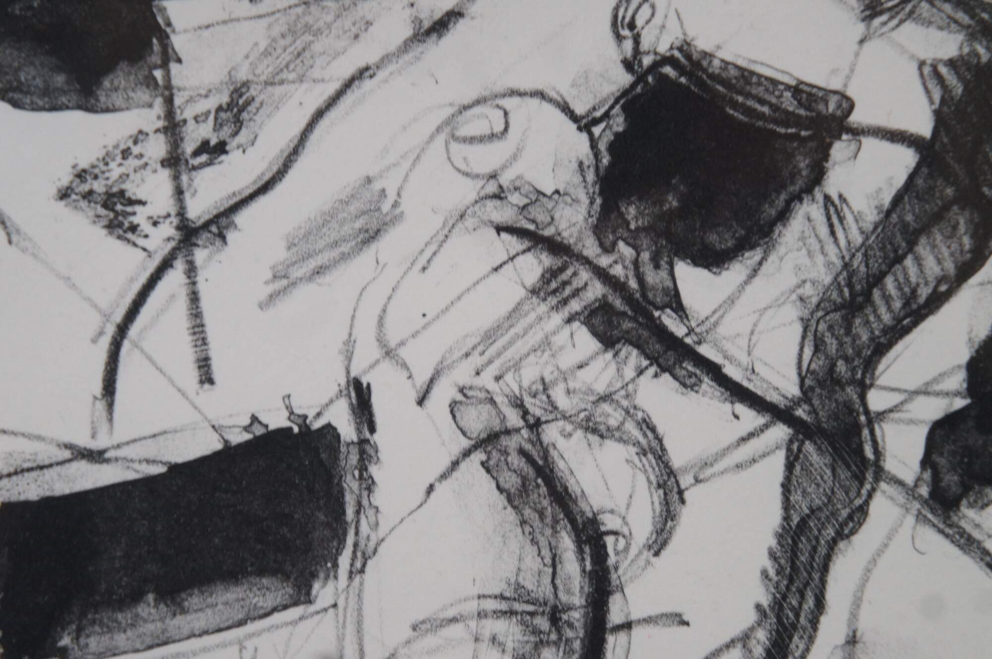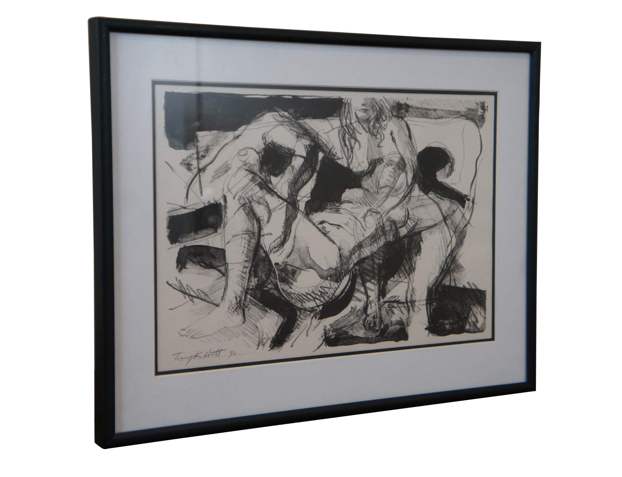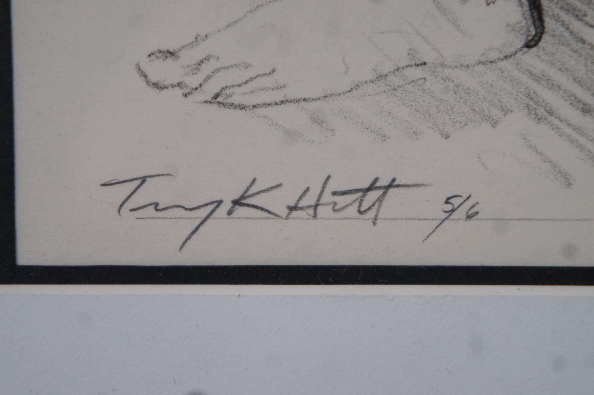 Limited edition stone lithograph print by Beavercreek, OH artist Terry Hitt, titled “Sensual Repose X3,” pencil signed and numbered 5/6. Awarded Best of Show at the 2009 Kay Smith Memorial Printmakers Show. Features an abstract nude women, reposed in different positions that overlap.