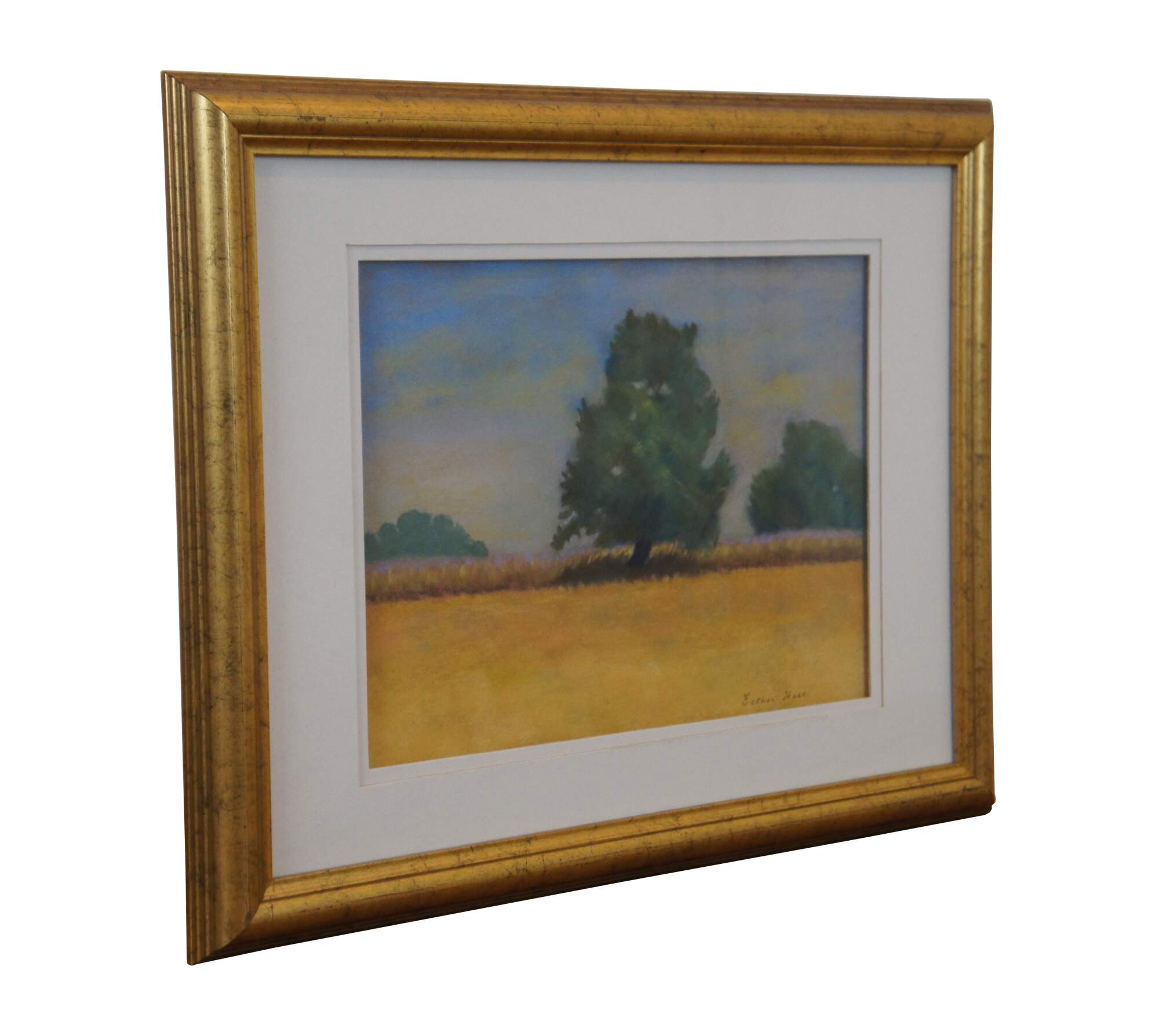 Vintage original pastel landscape painting by Dayton artist Esther Wise titled “Golden Field.”