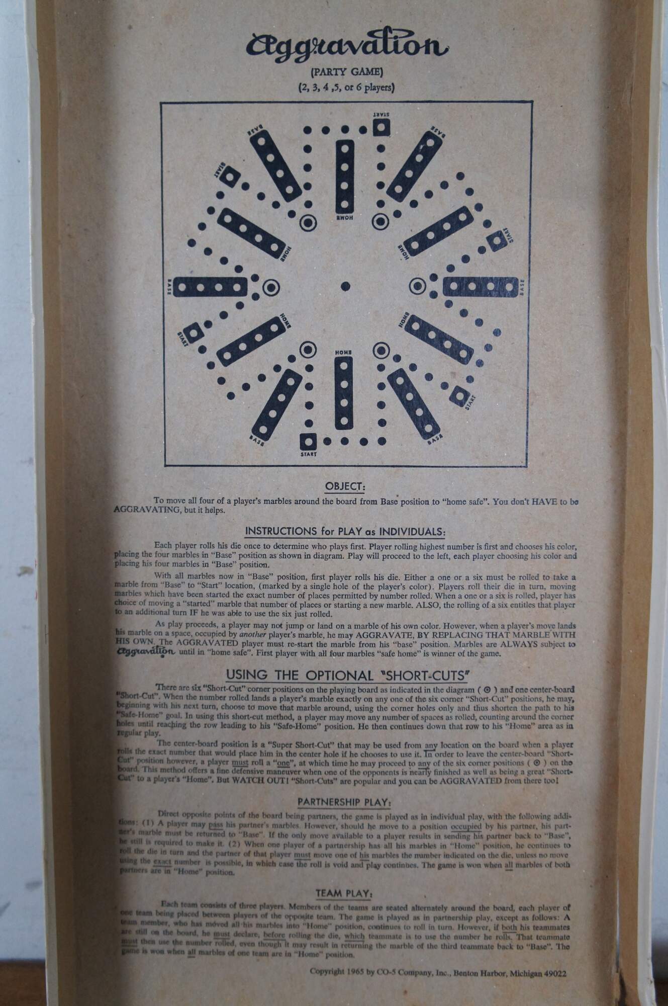 Complete vintage 1965 Aggravation Deluxe Party Edition board game by CO-5 Company.