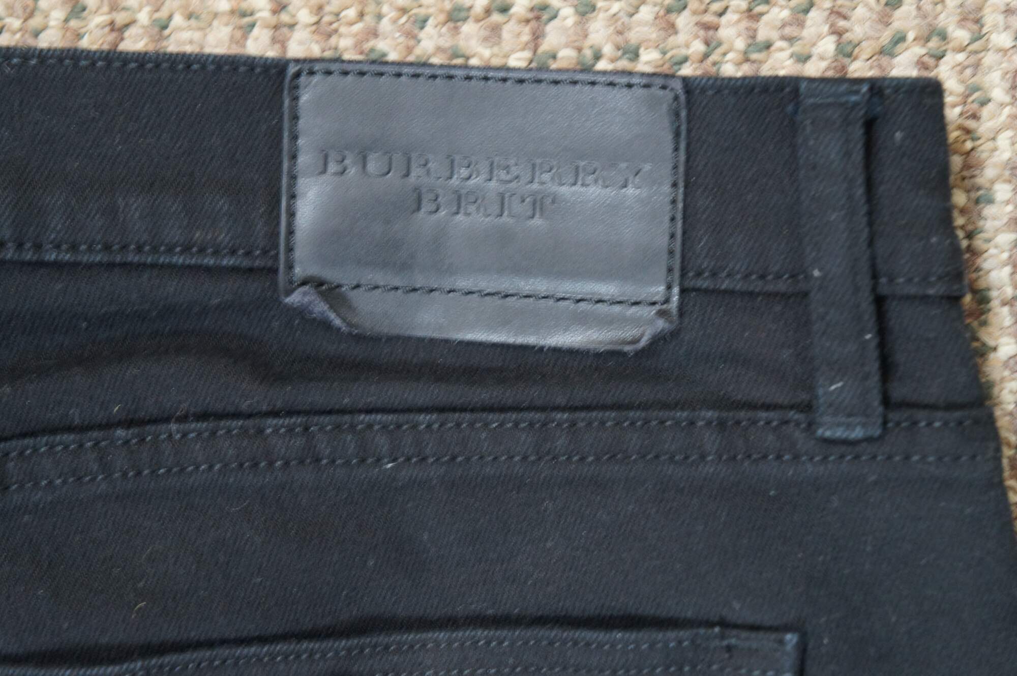 Vintage Burberry Brit men’s black denim straight leg jeans with button fly.