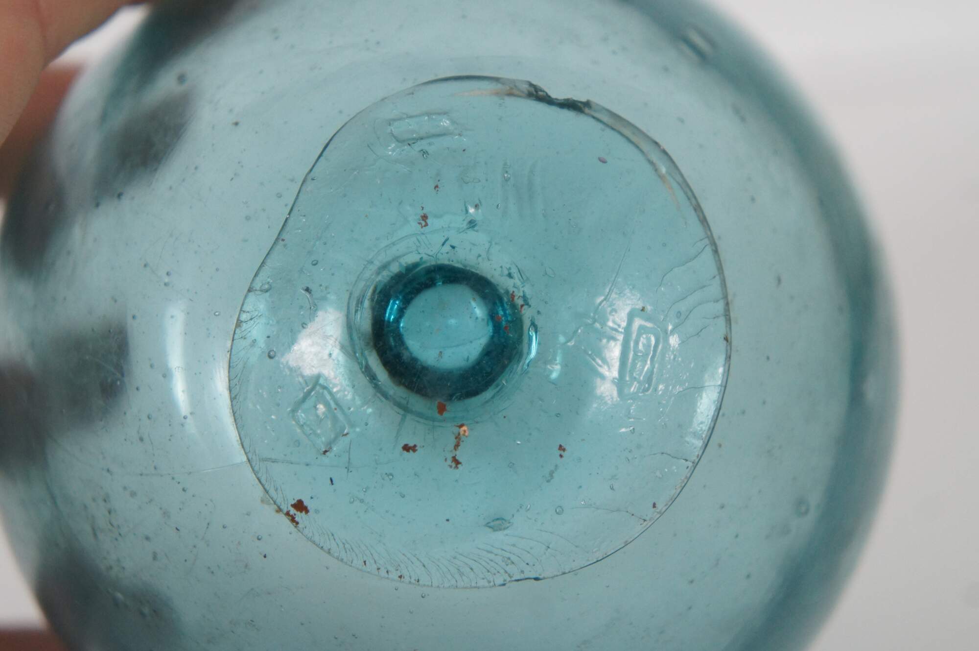 3 Antique hand blown Japanese fishing floats / markers. One rolling pin style and 2 orbs.