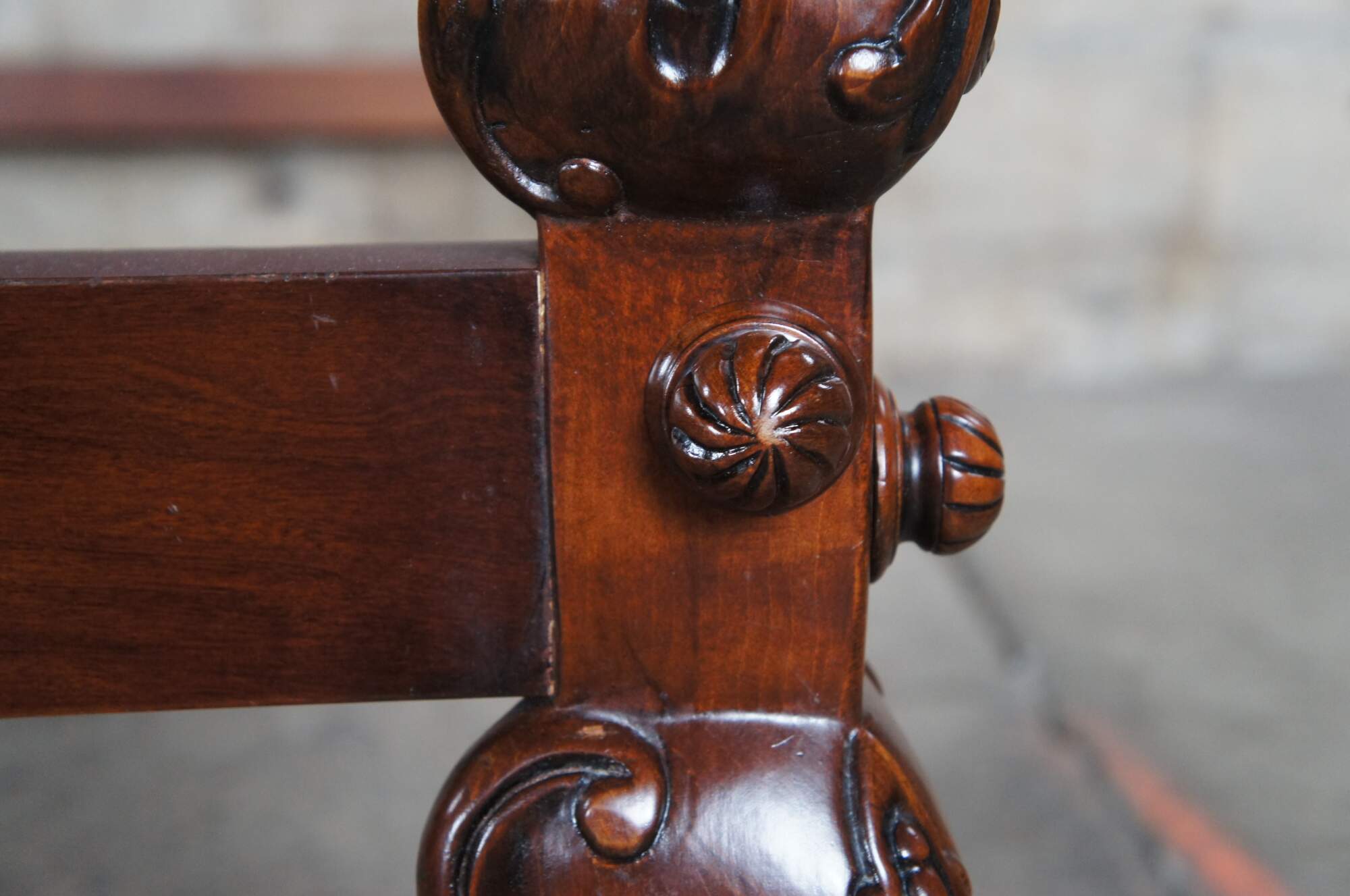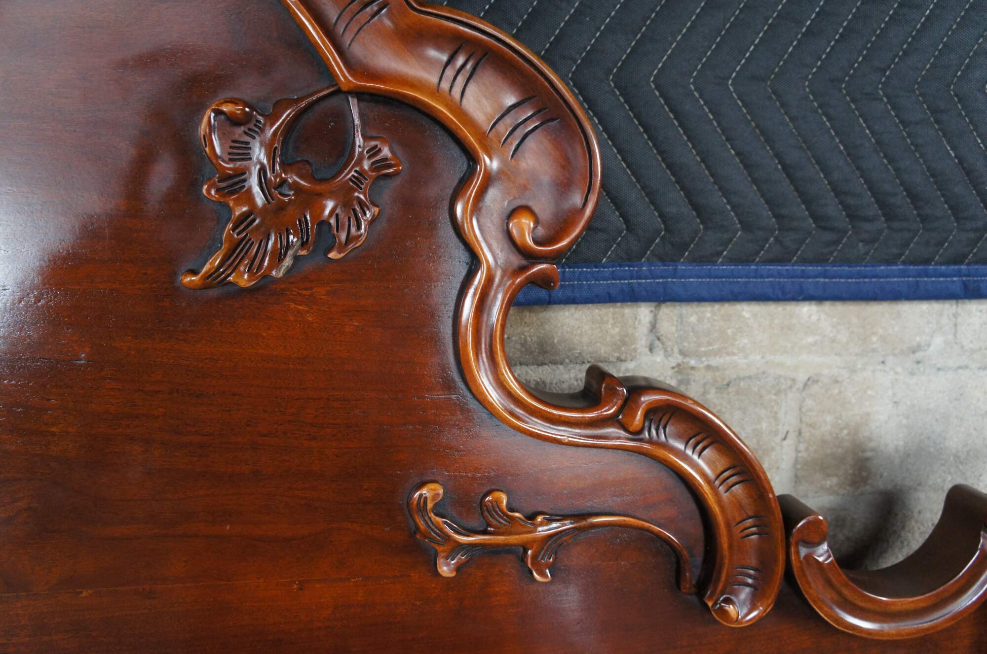 Henredon for Ralph Lauren king size mahogany bed. Influenced by Chippendale and Baroque styling with a dramatic arched headboard featuring ornately scalloped design. Includes ball and claw feet.