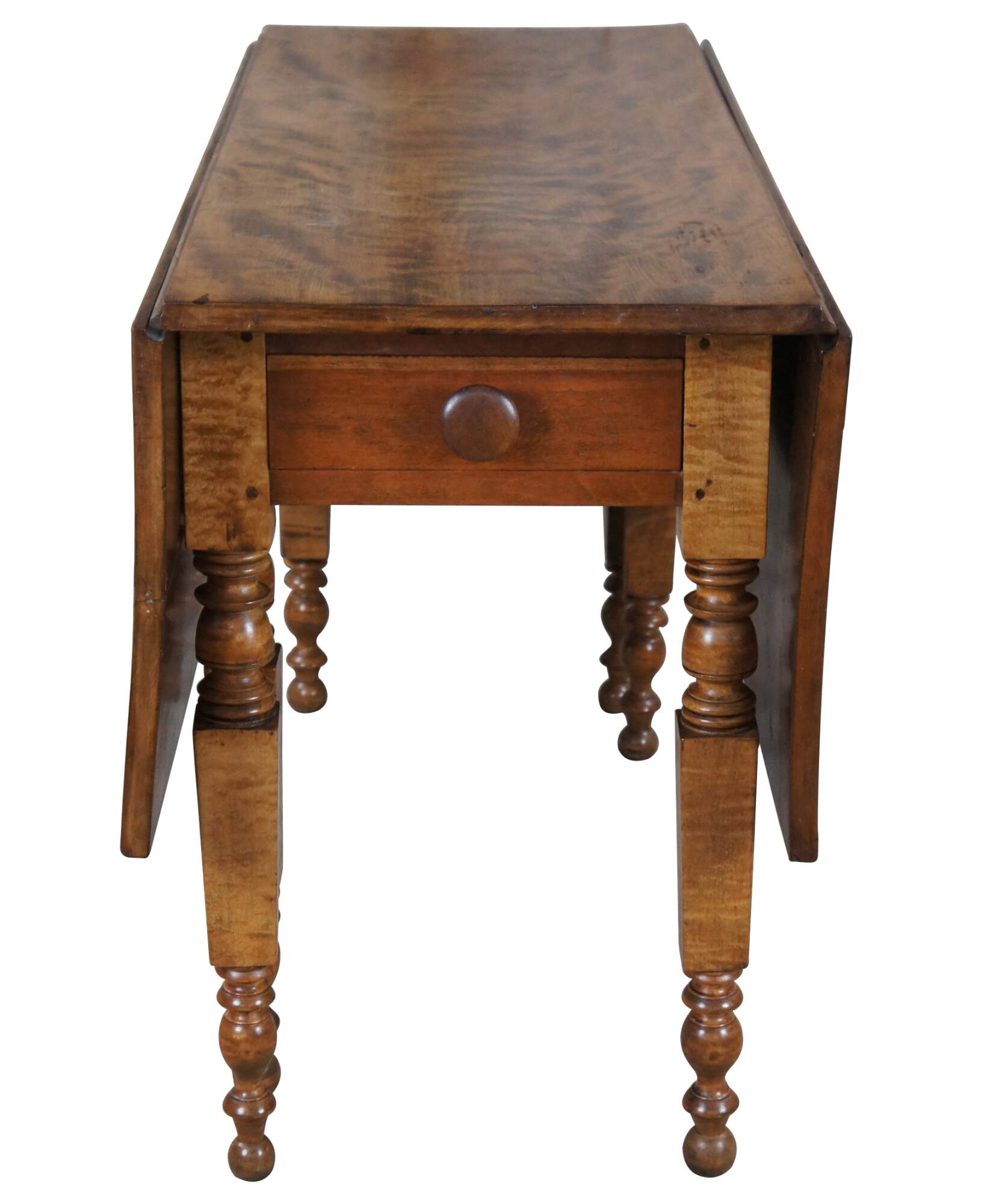 Antique Early American Style Curly Maple Drop Leaf Gateleg Dining Console Table