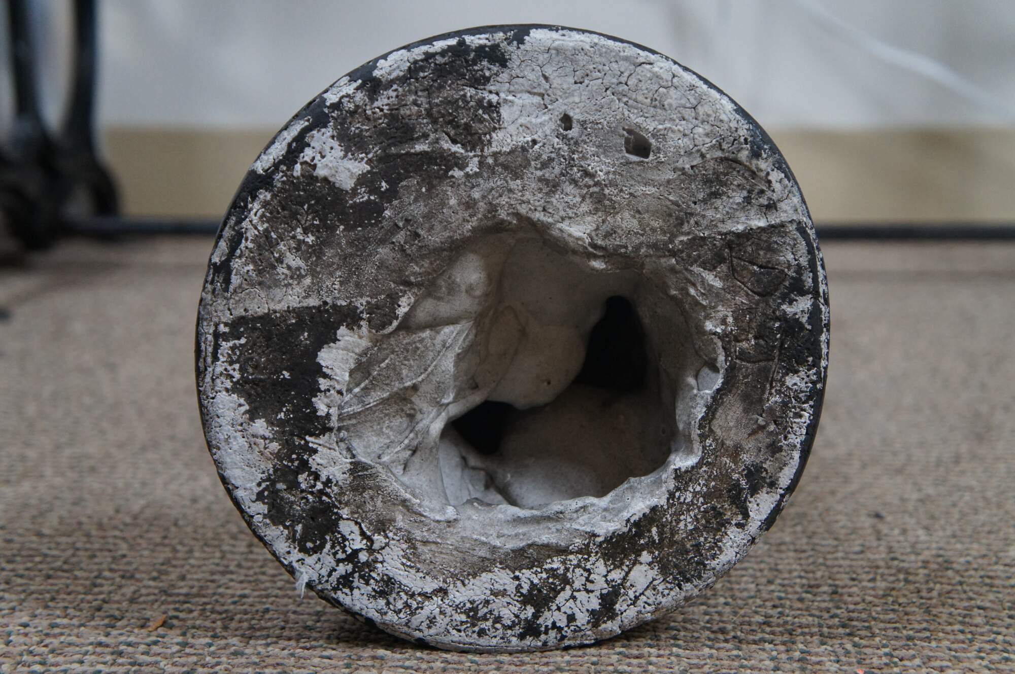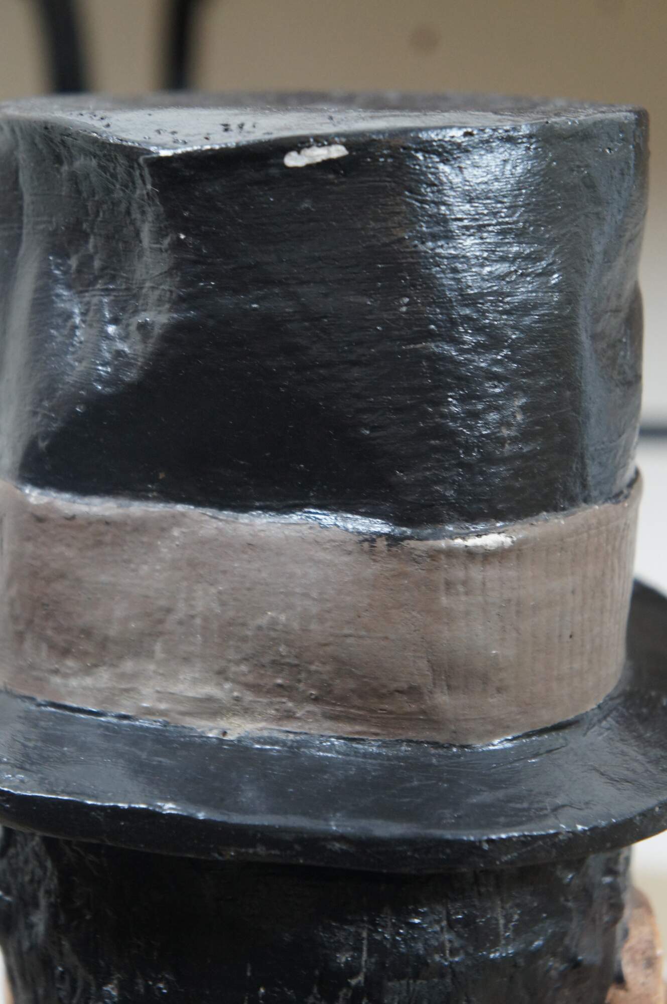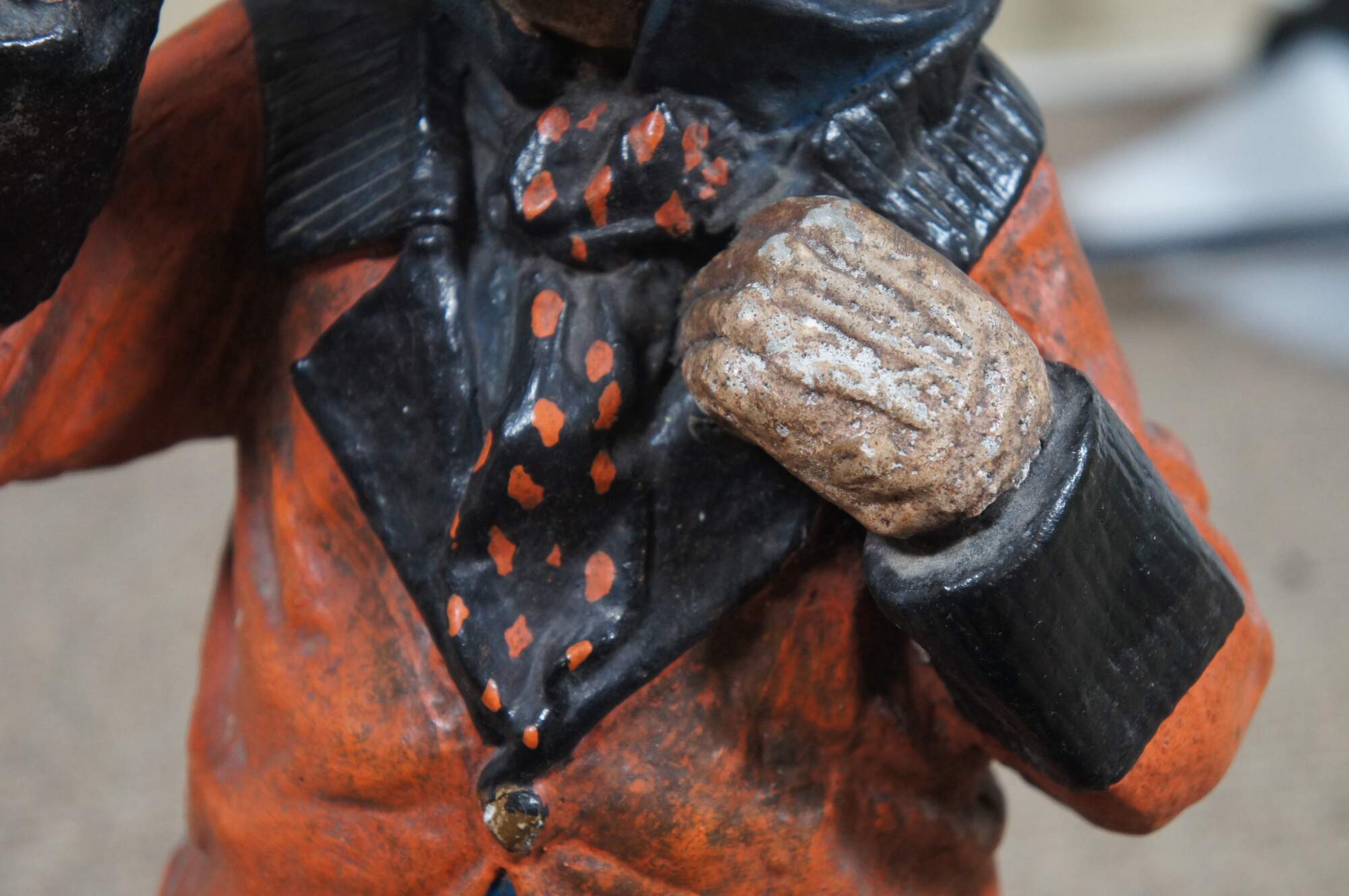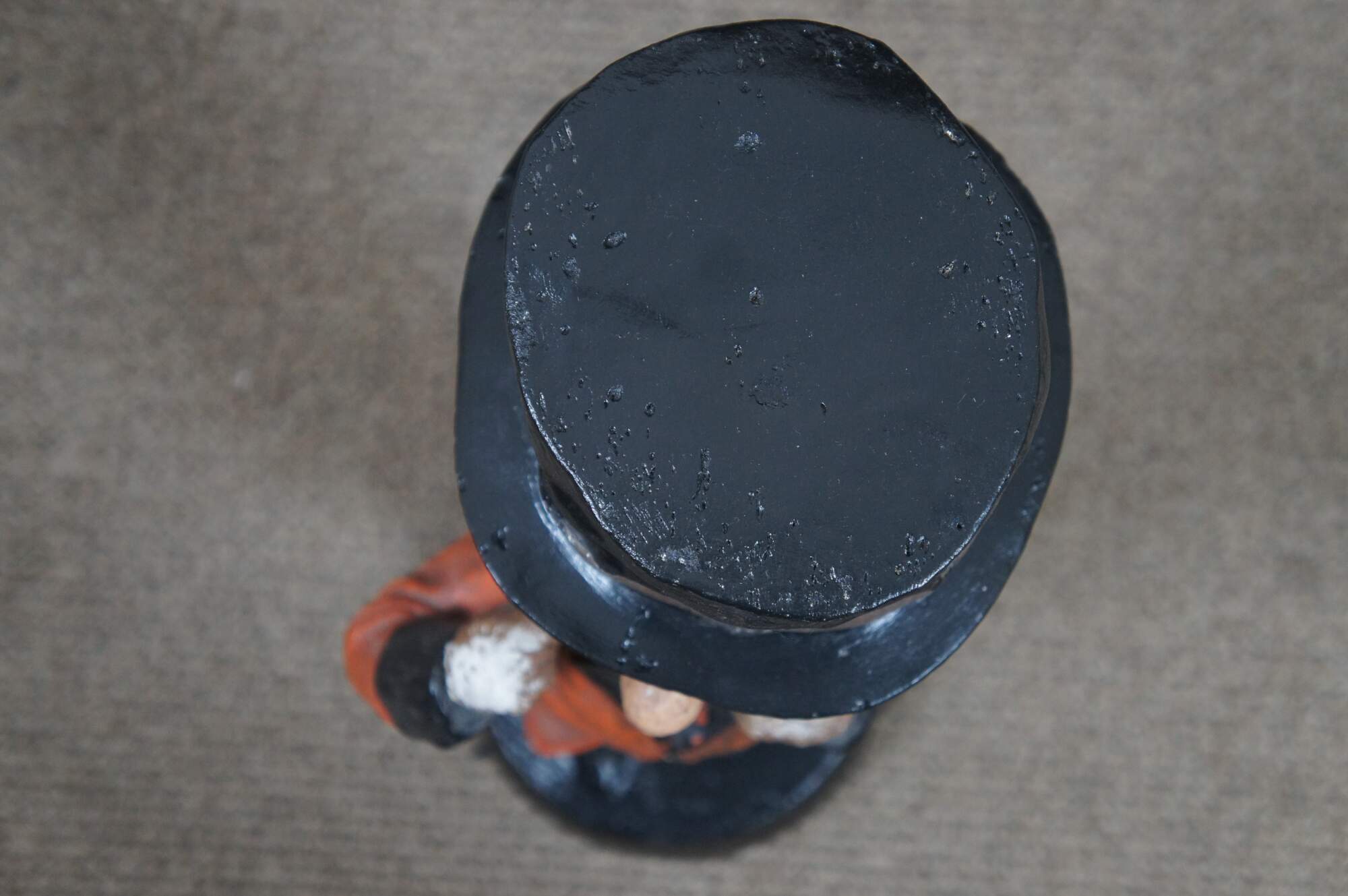 Vintage painted chalkware figurine / statue of W.C. Fields in a red-orange suit with spotted cravat and large top hat.