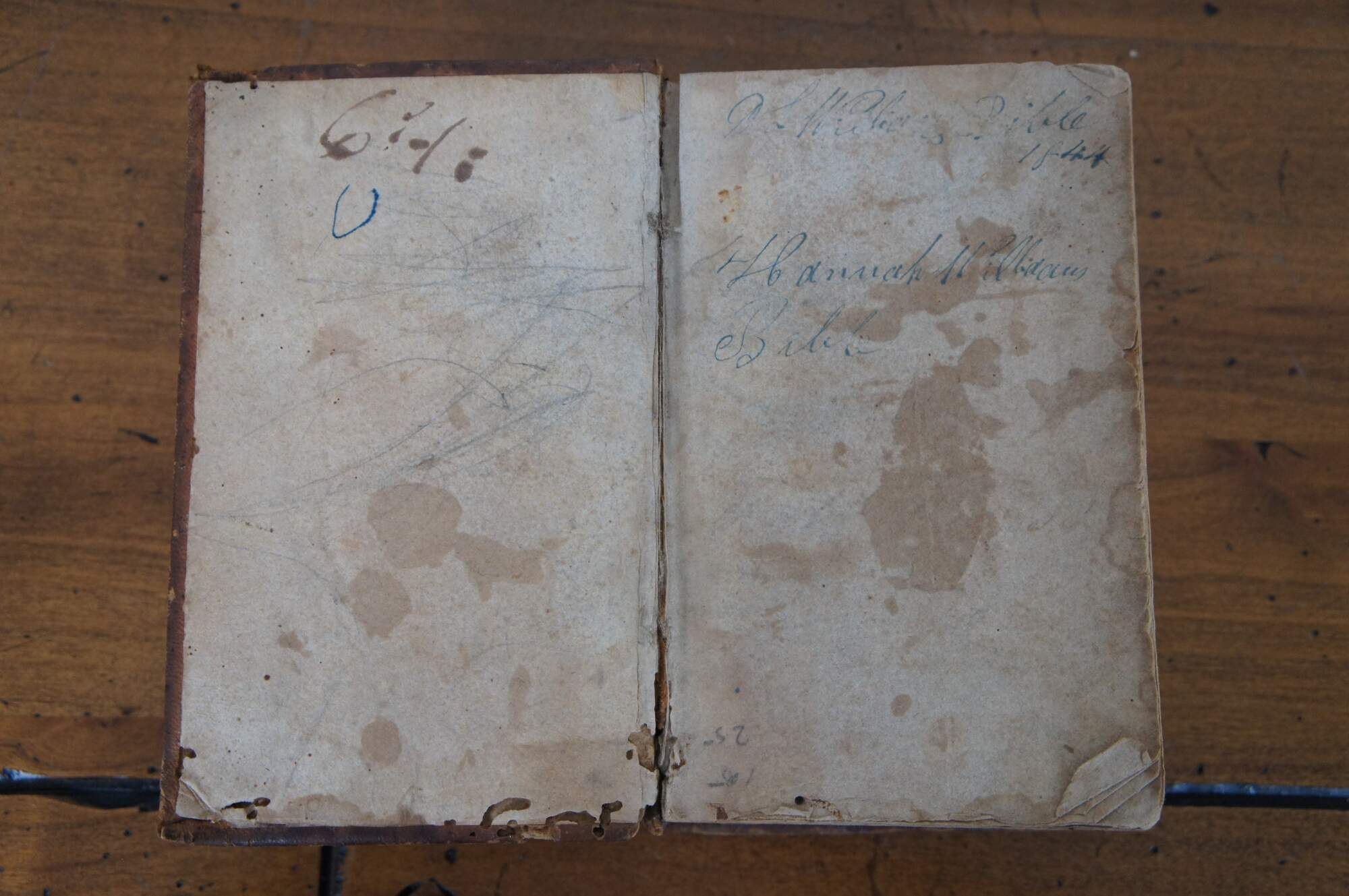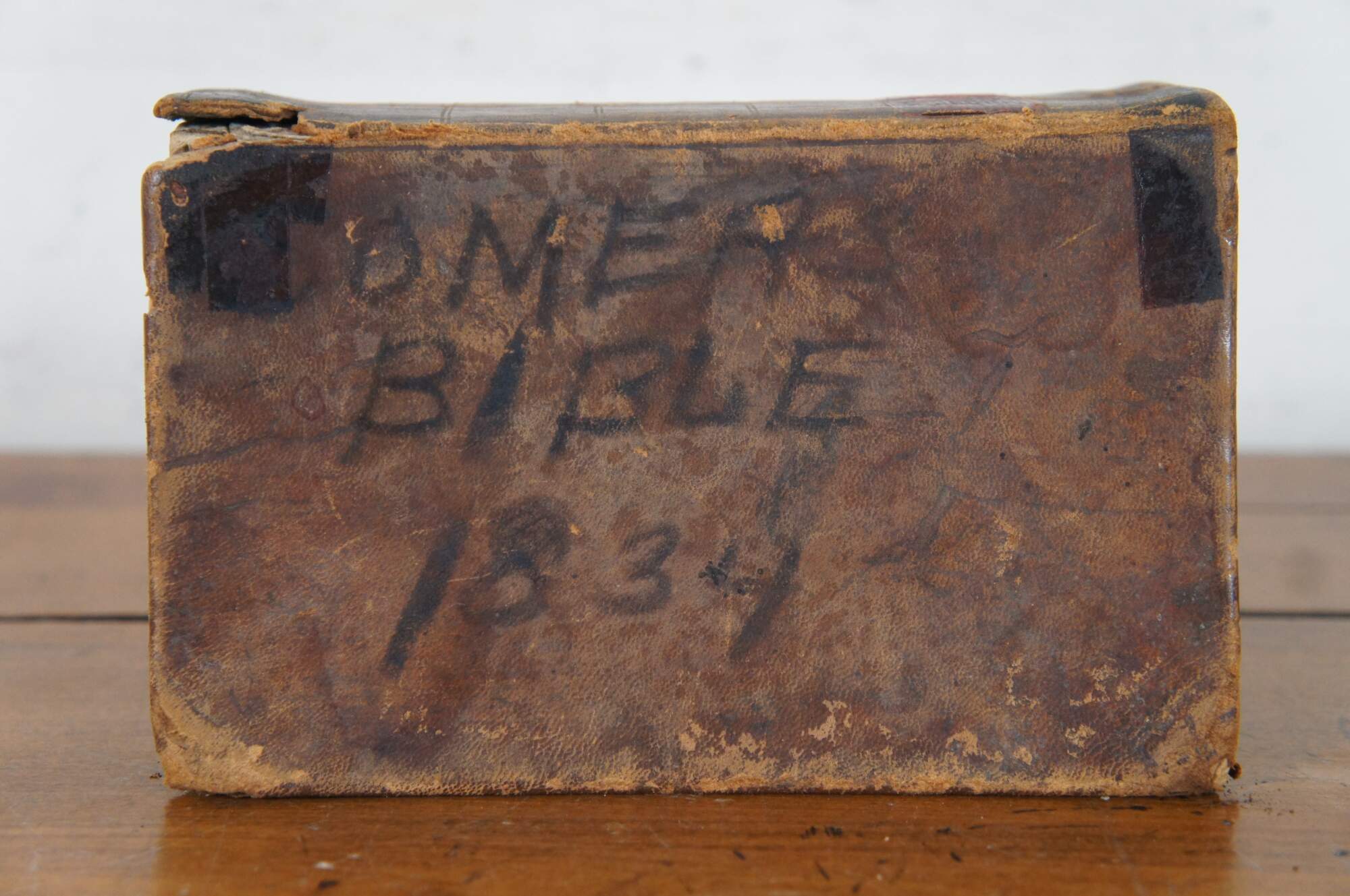 Antique leather bound Holy Bible, published by Morgan and Sanxay of Cincinnati, Ohio, 1834. Morgan and Sanxay published the first bible in Ohio in 1830.