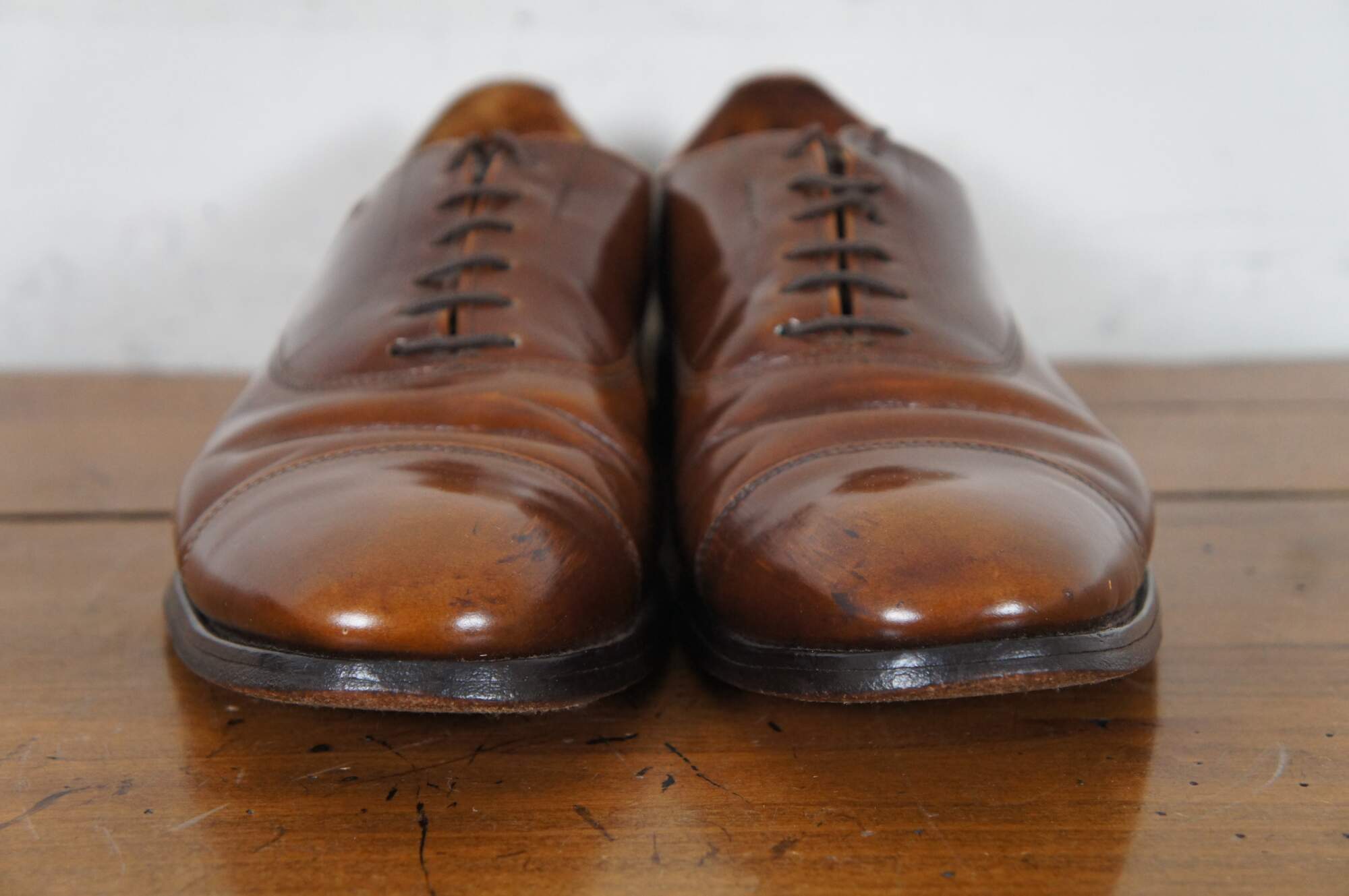 Allen Edmonds “Park Avenue” cap toe leather oxfords in walnut brown. Includes dust bags.
