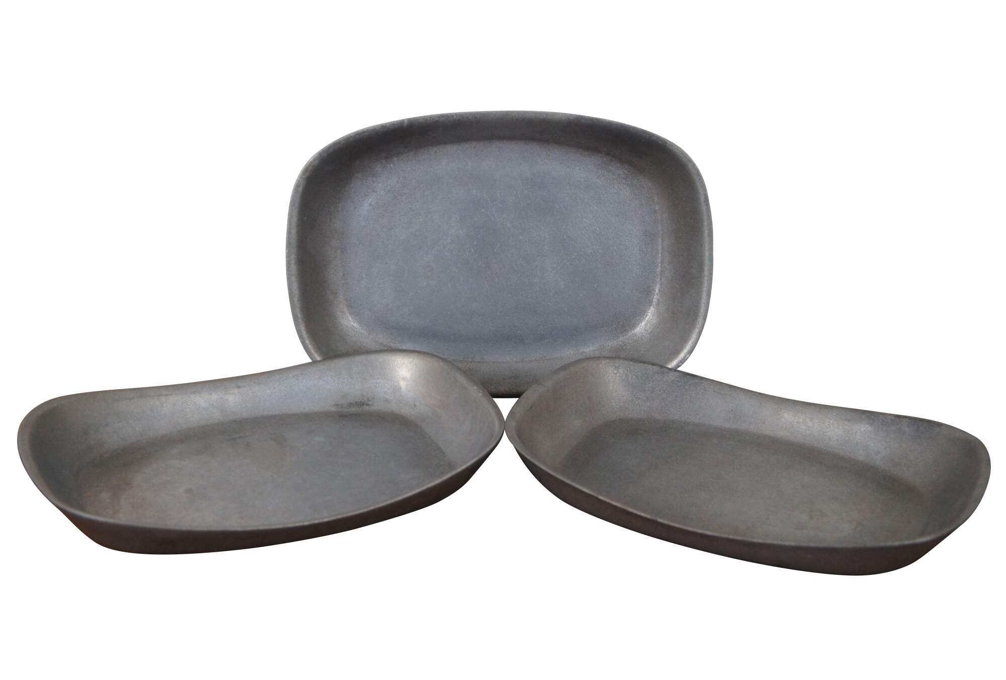 Set of three Wilton Armetale rectangular pewter salad plates or trenchers.