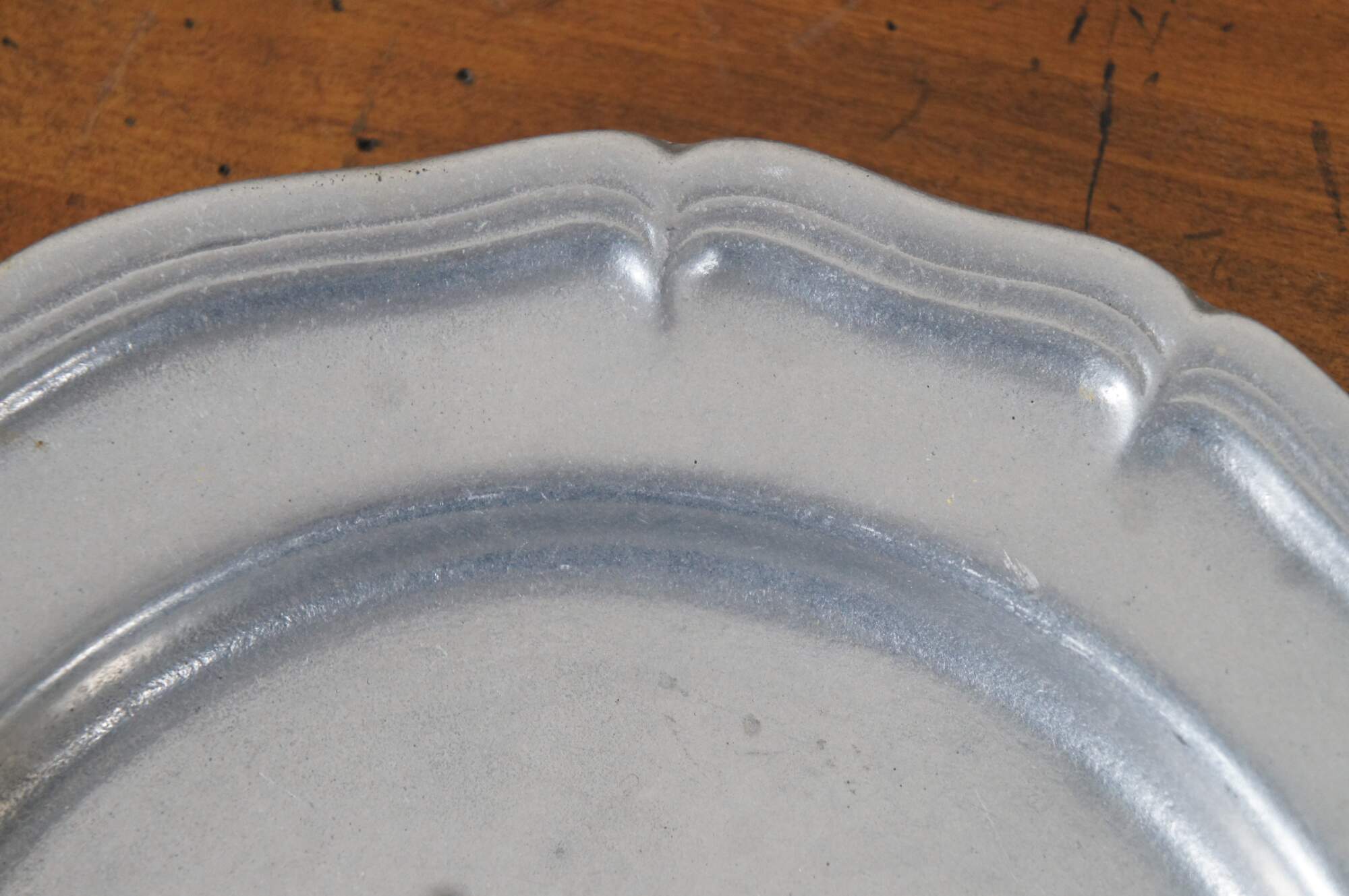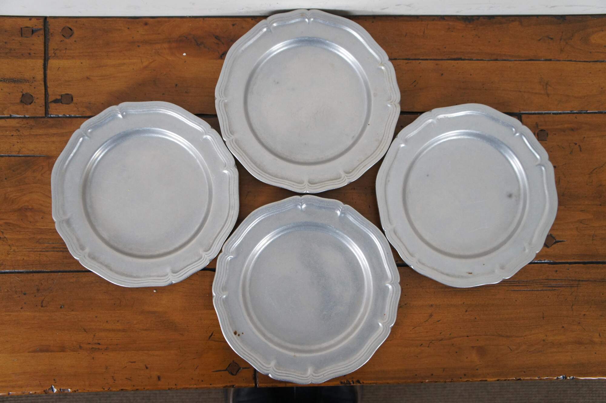 Set of fifteen Wilton Armetale Queen Anne Collection dinner, salad, and bread size pewter plates.