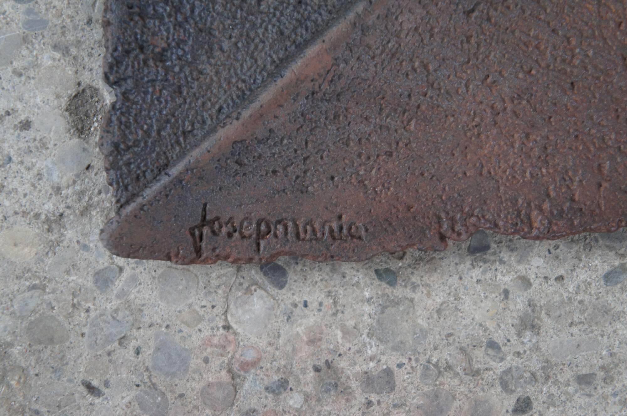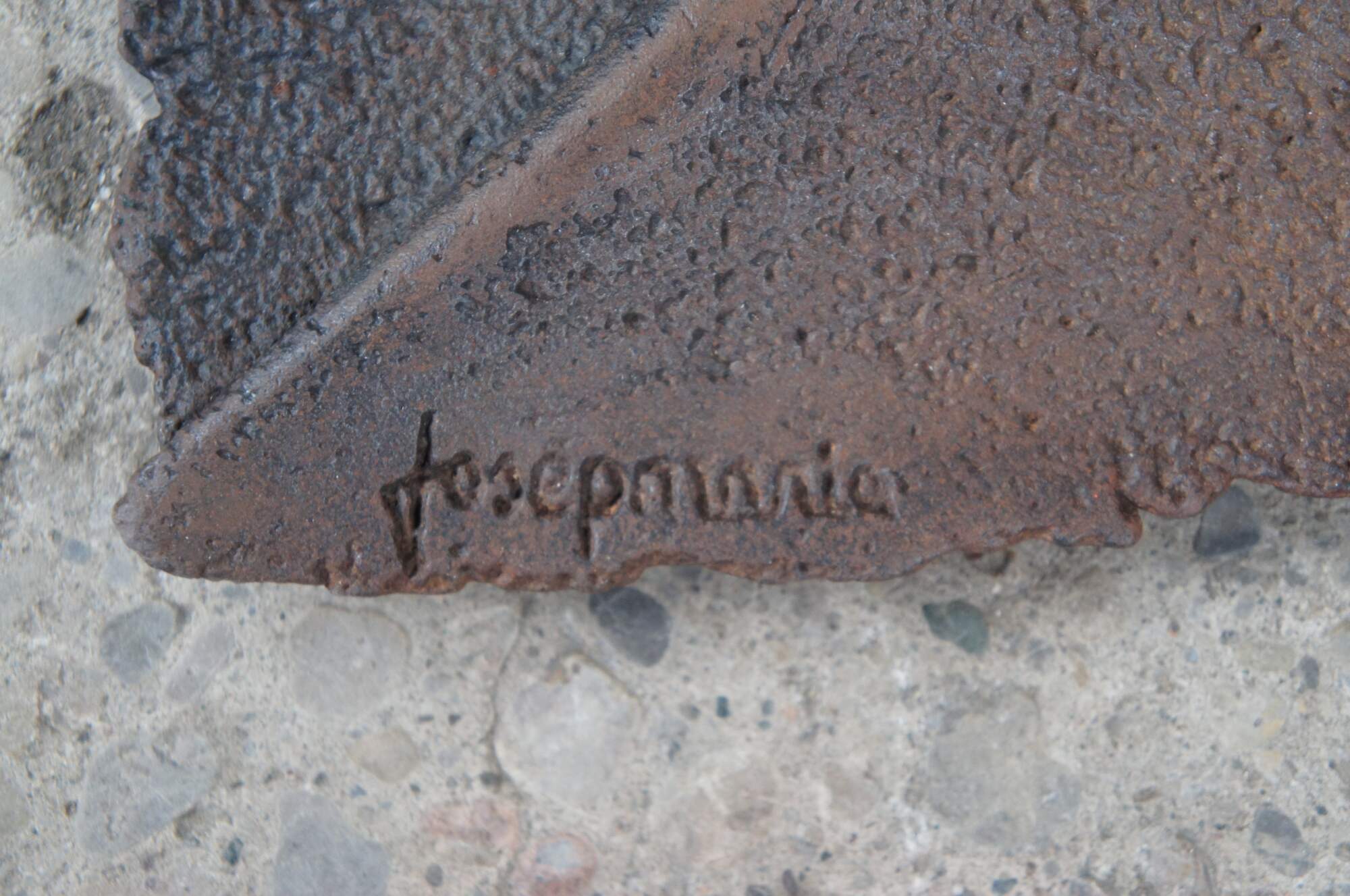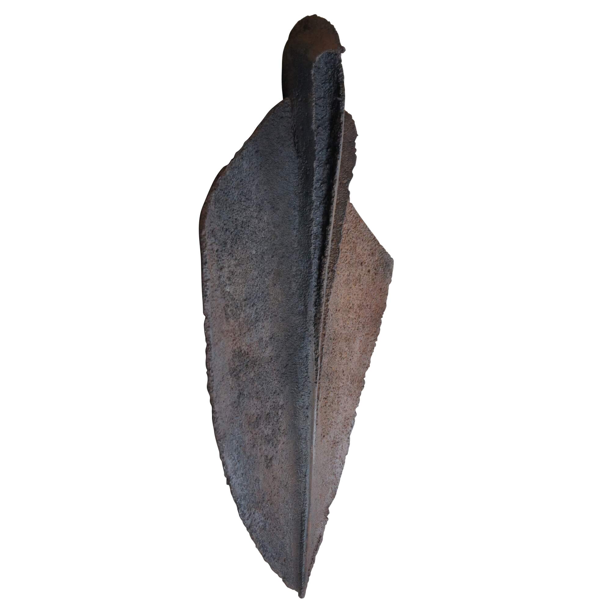 An Impressive Cast Iron wall hanging sculpture by Josep Maria Subirachs, circa 1960s. Reminiscent in form to an arrowhead or primitive blade. Josep incorporated grattage leaving the surface rough and jagged. Signed along lower edge. From the private collection of Vincent and Elana Bolling. The Bollings were philanthropists and advocates for the performing and visual arts.
