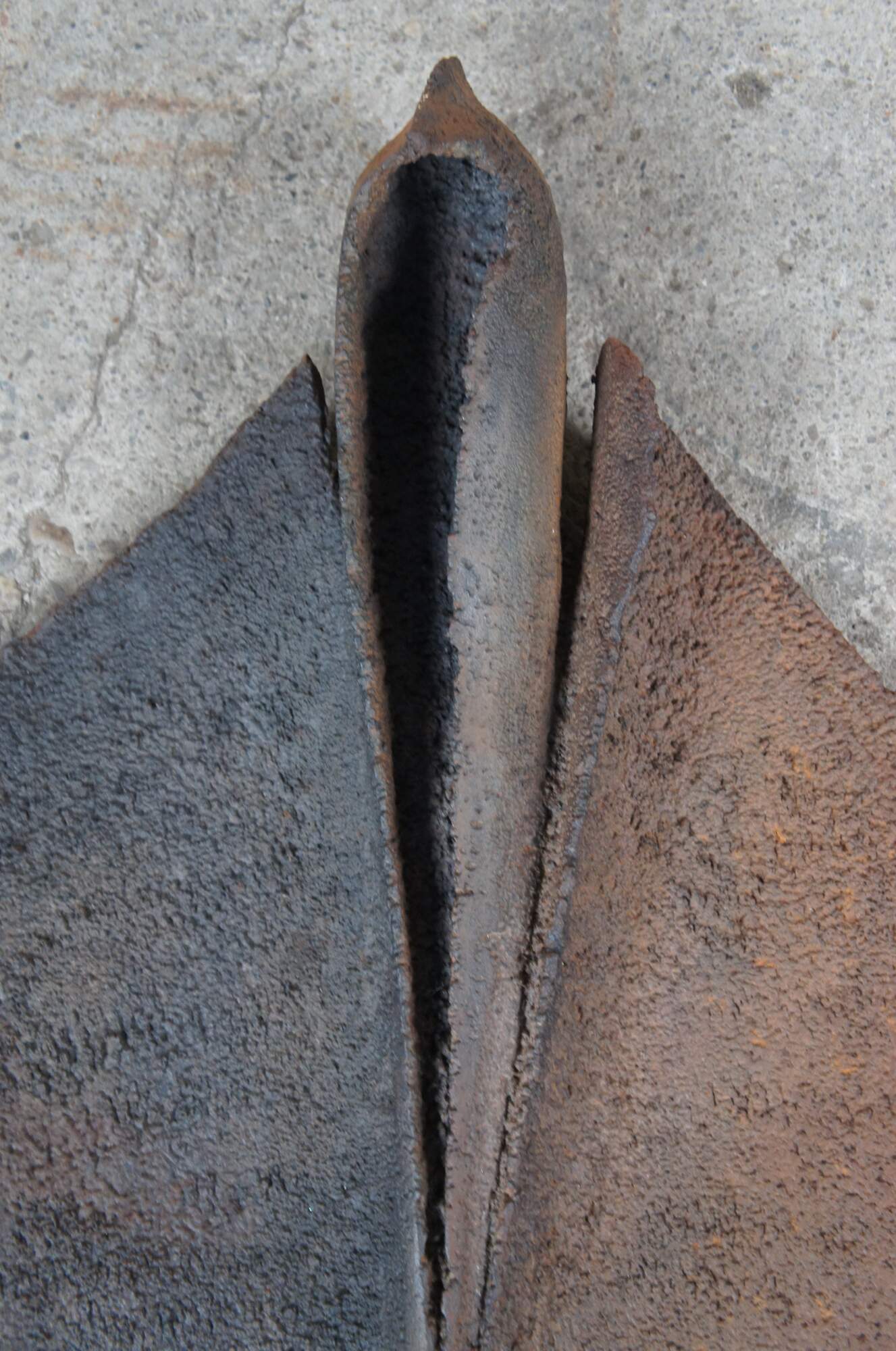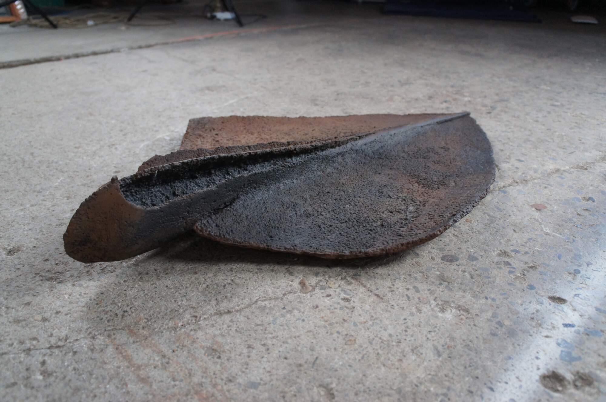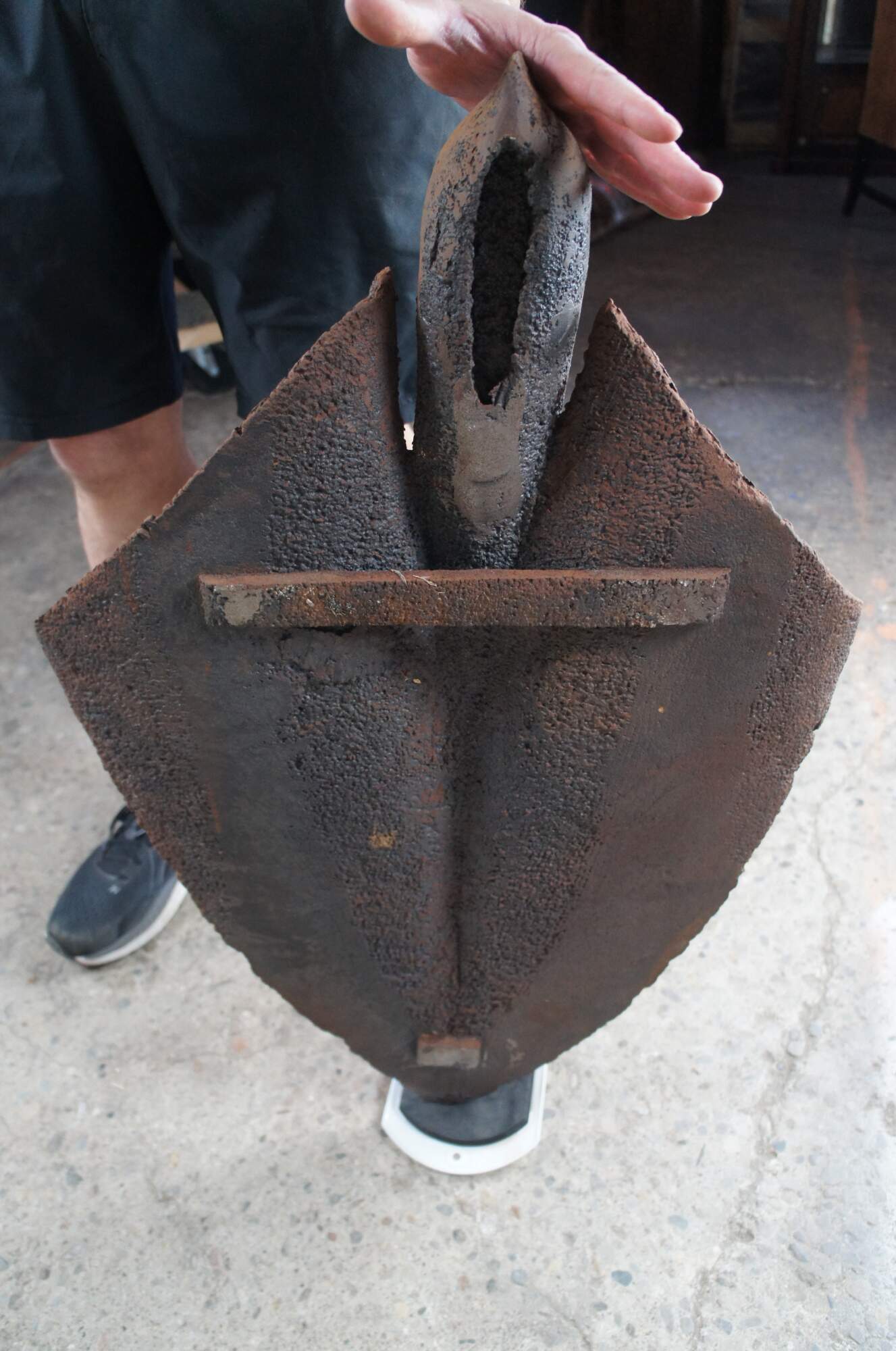 An Impressive Cast Iron wall hanging sculpture by Josep Maria Subirachs, circa 1960s. Reminiscent in form to an arrowhead or primitive blade. Josep incorporated grattage leaving the surface rough and jagged. Signed along lower edge. From the private collection of Vincent and Elana Bolling. The Bollings were philanthropists and advocates for the performing and visual arts.