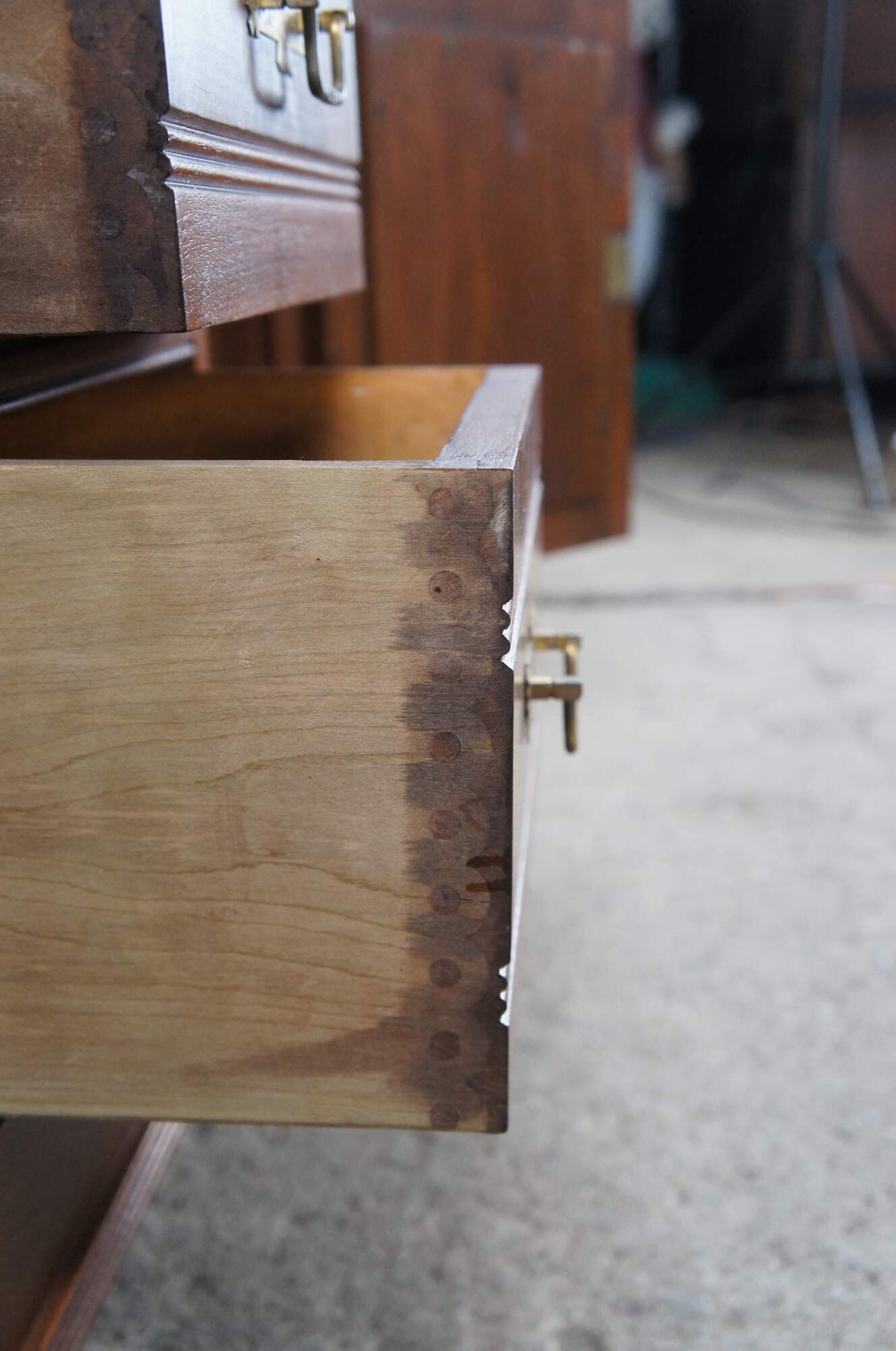 The Knapp joint was developed during the late Victoria Era in post Civil War United States. Patented by Charles Knapp of Waterloo, WI in 1867, the Knapp Joint was a huge breakthrough for the furniture industry; machines called routers made circular cuts in wood far quicker than by hand. The Knapp Joint is particularly unique to furniture as it was only used from 1870 until 1900. It is also referred to as the Pin and Cove Drawer.