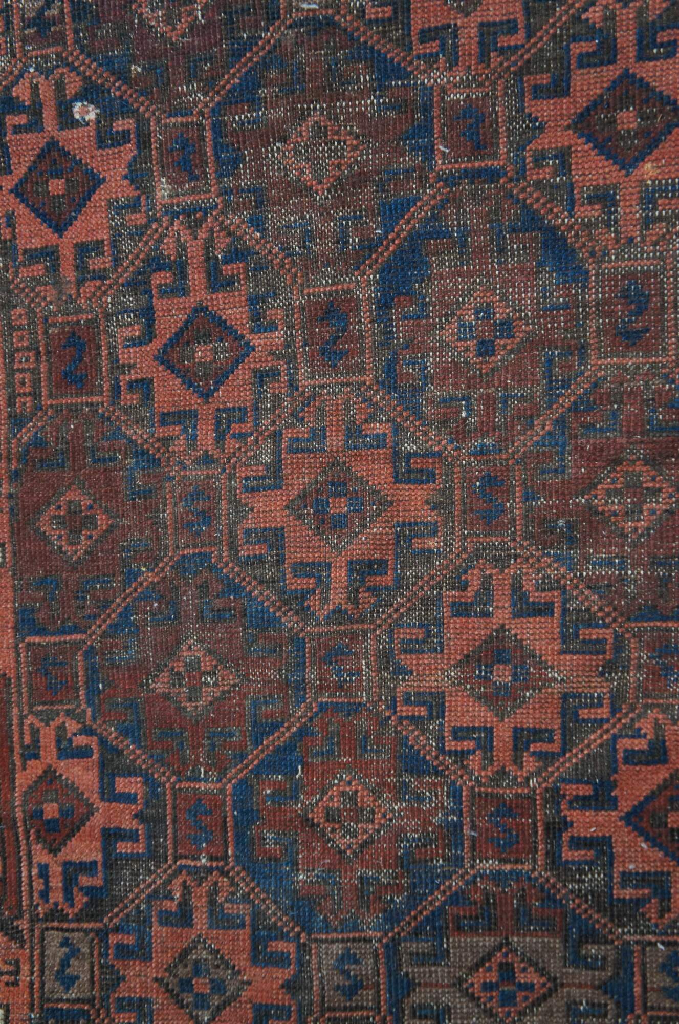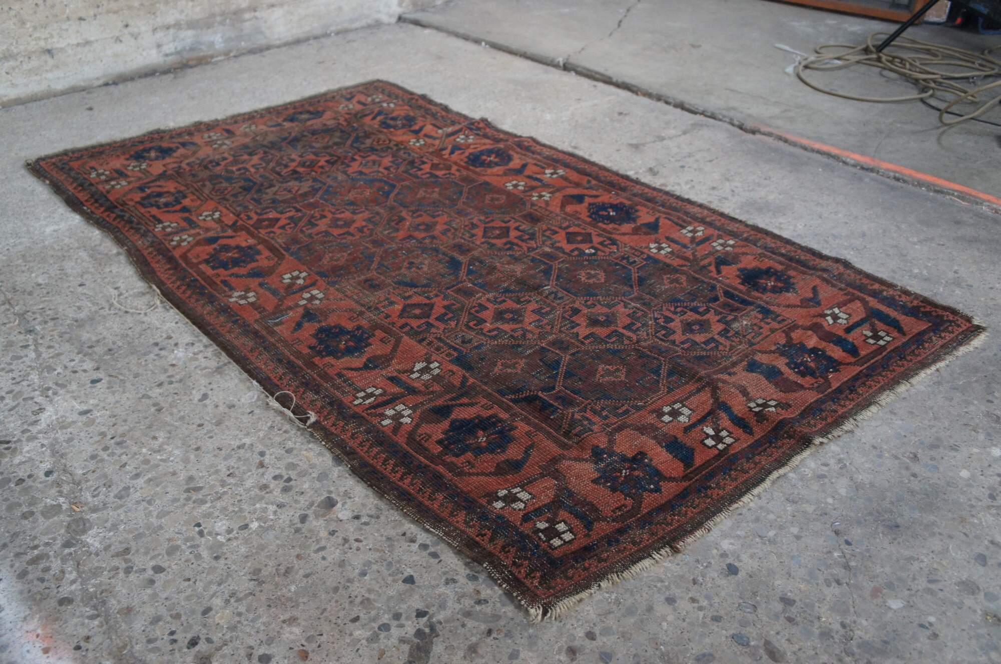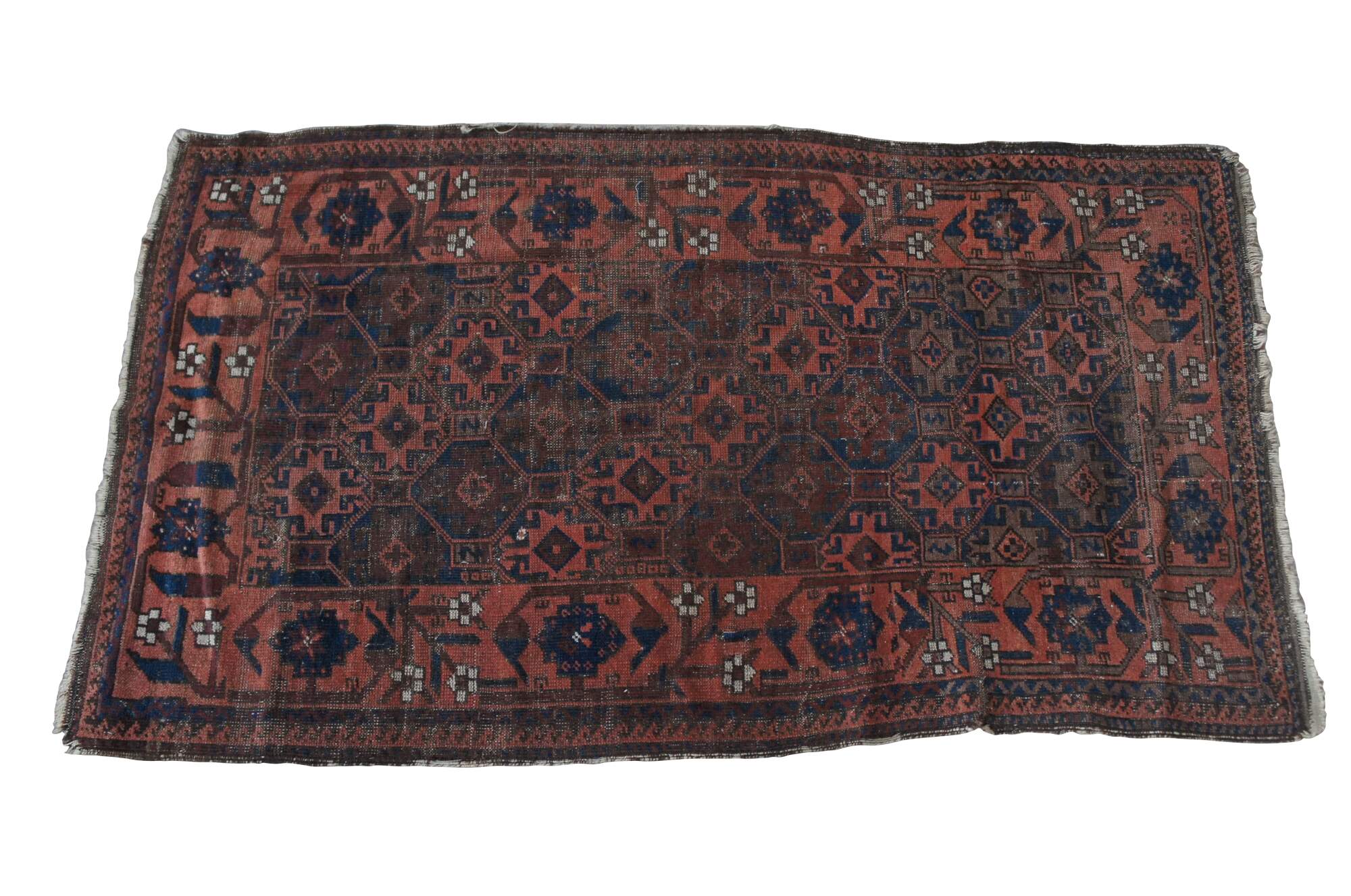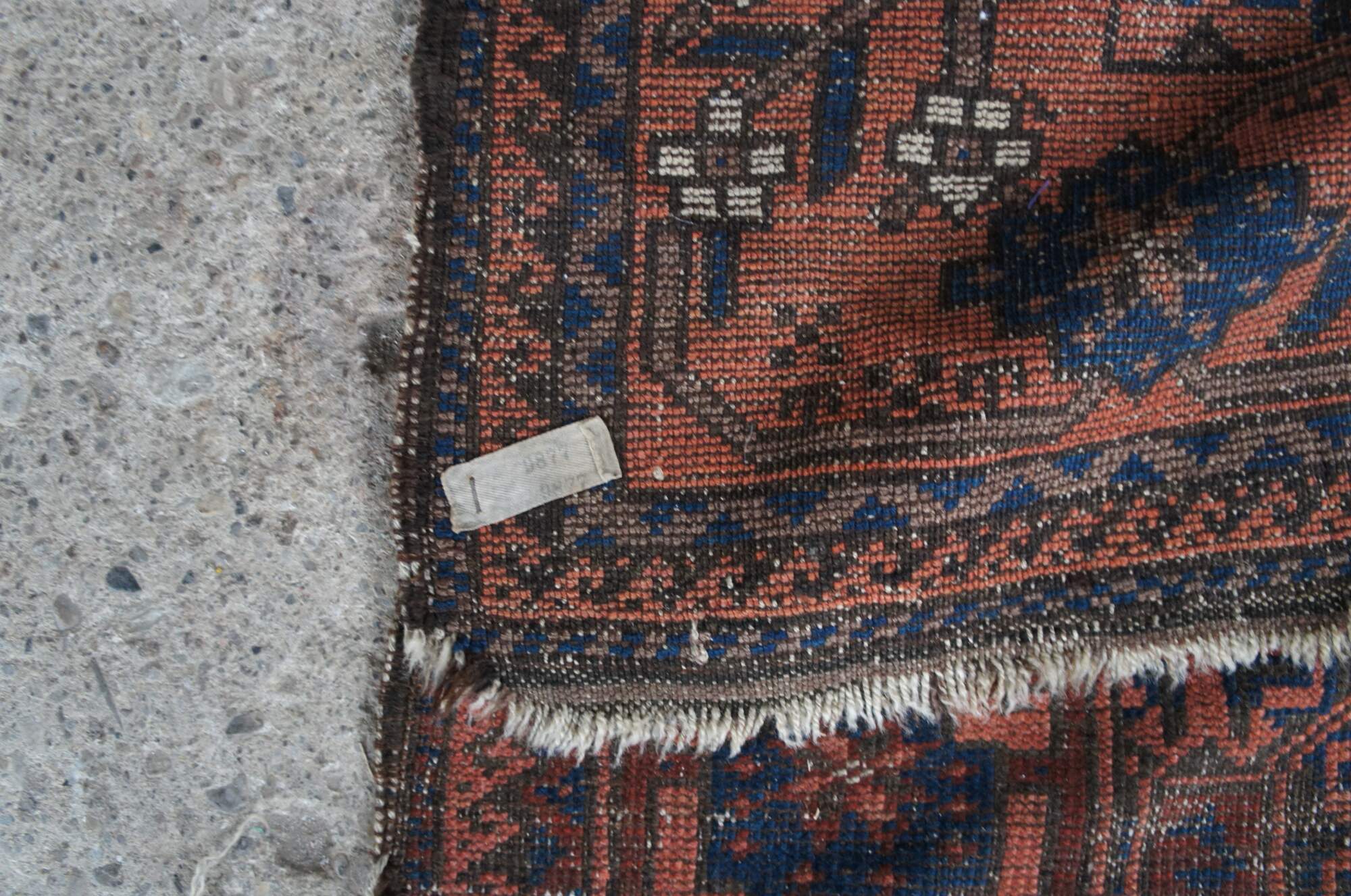Red & Blue hand Woven wool prayer rug. Features floral accents and geometric medallions. 3 x 5