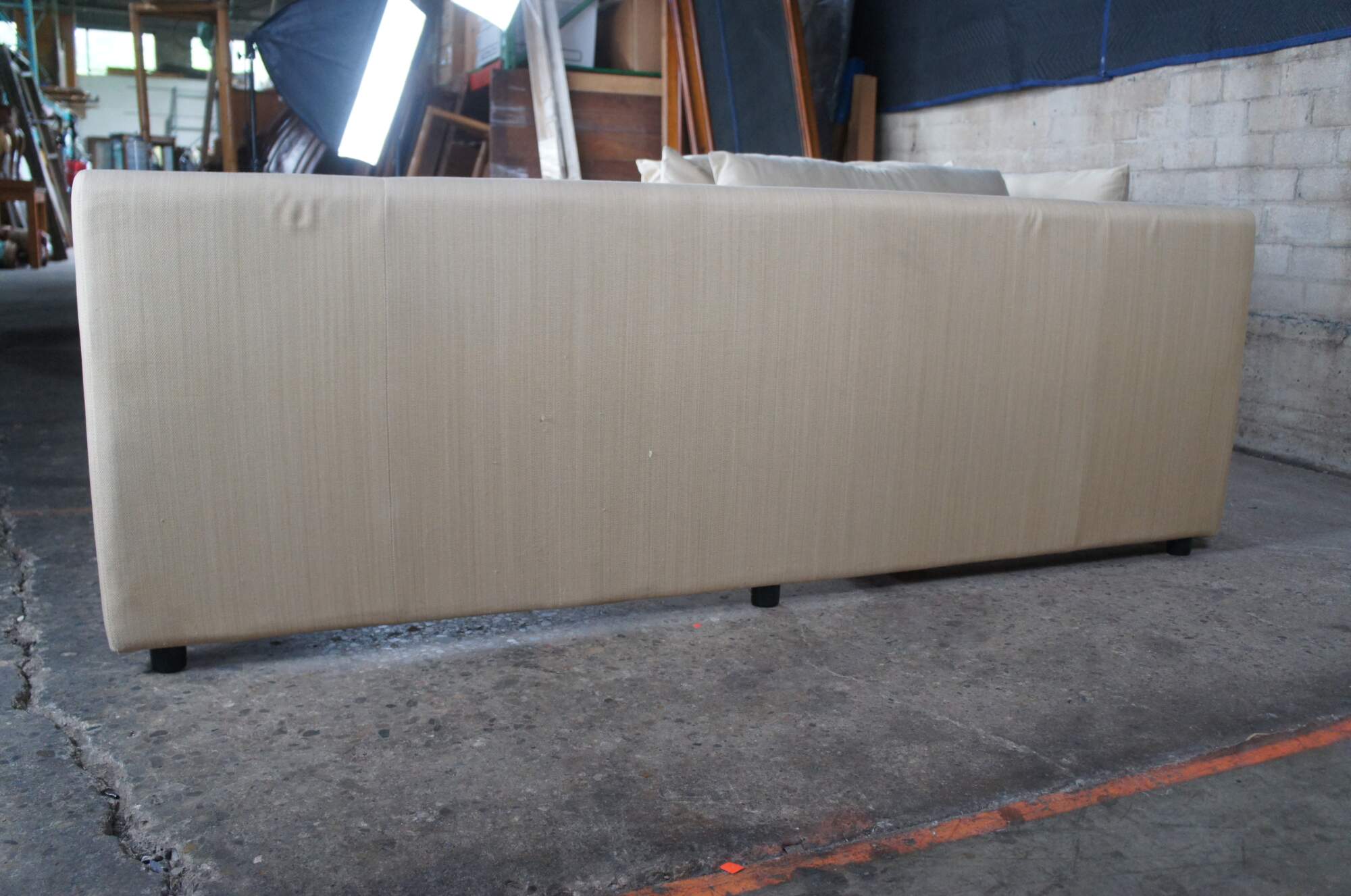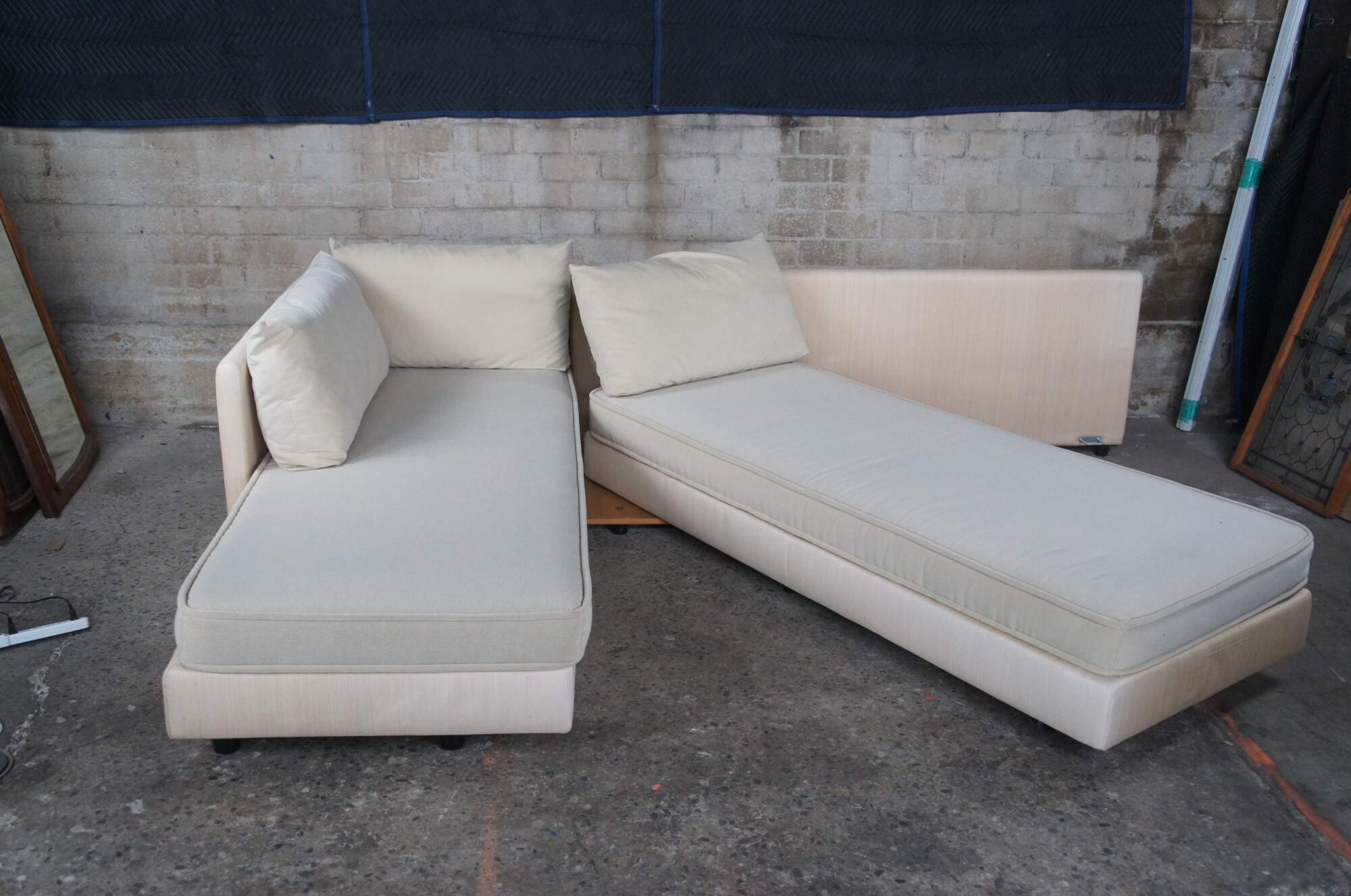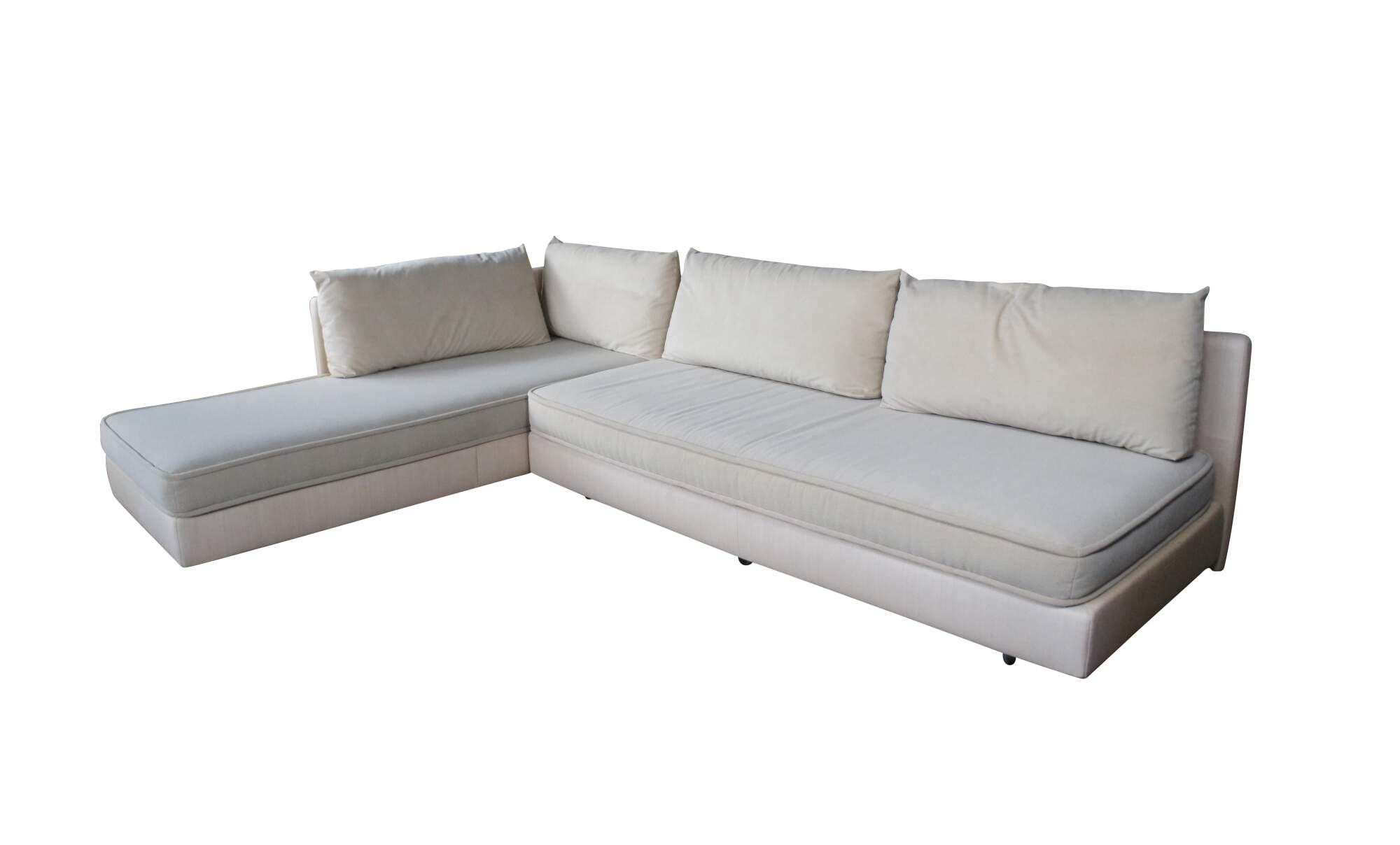 Ligne Roset Nomade II convertible sofa. Ligne Roset is a family business known for its unabashedly modern approach to design, an approach exemplified by this gorgeous sofa. Tastefully covered in a cotton-and-linen blend fabric. The sofa has a smooth feel and timeless details, The back side is positioned on a track allowing it to swivel out to create a queen bed or it can be used as two singles.