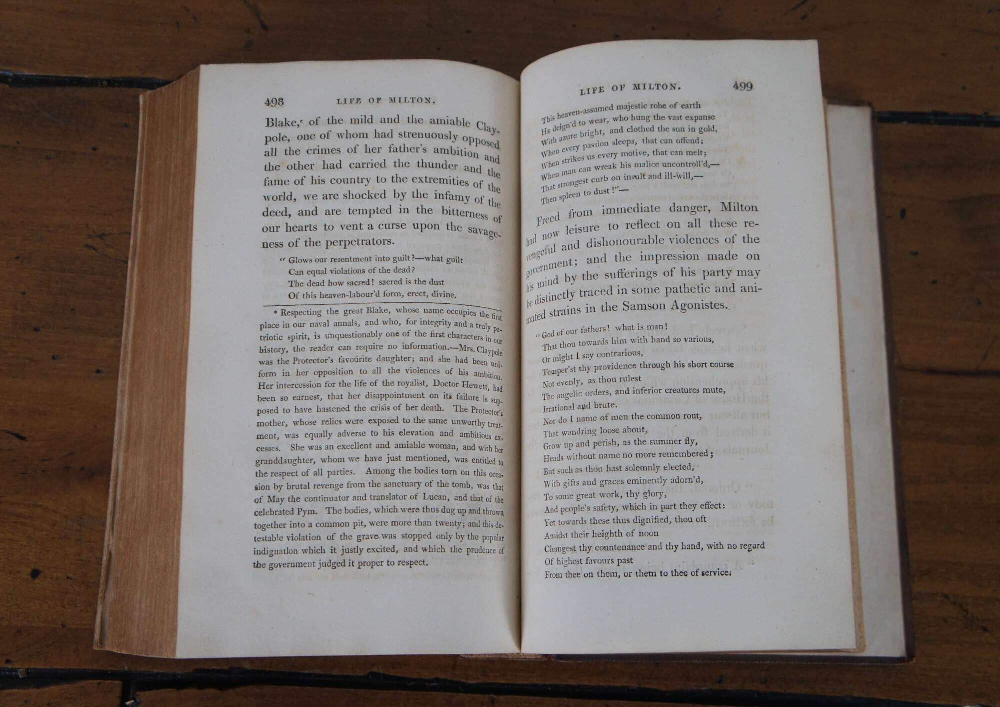 Antique Georgian era brown leather book titled “The Life of John Milton” by Charles Symmons, D.D. of Jesus College, Oxford – Second edition – printed by T. Bensley, London, for Nichols and Son, et al, 1810. Name of original owner written inside front cover.