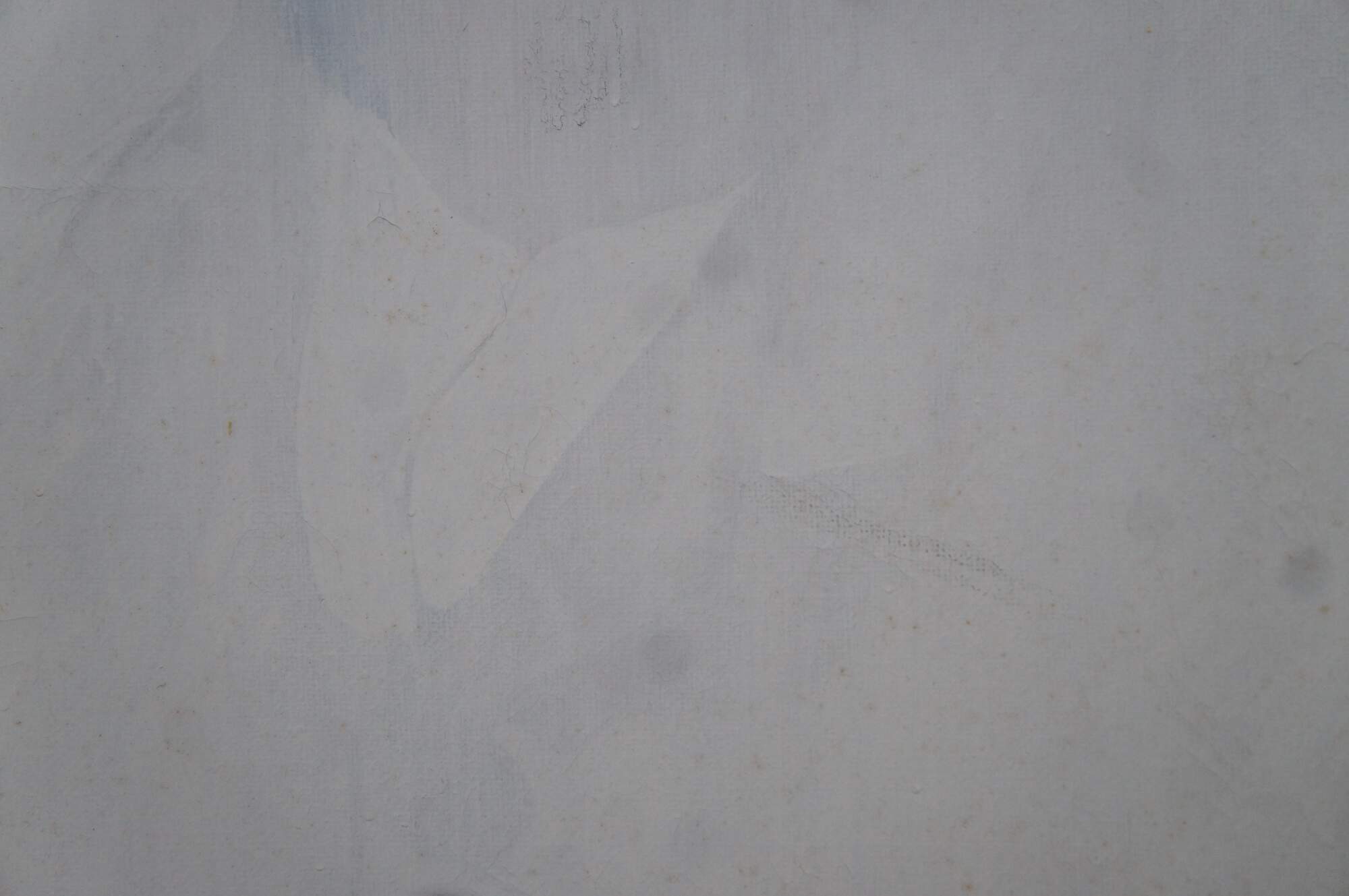 A unique modern portrait painting on burlap of Vincent van Gogh, with a white wash finish / overlay. Signed and dated by artist on verso.