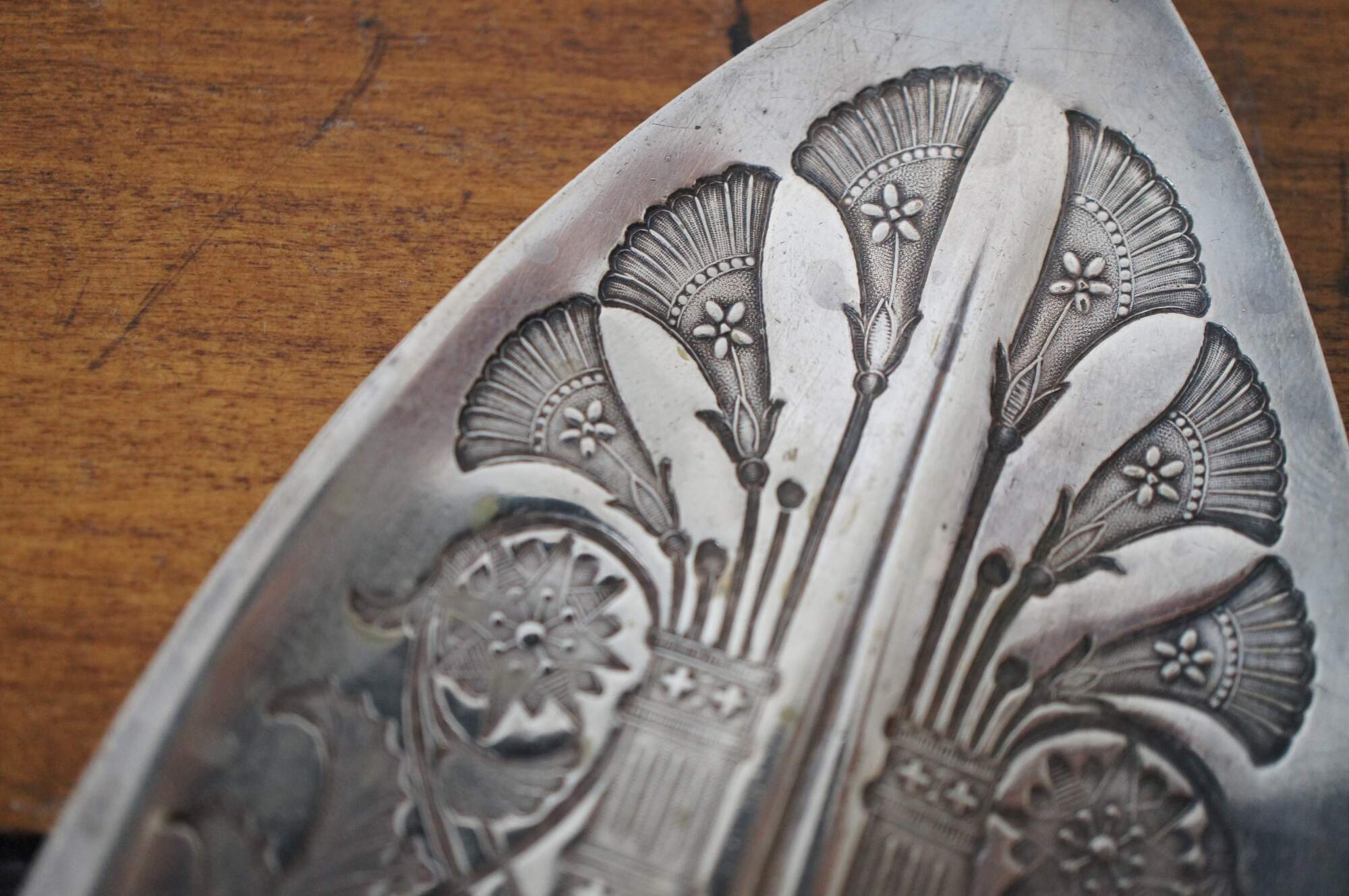 Antique Rogers & Bro A1 silver plate cake server elegantly etched in the Egyptian Revival inspired Chicago / Newport pattern (first produced in 1879). Monogrammed with the initials M.A.I.