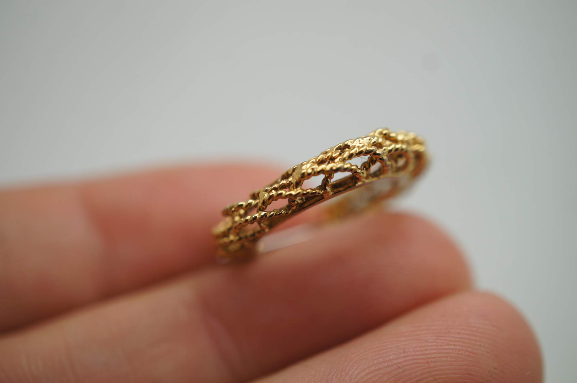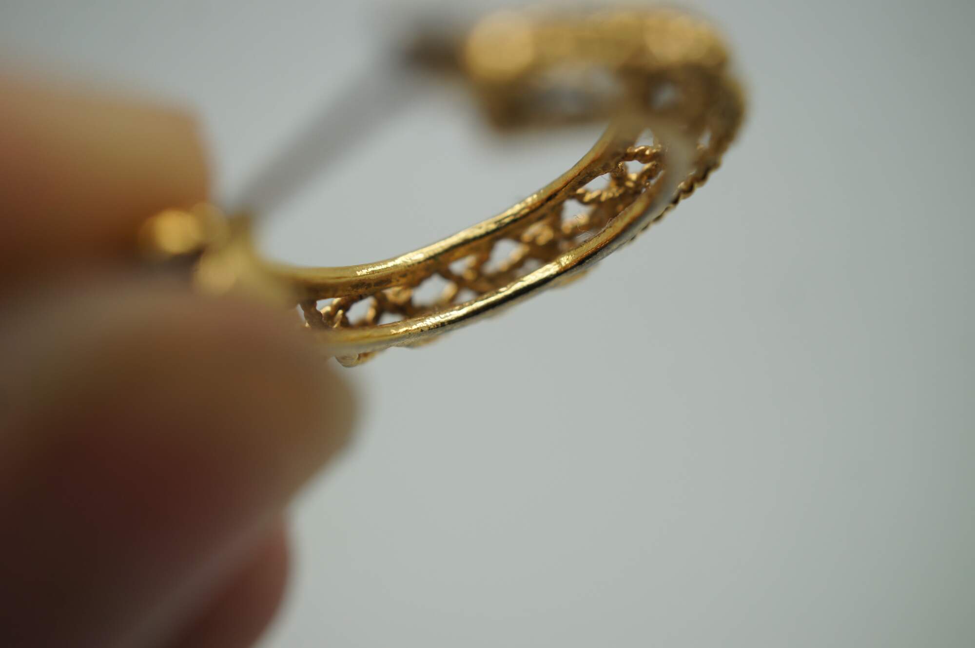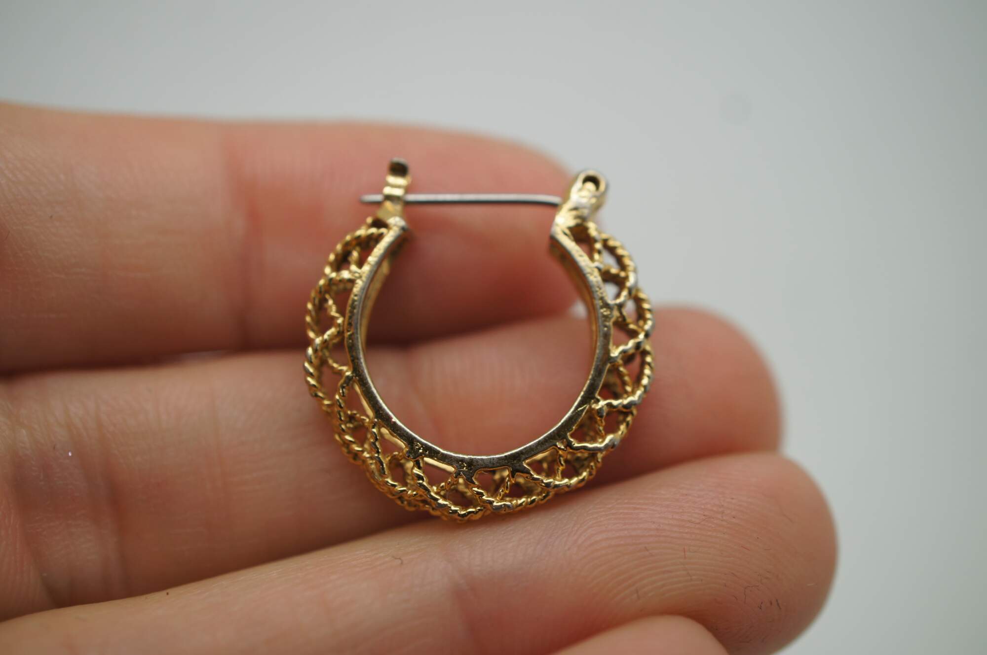 Vintage gilded metal braided rope twist filigree hoop earrings with hinged loop earring backs. No maker marks.