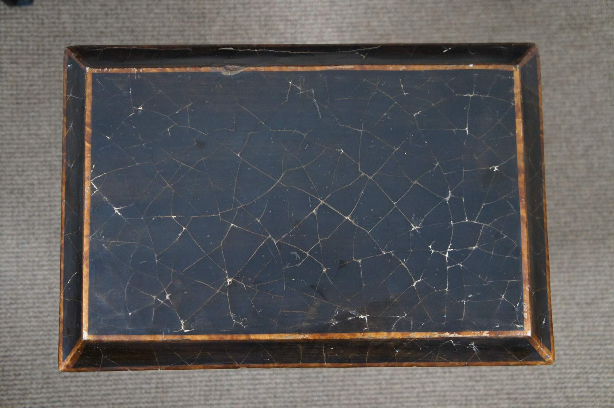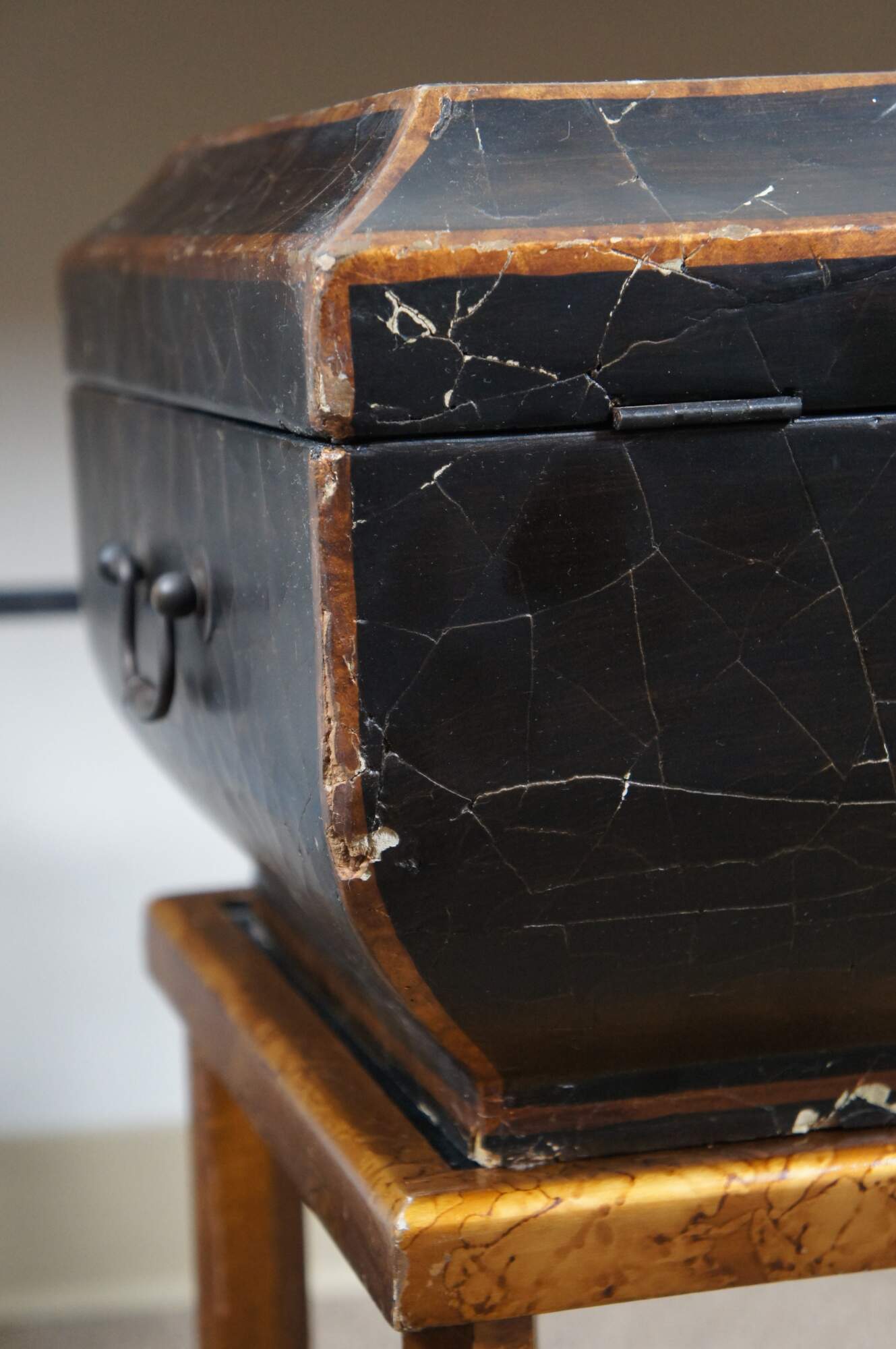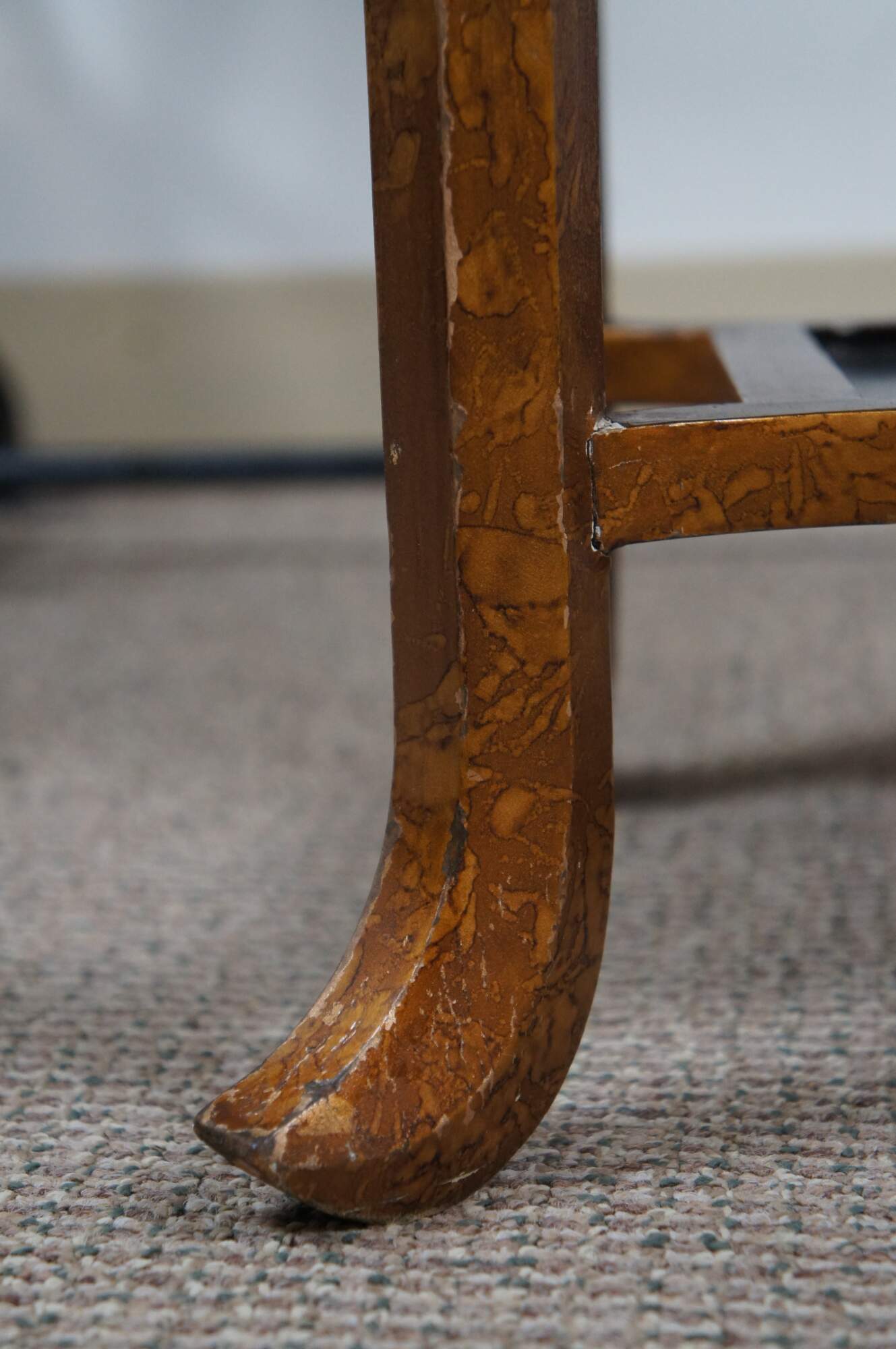 Late 20th century crackled black lacquer Chinoiserie style trunk / chest on a gold painted two tier stand / end table.