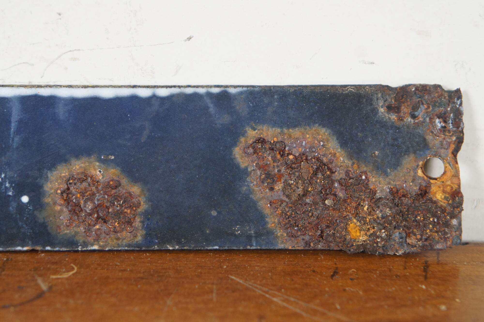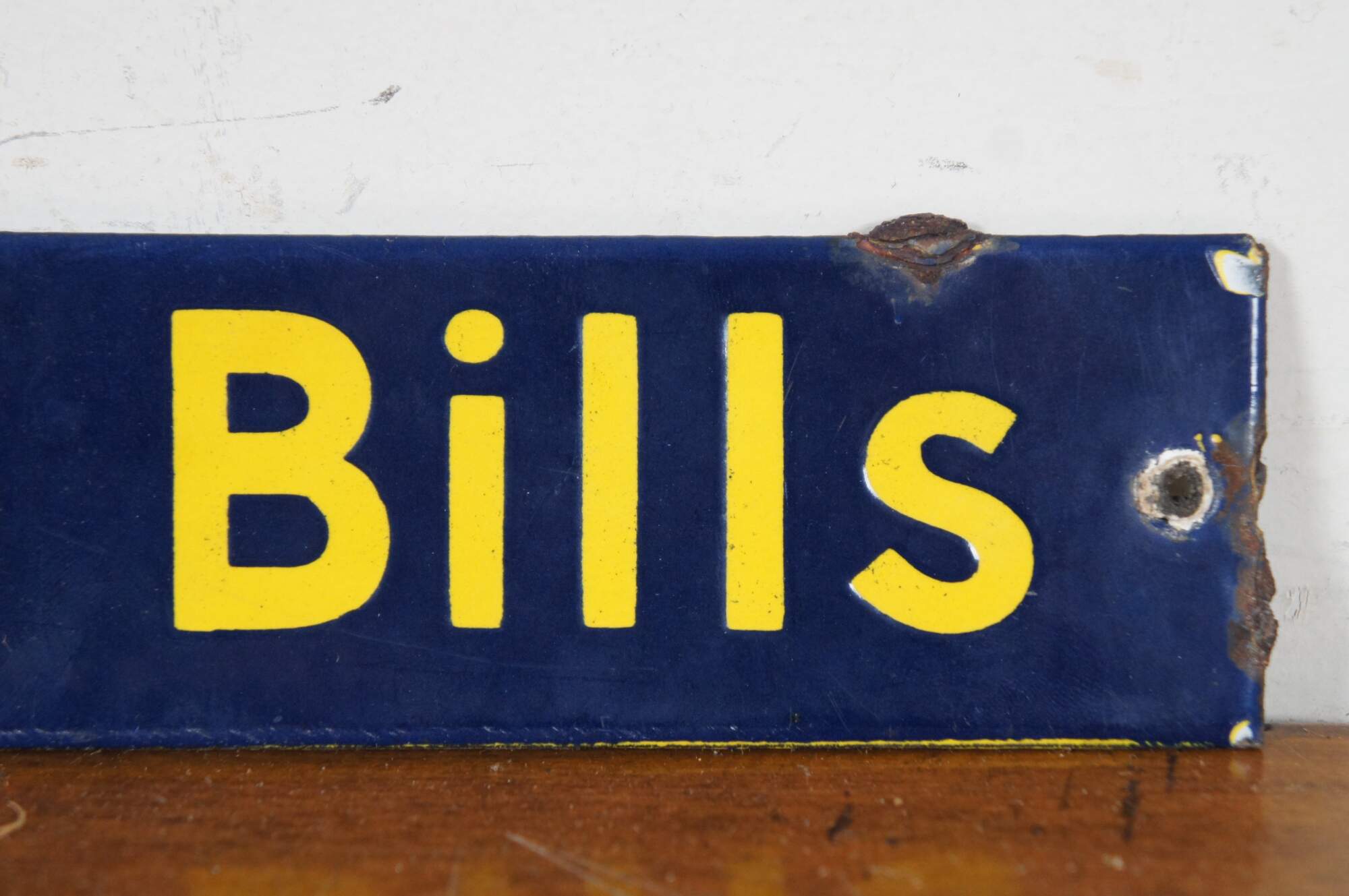 Vintage Post No Bills metal sign finished with navy blue enamel paint and yellow letters.