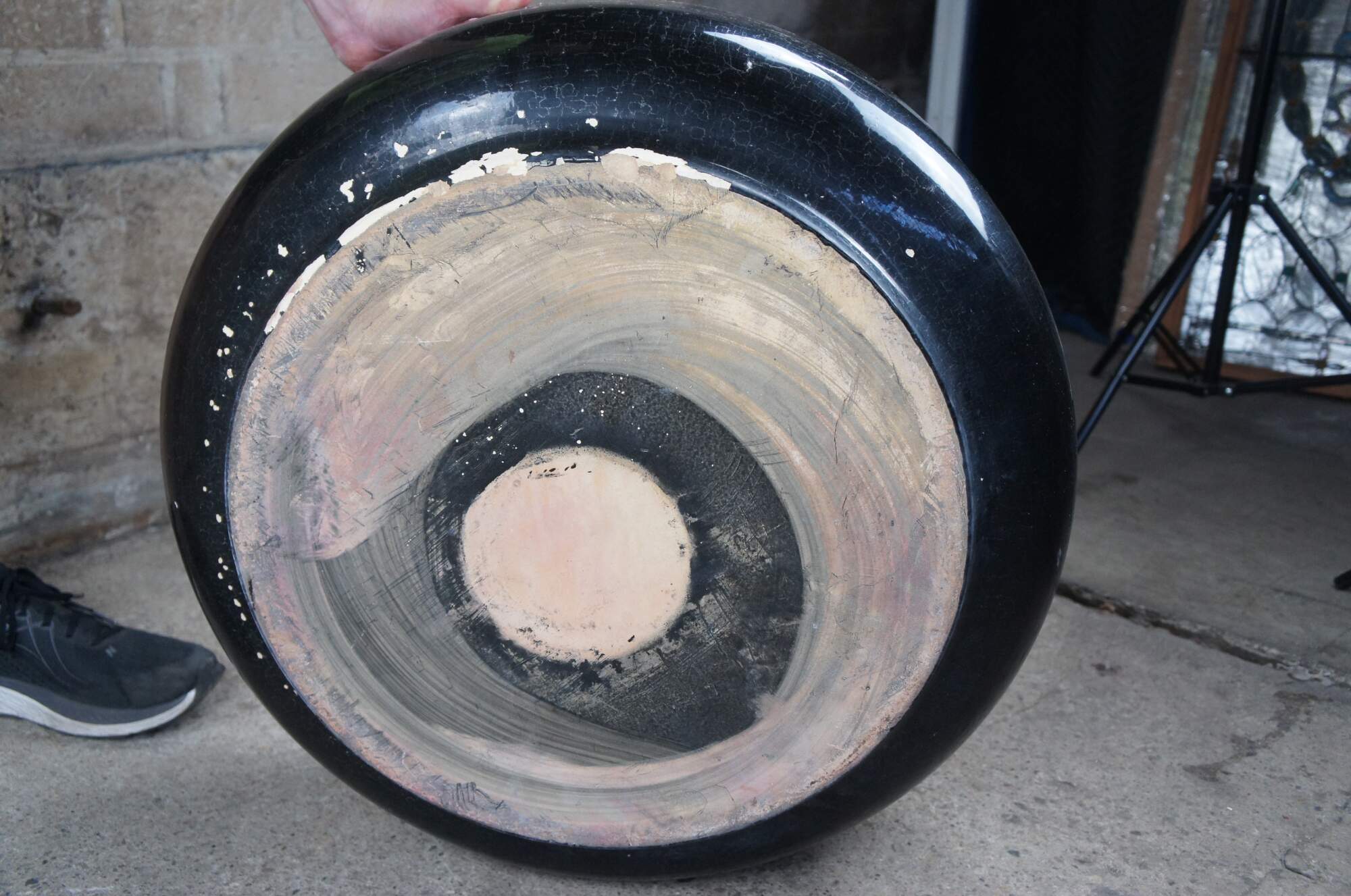 Mid century modern large round tire planter bowl by Gainey. Circa 1960s.