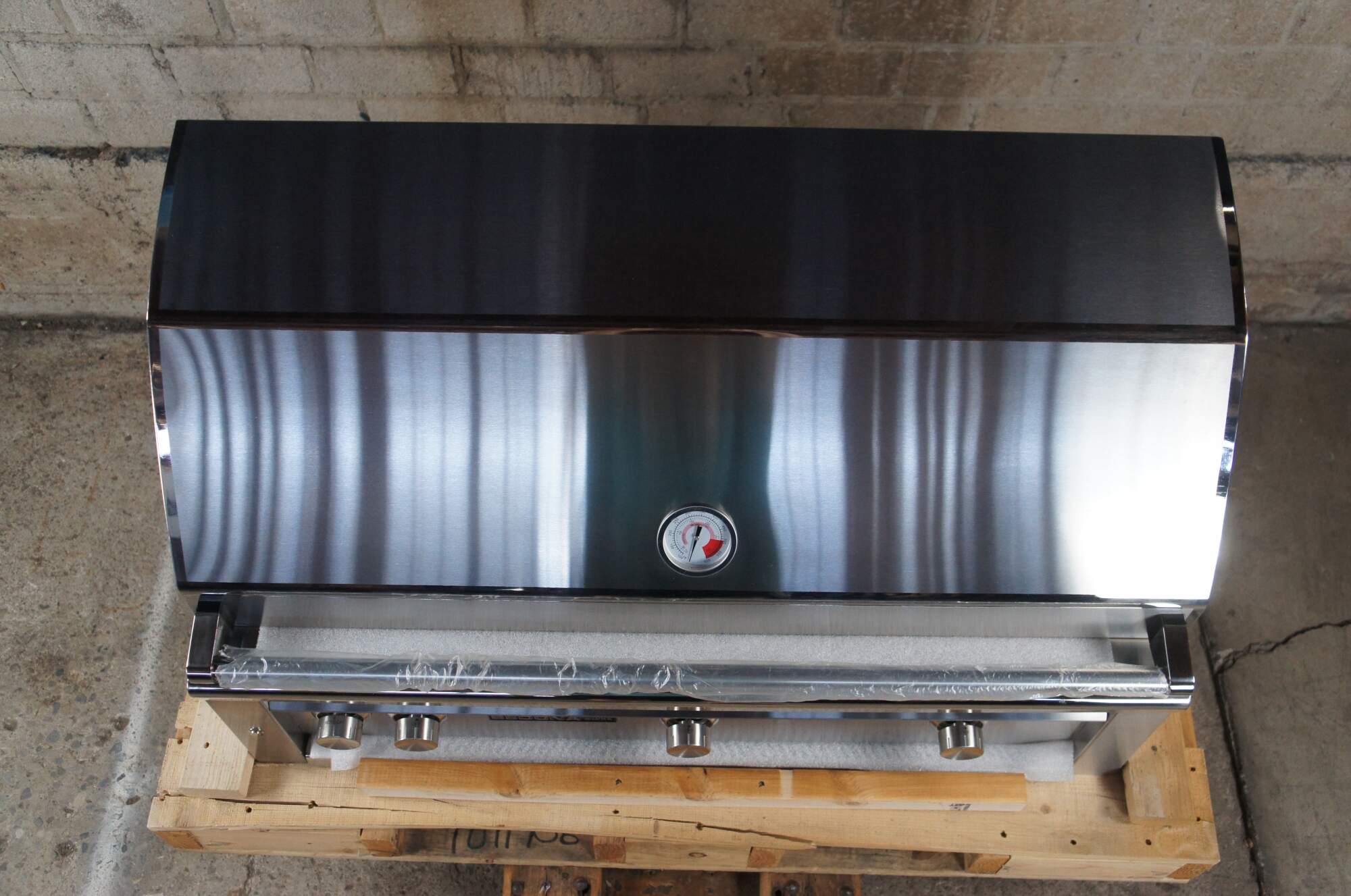 42 Inch Built-In Gas Grill with 83,000 BTU, 1049 sq. in. Cooking Surface, Independent Rotisserie Burner, LED and Halogen Illumination, Ceramic Briquettes and Stainless Steel Grilling Grates: Natural Gas or Propane. Circa 2016.