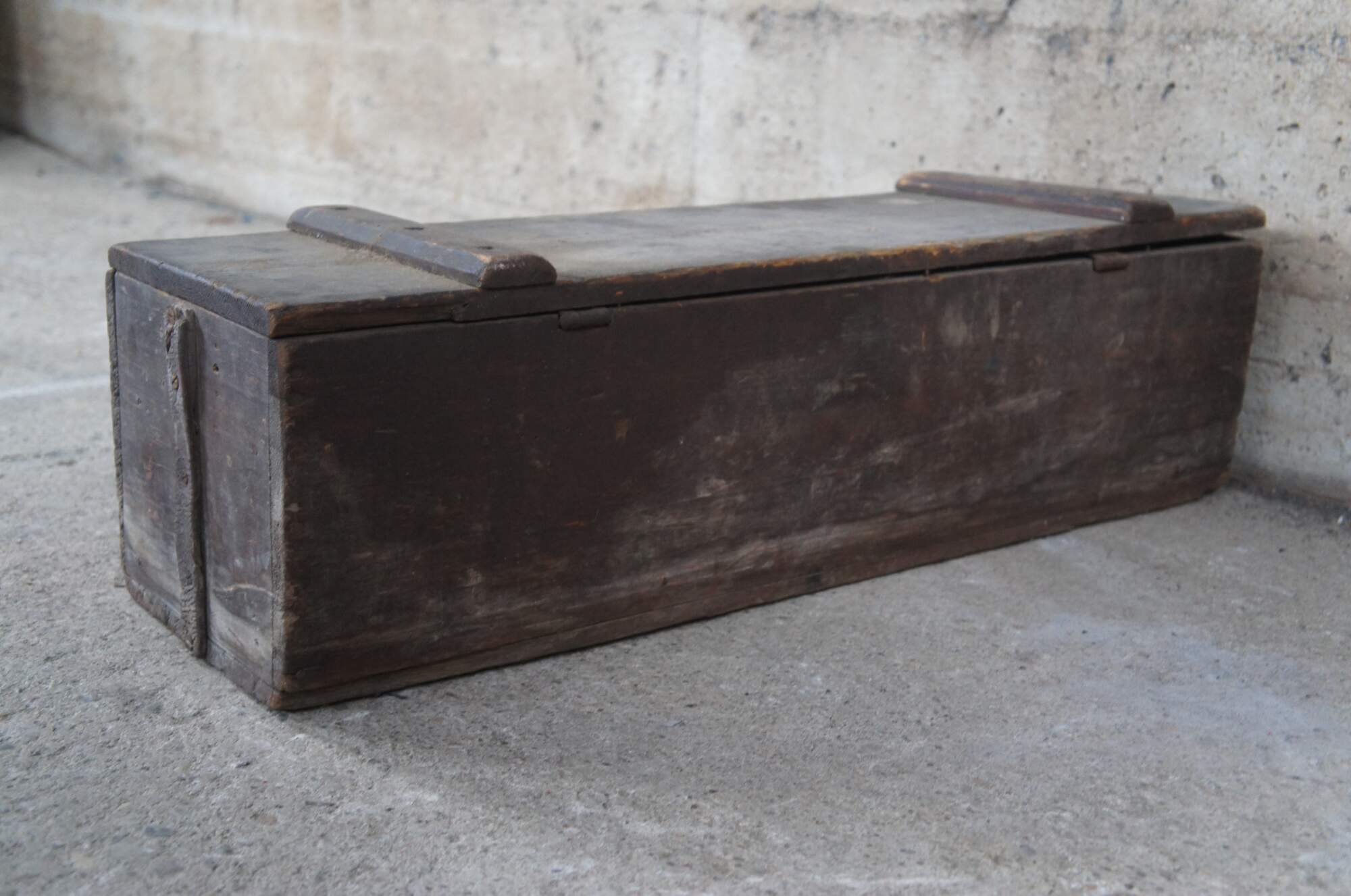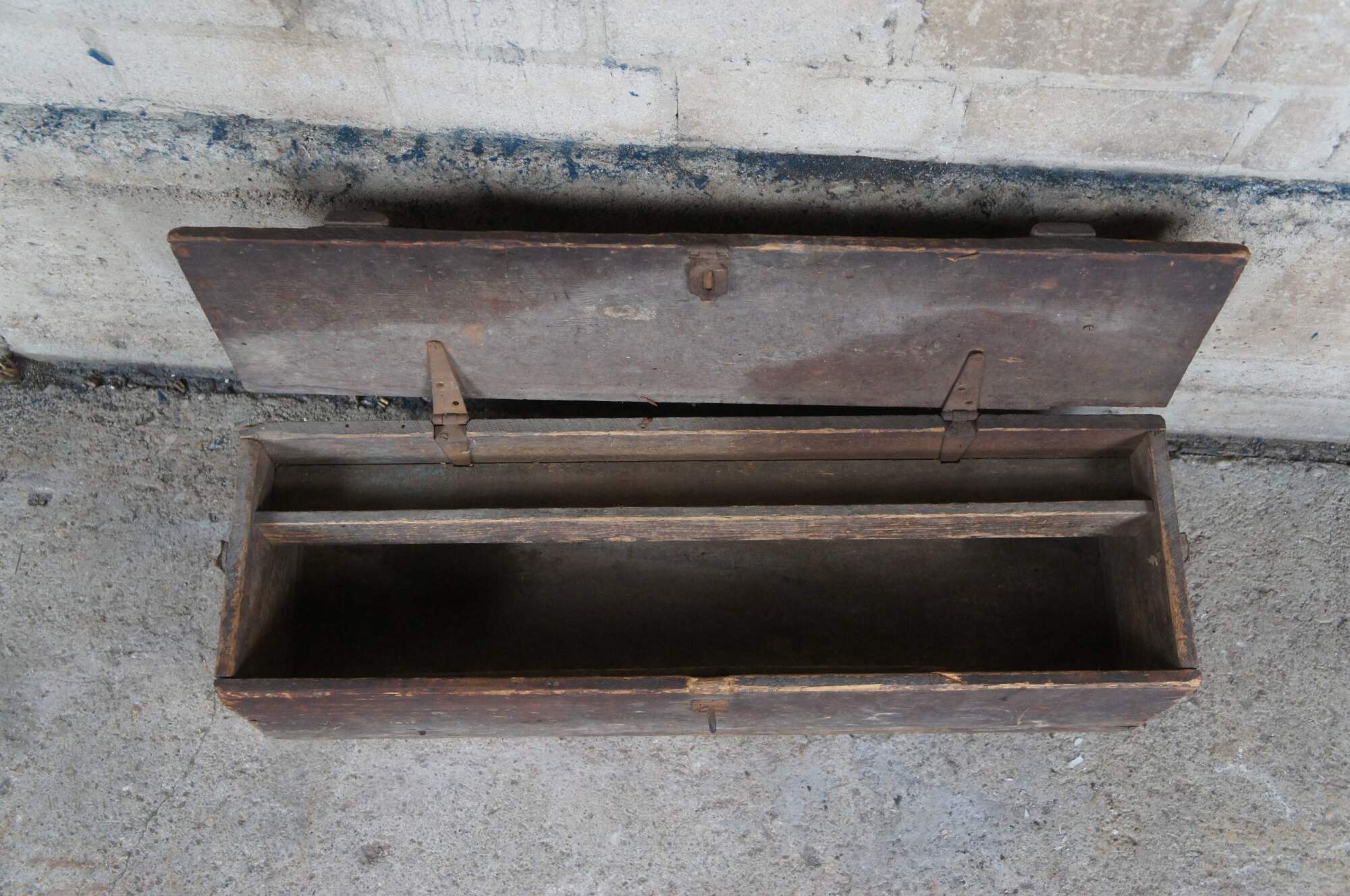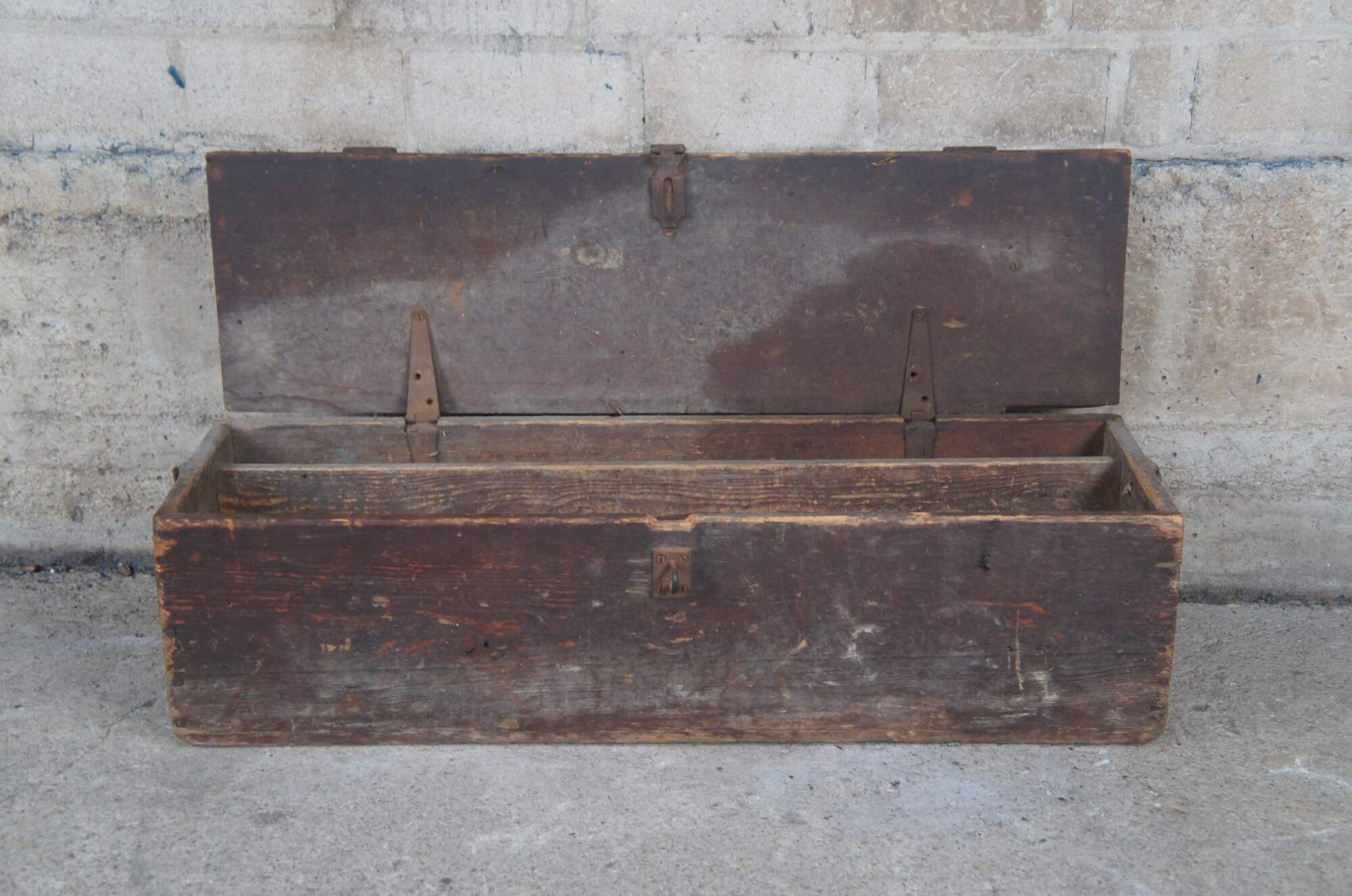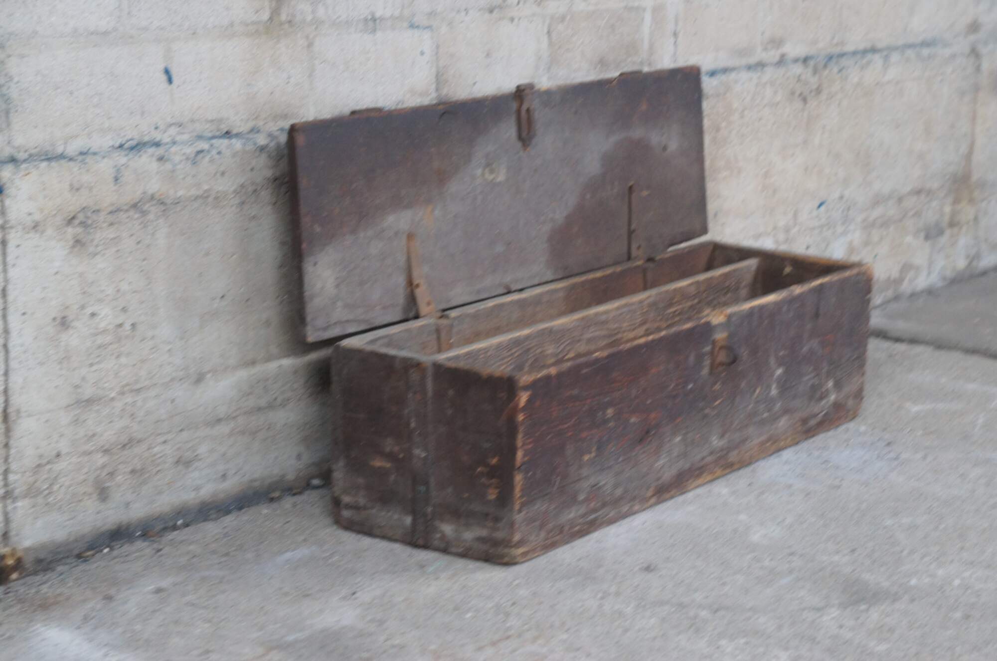 An antique tool box. Made from pine with iron hardware.
