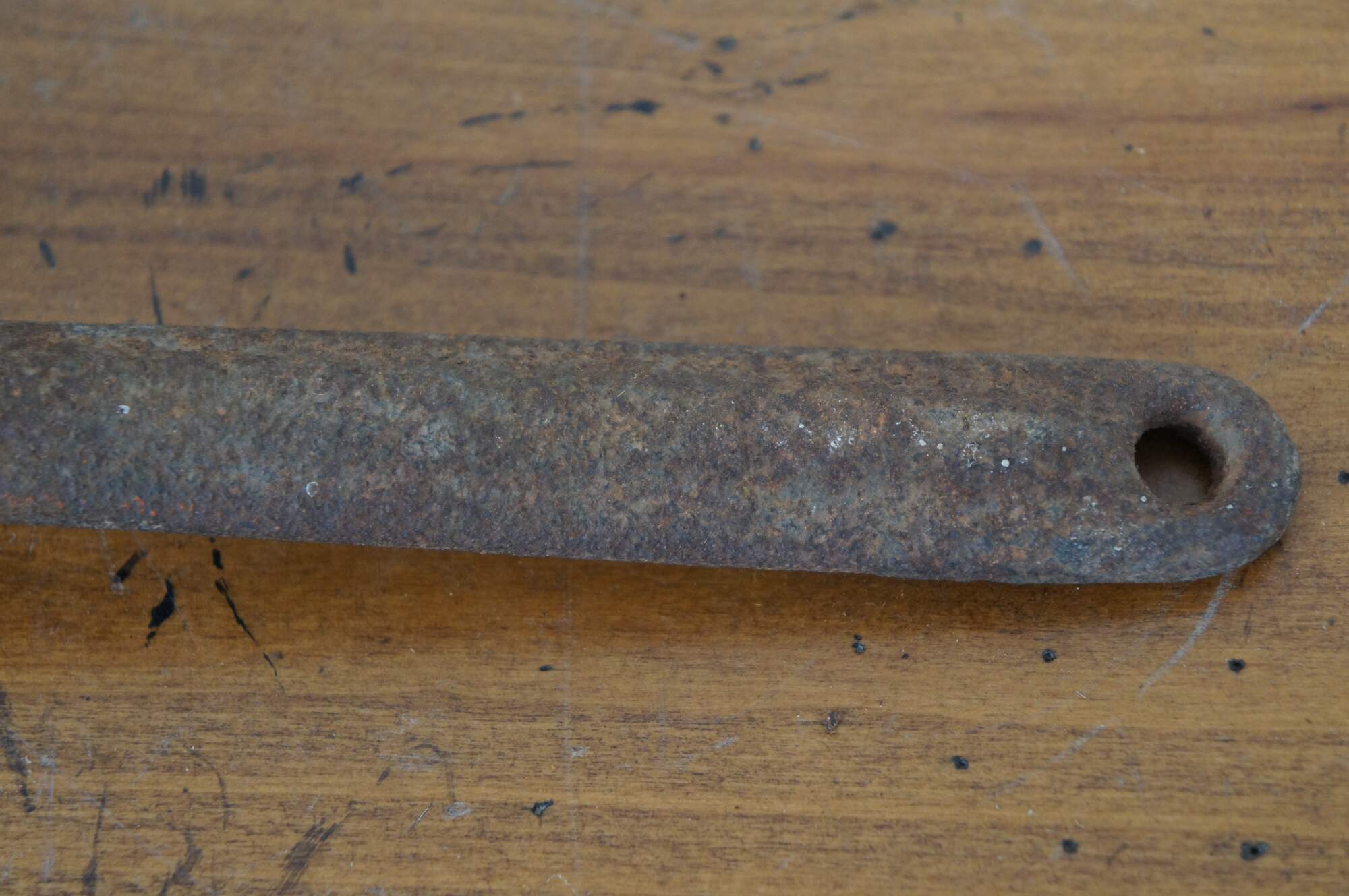 Antique cast iron lead casting / melting ladle with precision double pour spouts and hole in handle end for hanging.
