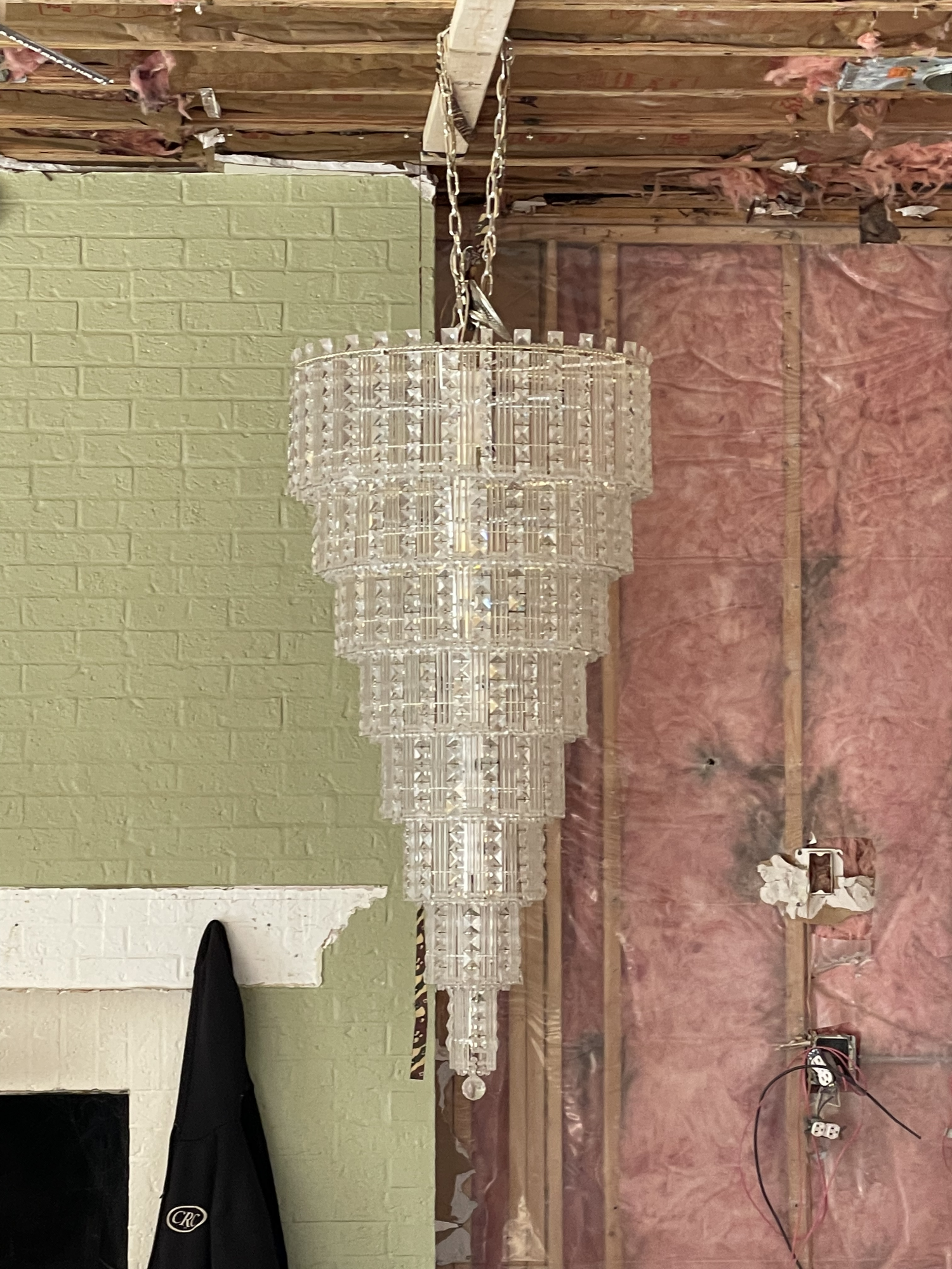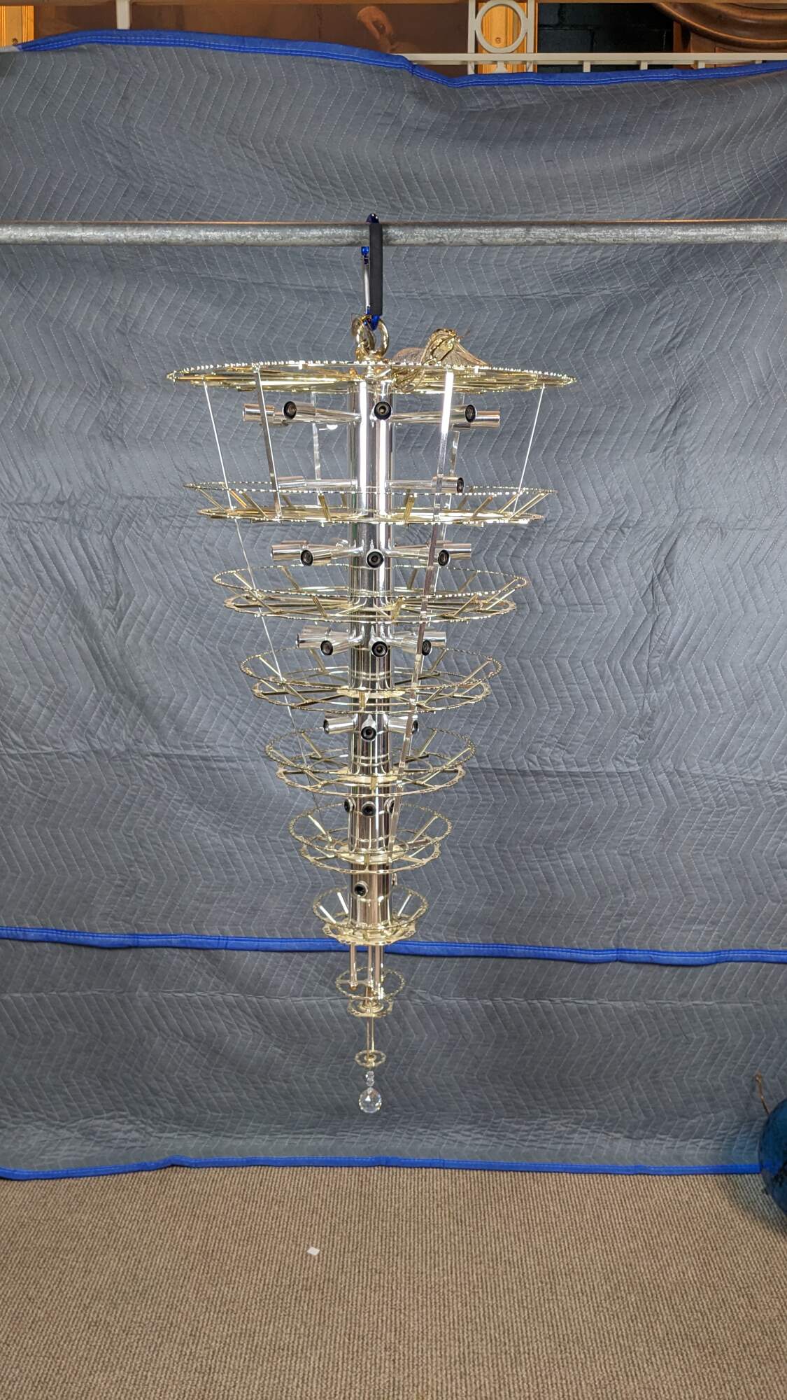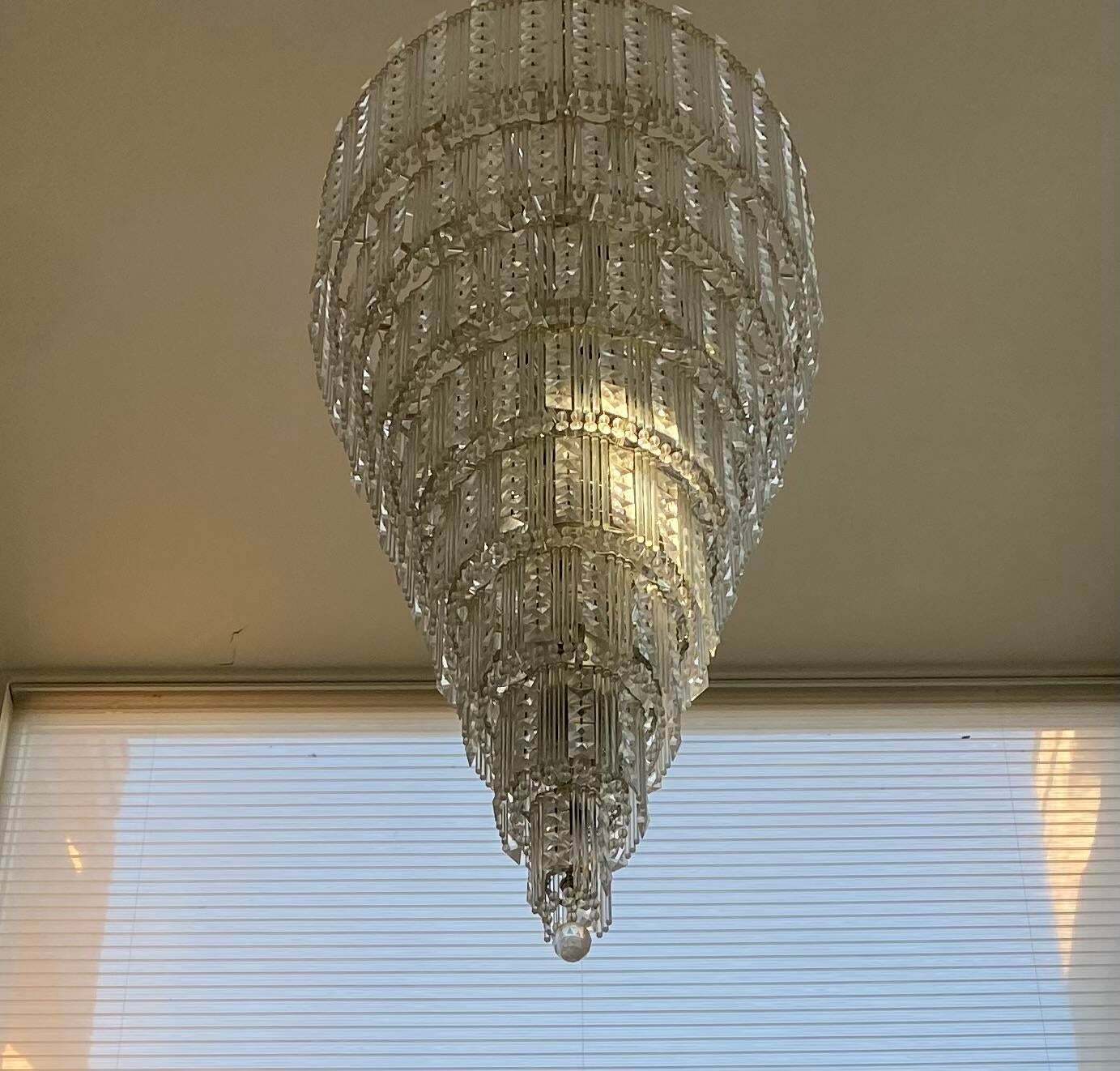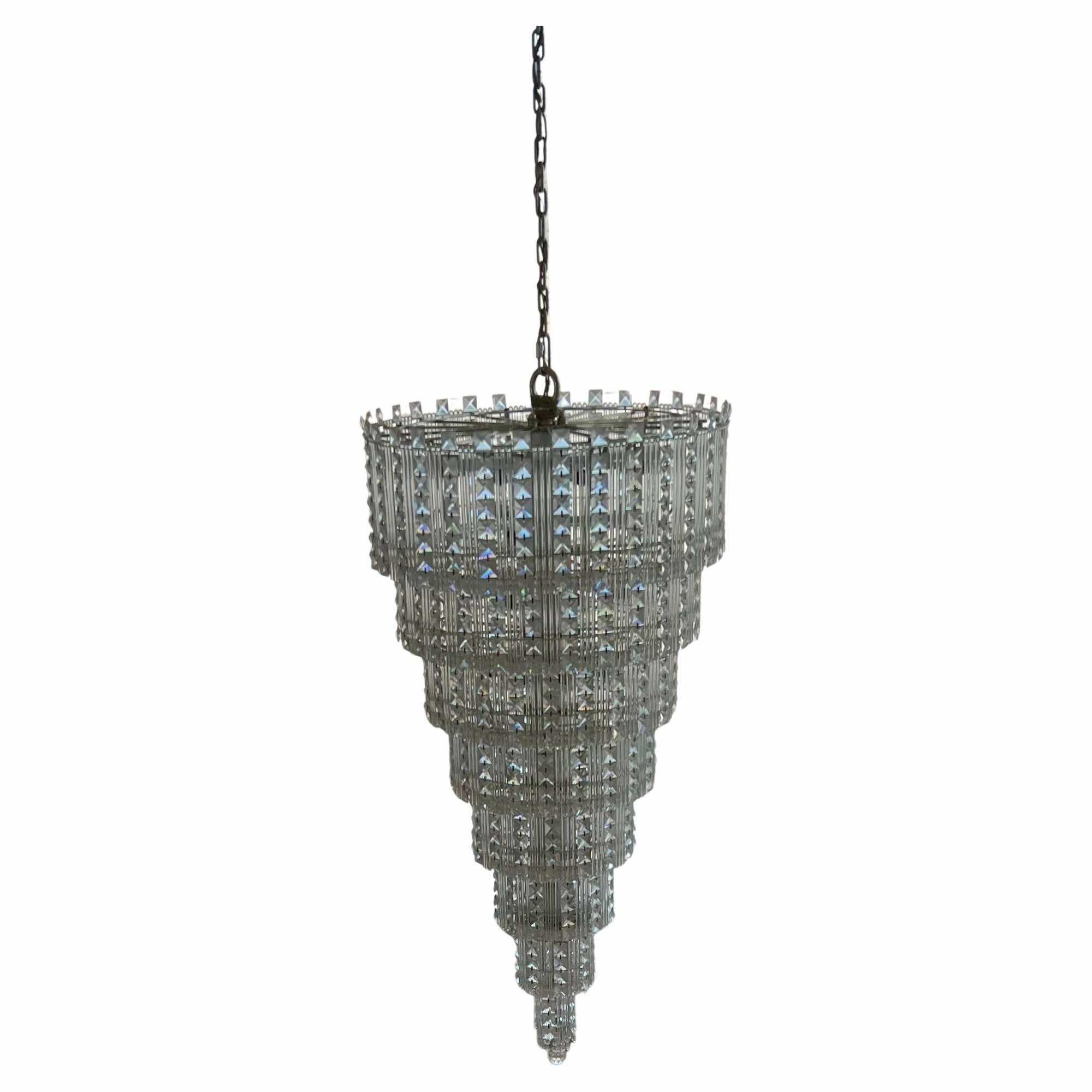 A timeless classic contemporary design featuring 8 tiers and 49 lights. Includes a crystal canopy