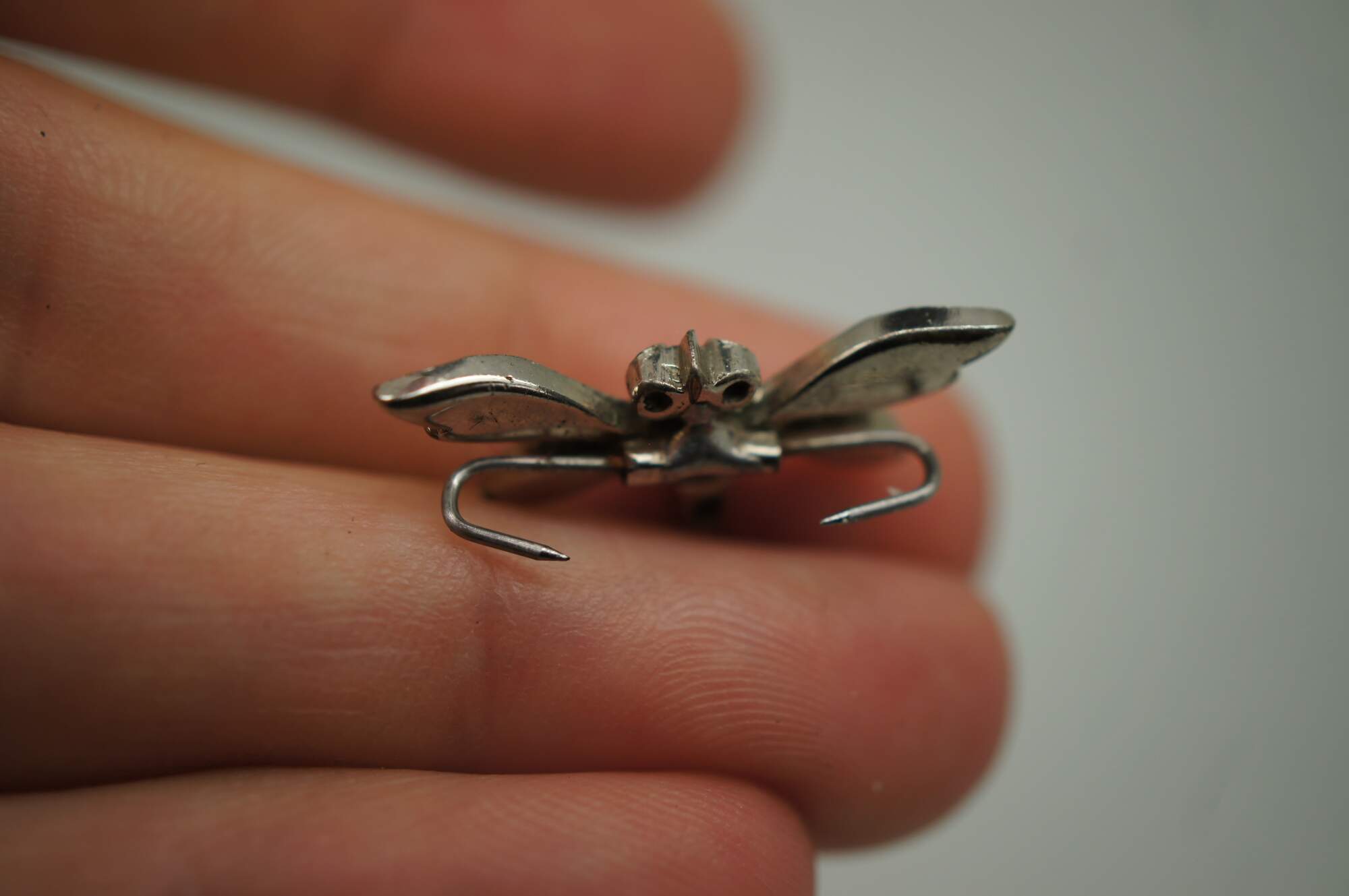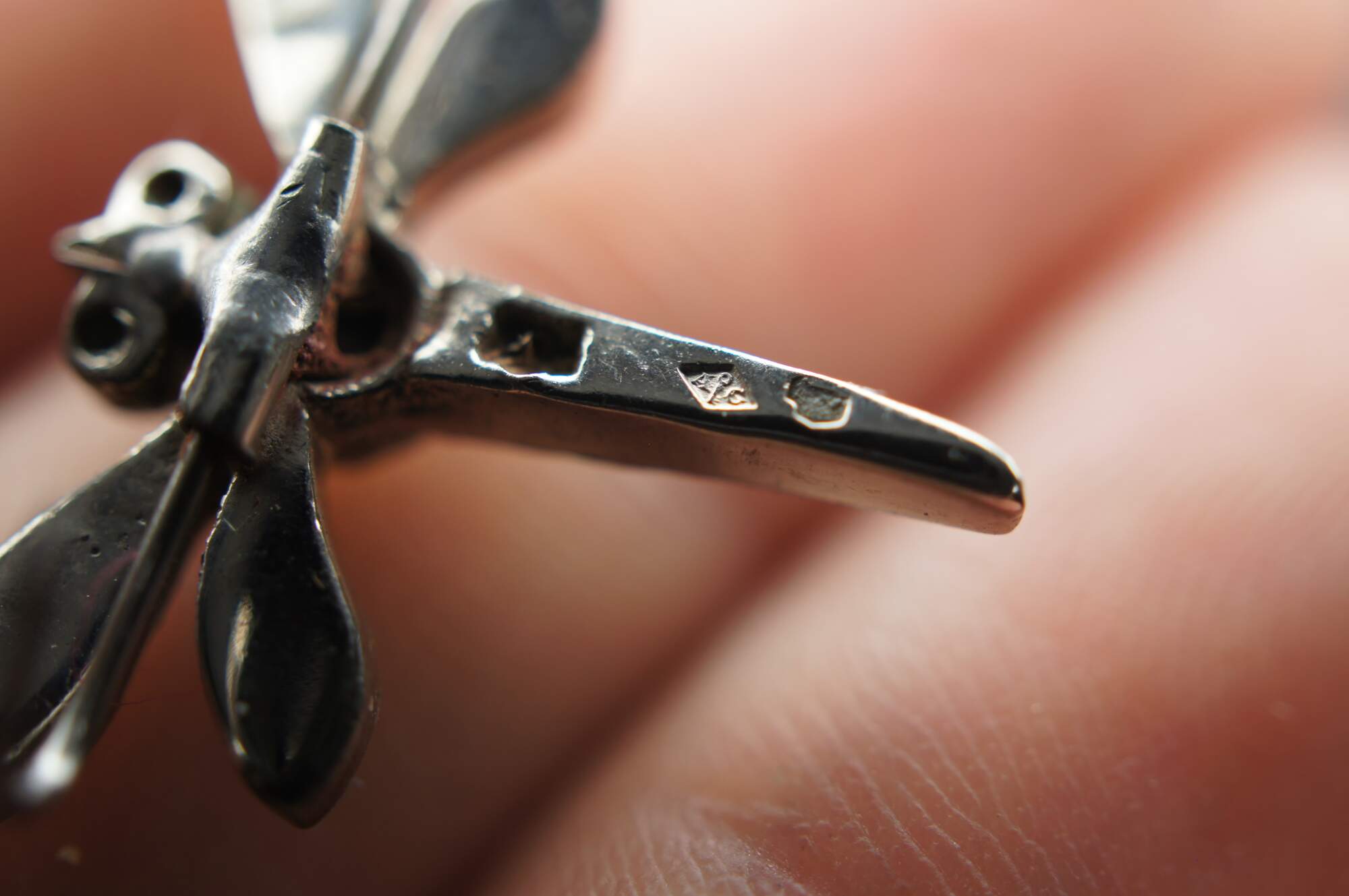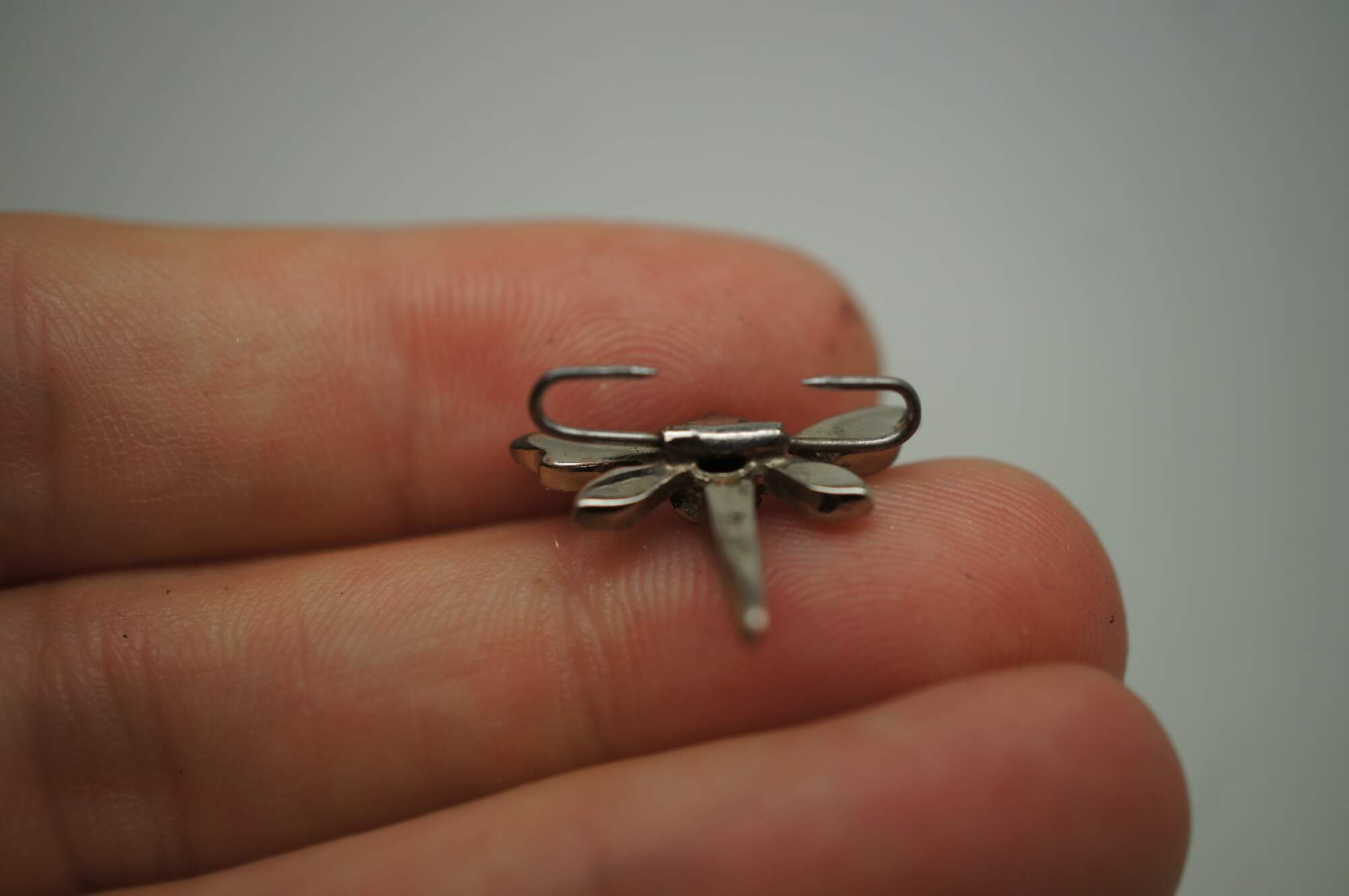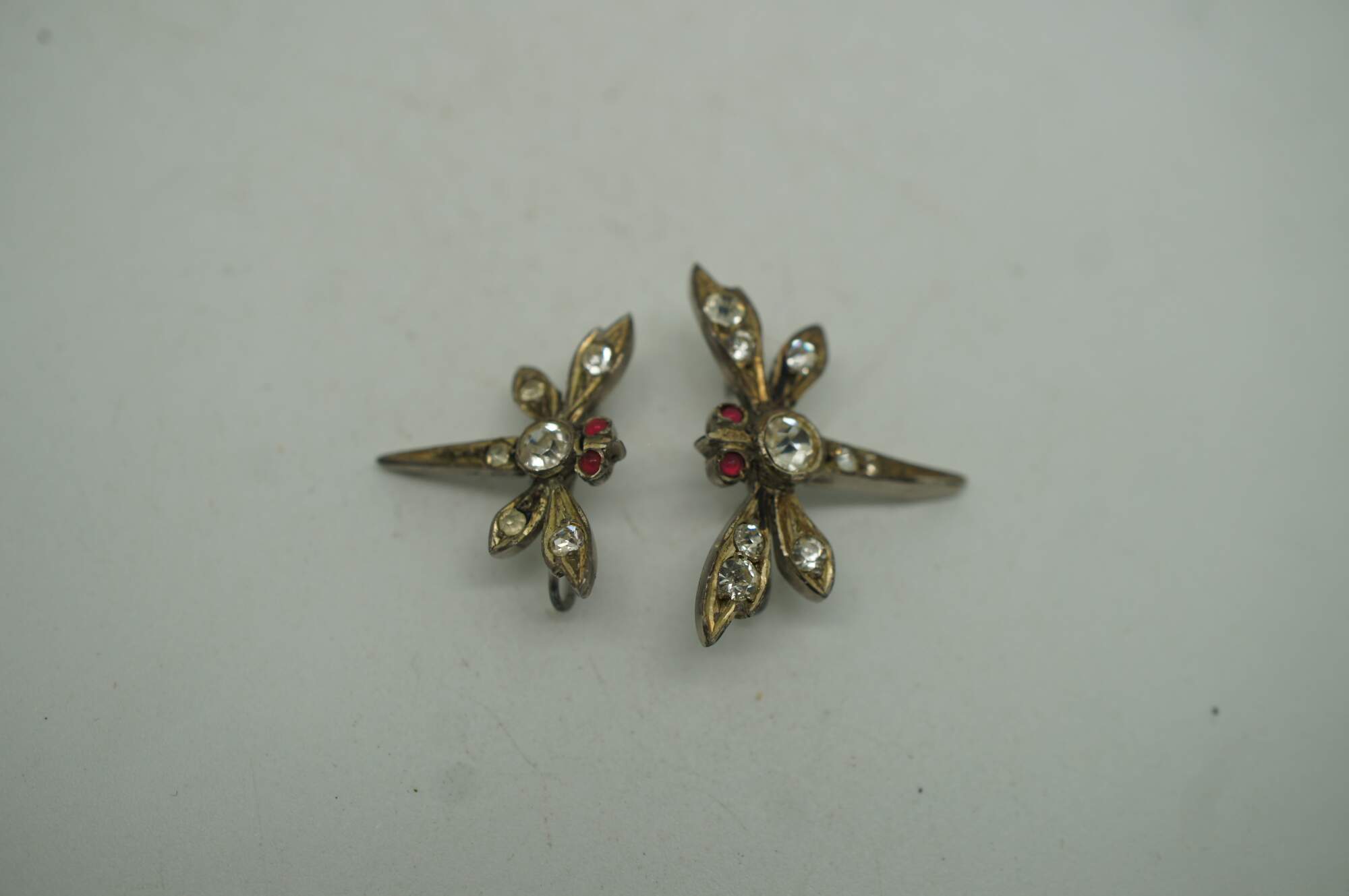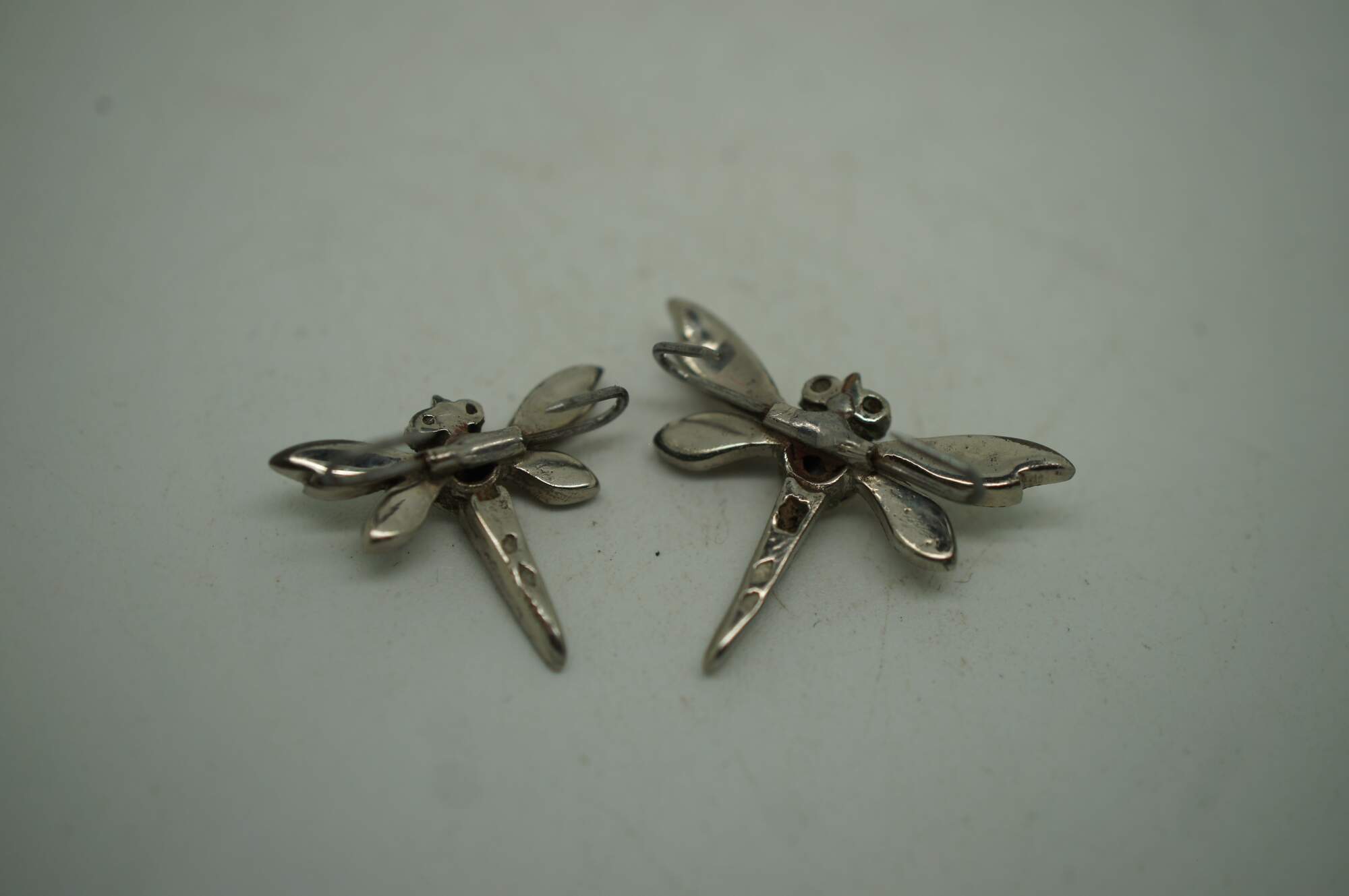 Two vintage lingerie clips featuring a dragonfly with faux ruby eyes and faux diamond studded body.