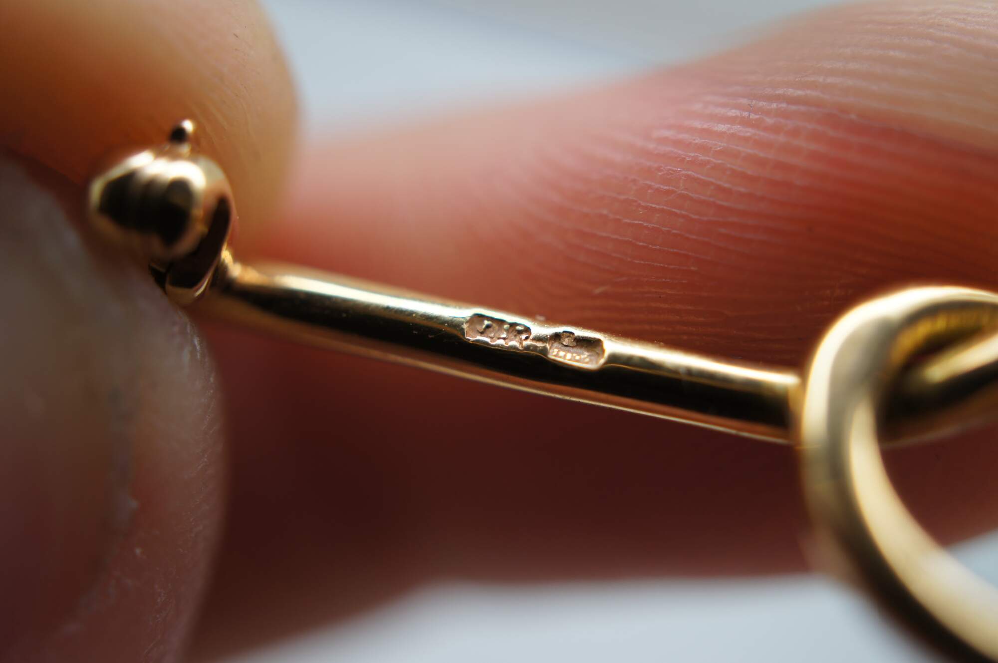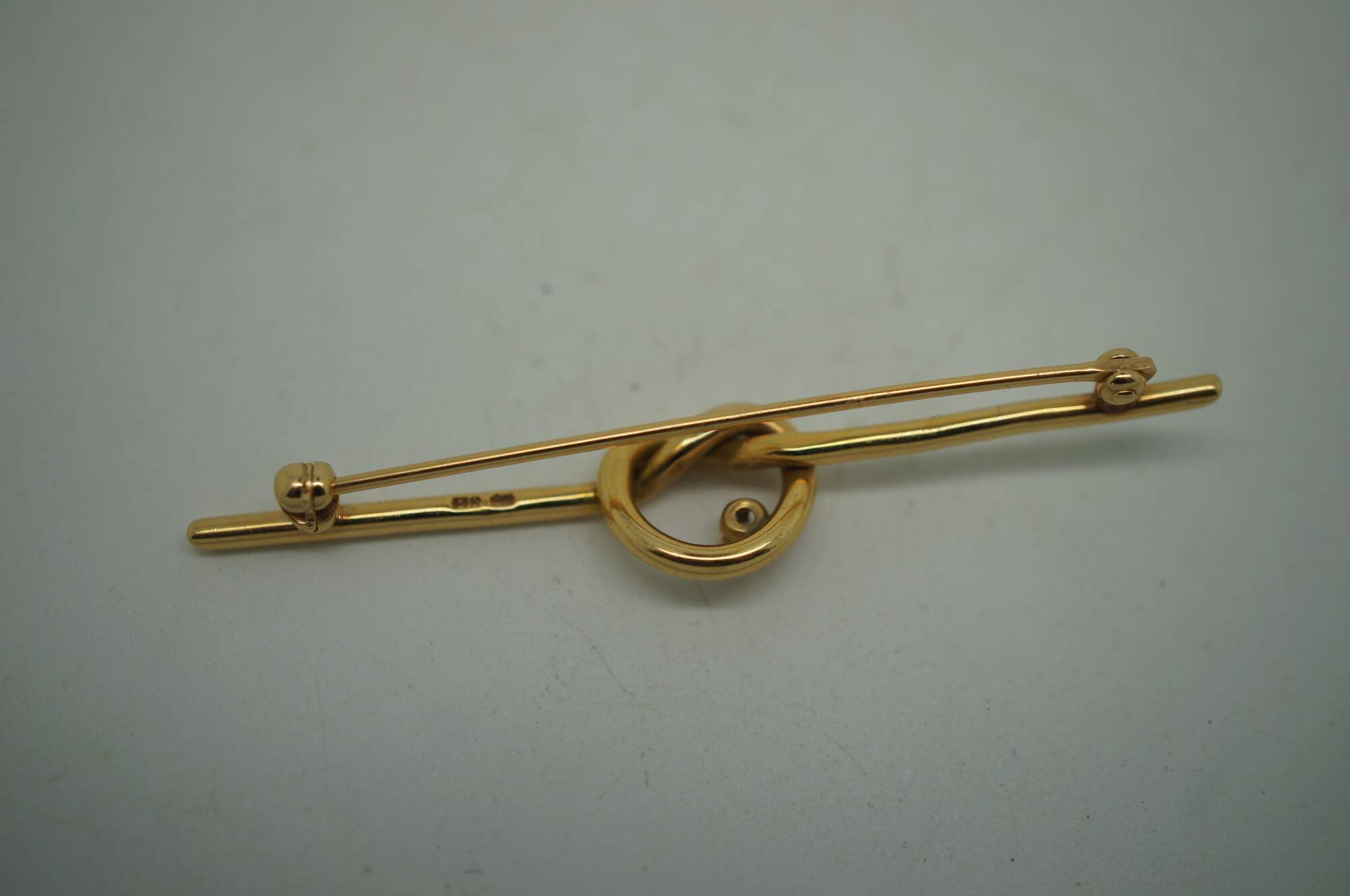 Vintage 14K Gold & Diamond Pretzel Knot Bar Brooch Pin 2" 3.4g
