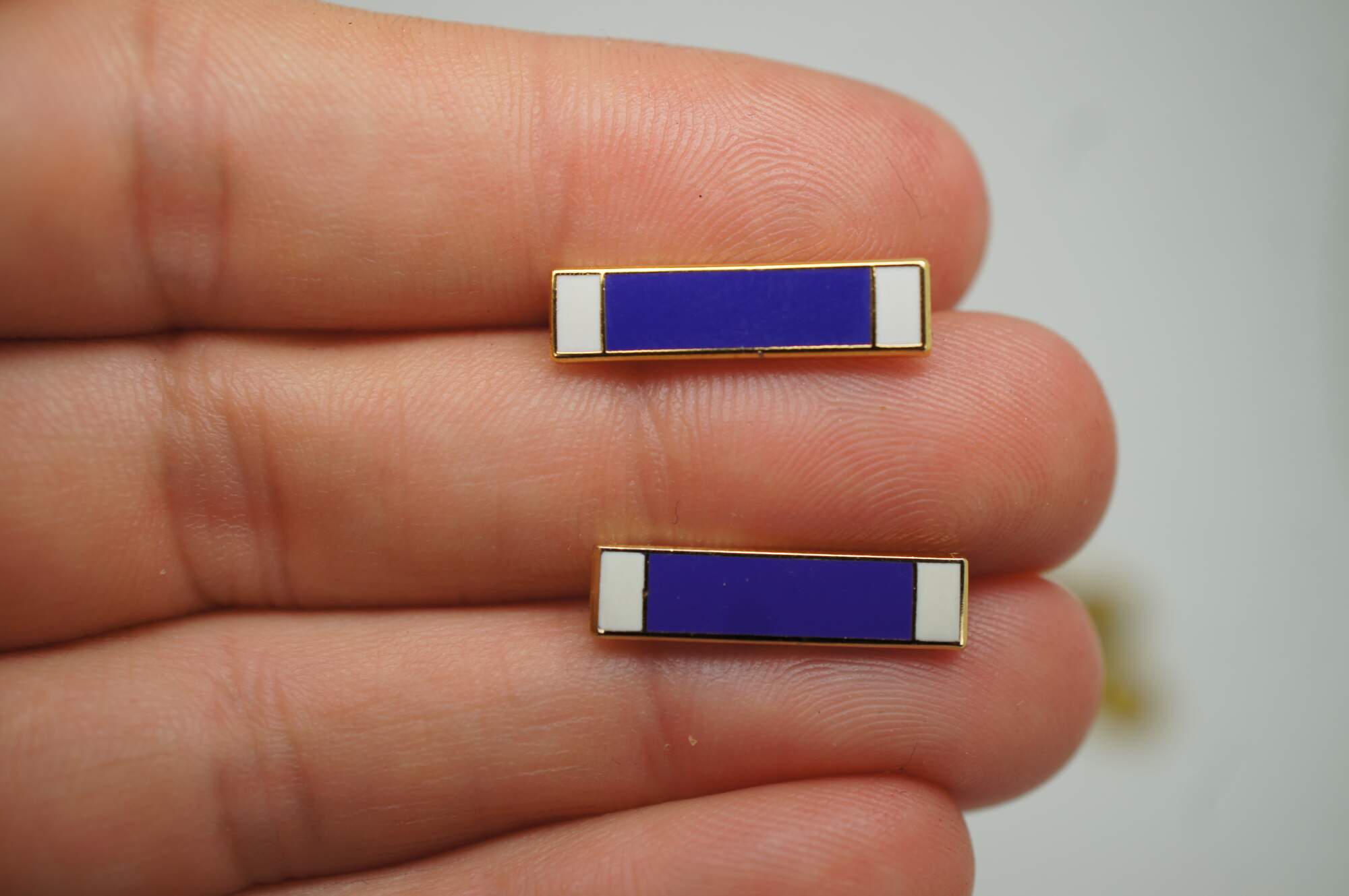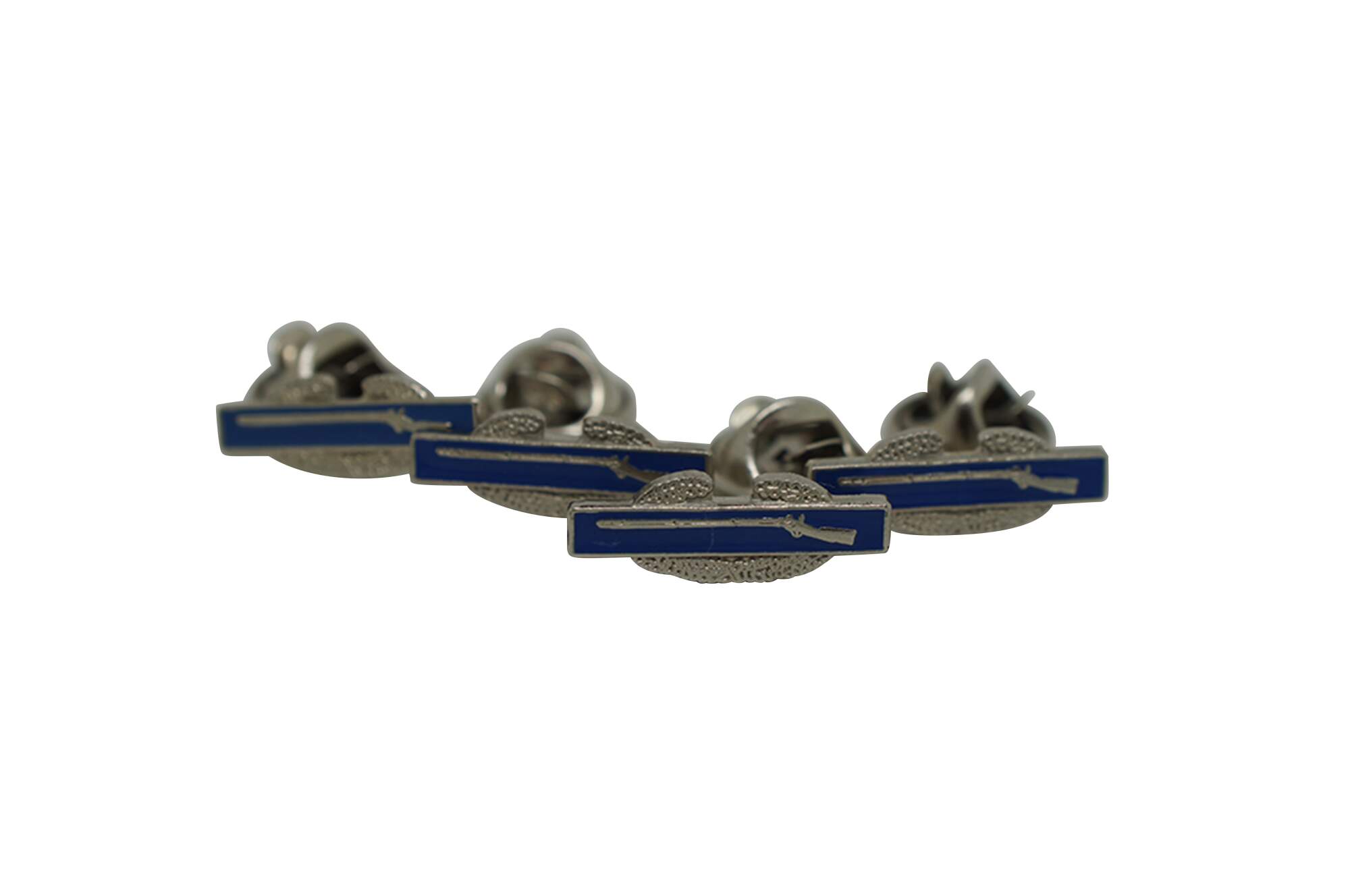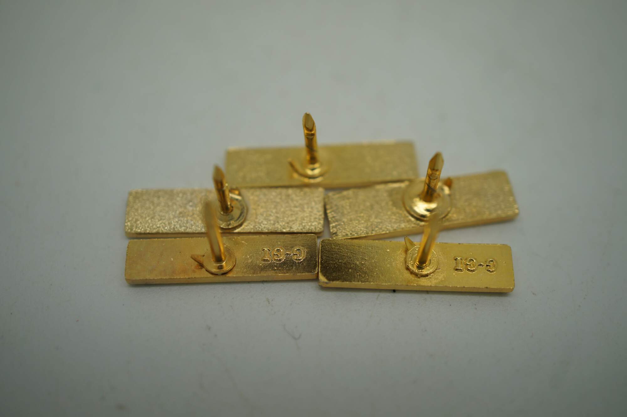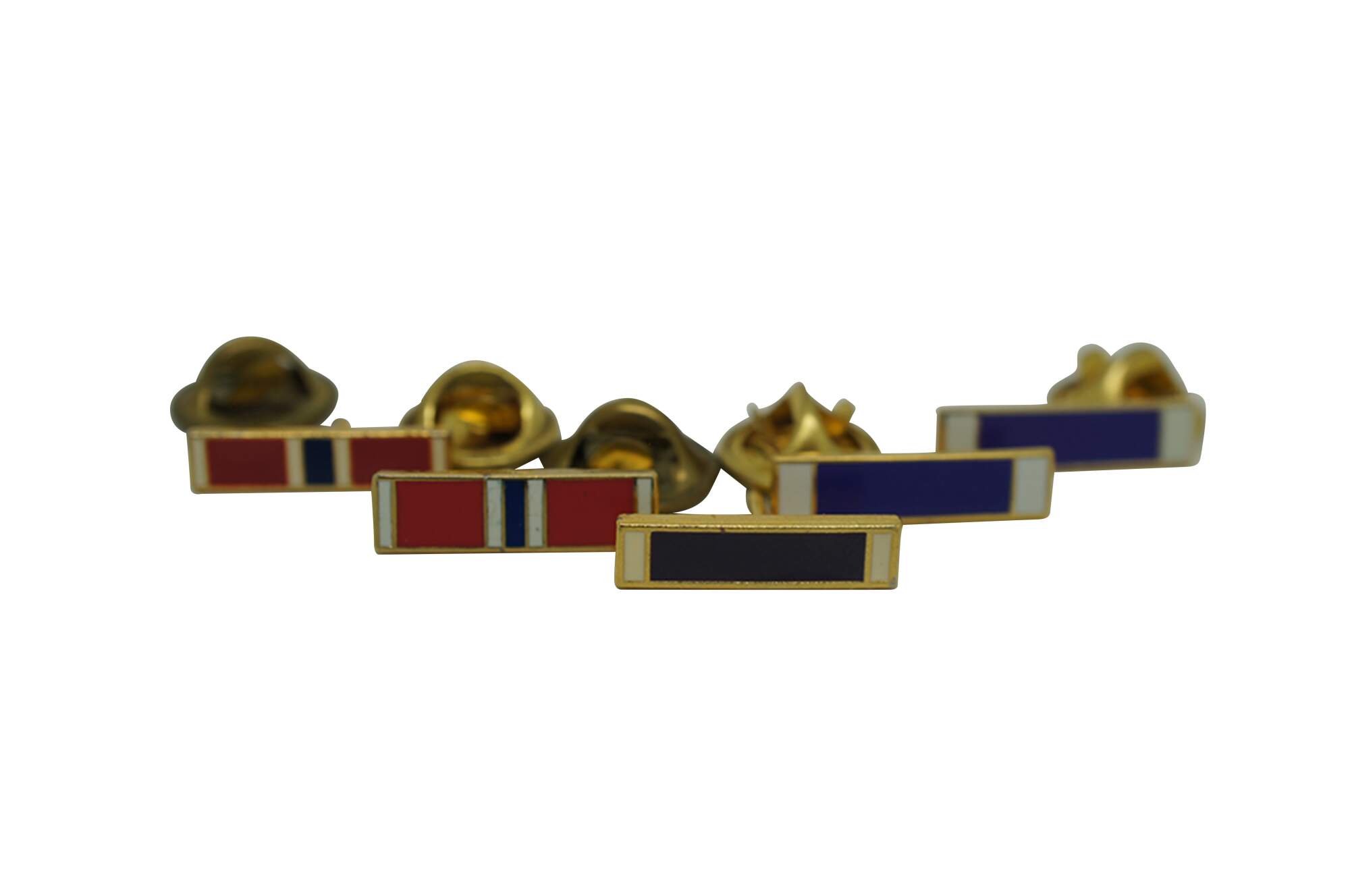 Lot of 9 vintage United States Military miniature enamel ribbon hat / lapel pins representing: 2 Bronze Star Medals; 3 Purple Hearts (one much darker than other two); and 4 Combat Infantry Badge 1st Award.