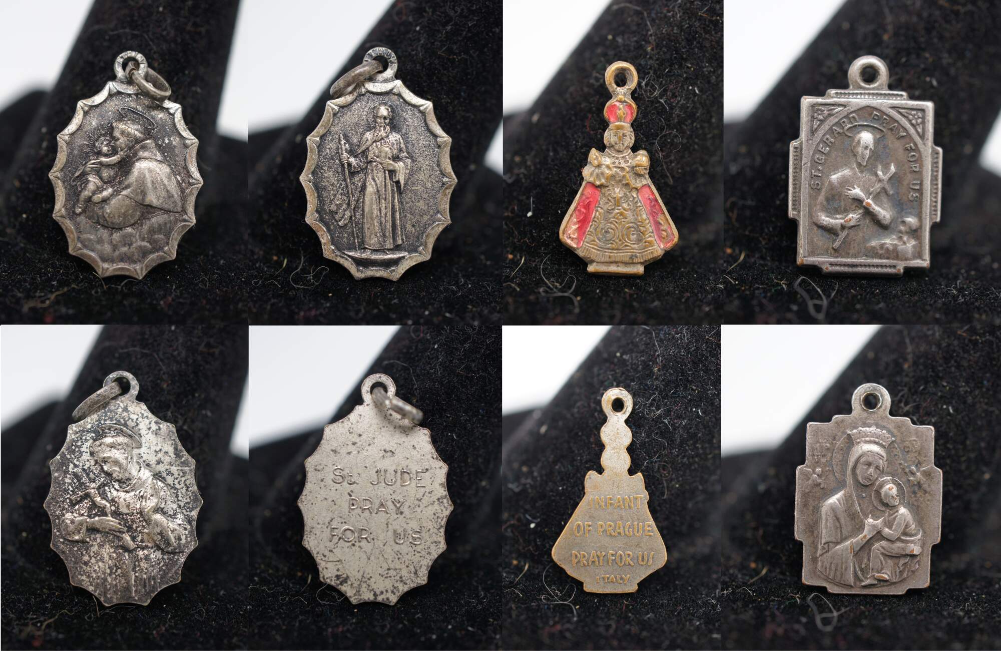 Assorted lot of 29 vintage and antique Christian / Catholic saint medals – including St Benedict, St Christopher, St Joseph, St Anthony, St Jude, The Infant of Prague, St Gerard, and several manifestations of the Virgin Mary / Miraculous Medals - pins, and pendants representing generic Christian motifs and specific churches / church organizations.